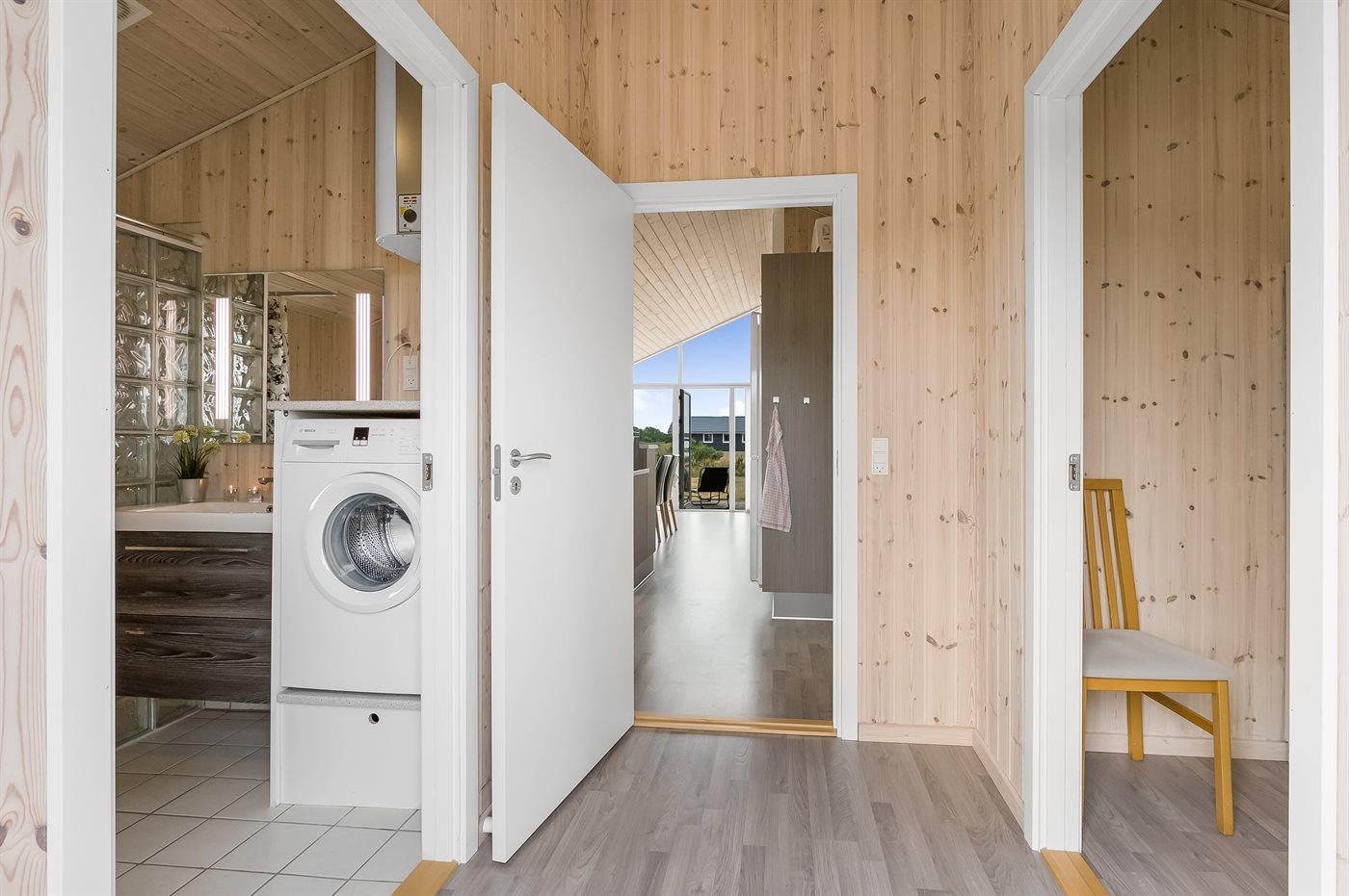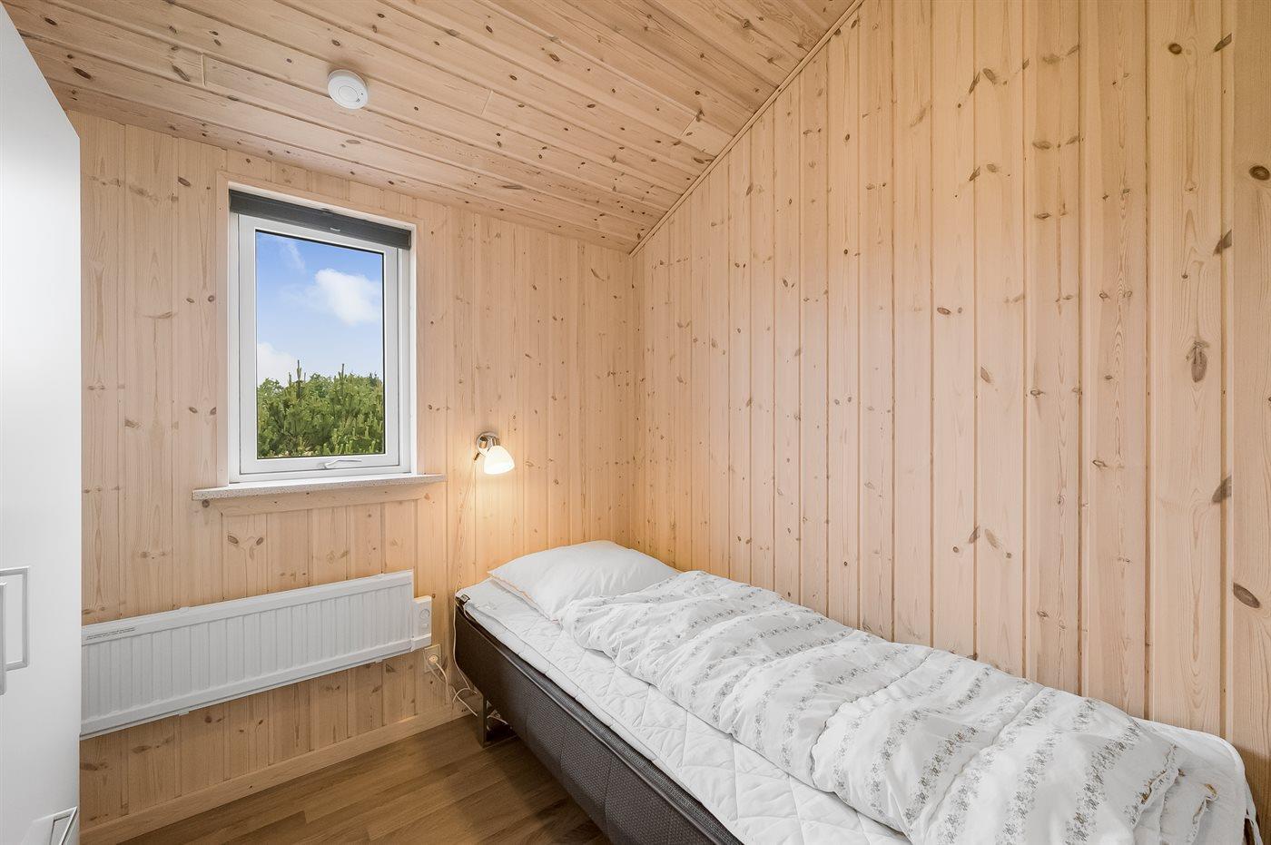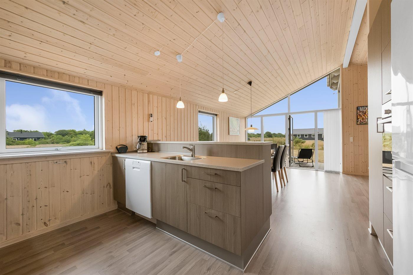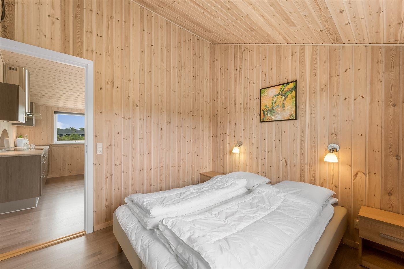 Et dejligt, nybygget (2021) sommerhus beliggende i rolige og naturskønne omgivelser nær Ringkøbing Fjord. Huset er indrettet med alkove i opholdsstuen, hvor 2 af sovepladserne befinder sig.