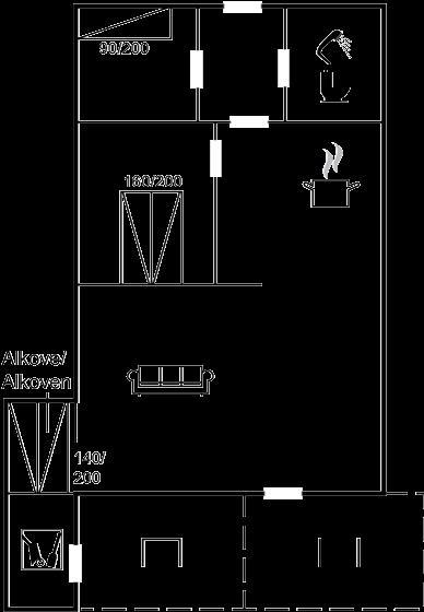 Der er i alt 2 soveværelser. Sovepladserne fordeler sig på: 2 sovepladser i dobbeltseng. 1 soveplads i enkeltseng. 2 sovepladser i alkove. Derudover er der 1 stk. barneseng.