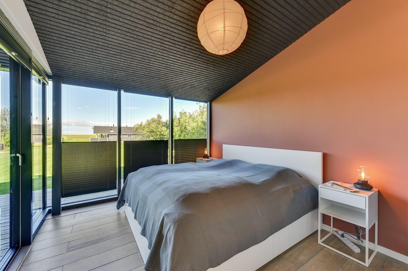 Der er i alt 3 soveværelser. Sovepladserne fordeler sig på: 4 sovepladser i dobbeltsenge. 2 sovepladser i enkeltsenge. Derudover er der 1 stk. barneseng. Fra alle soveværelser er der egen udgang til overdækket terrasse.