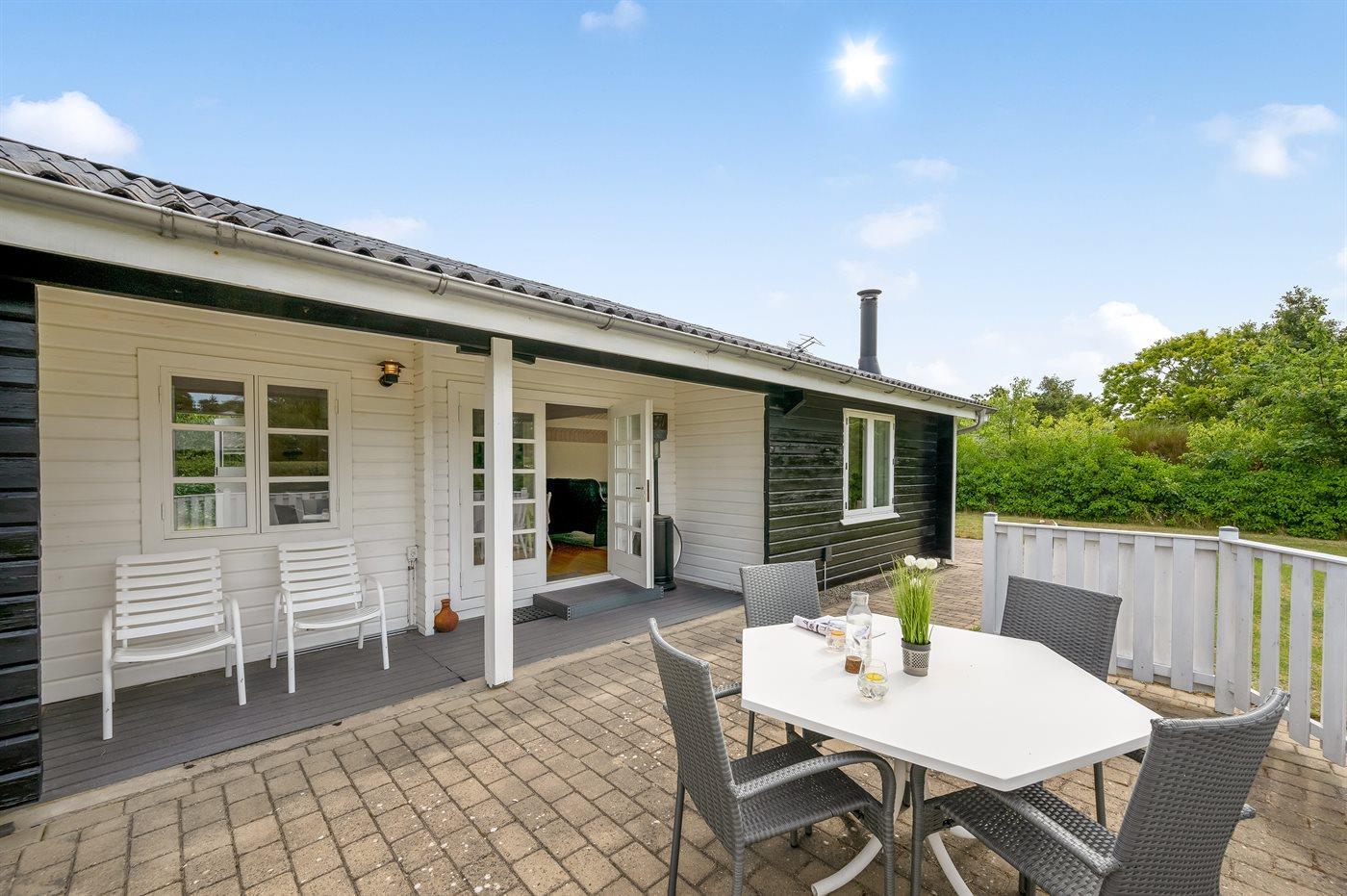 Ferieboligen er beliggende på en 1008 m² stor naturgrund. Der er 500 m til fjorden. Nærmeste forretning er beliggende i en afstand af 6000 m. Til ferieboligen hører åbent terrasseareal. Der ligger en legeplads i en afstand af 300 m. Bålsted. Der er carport til rådighed. Parkering ved ferieboligen.