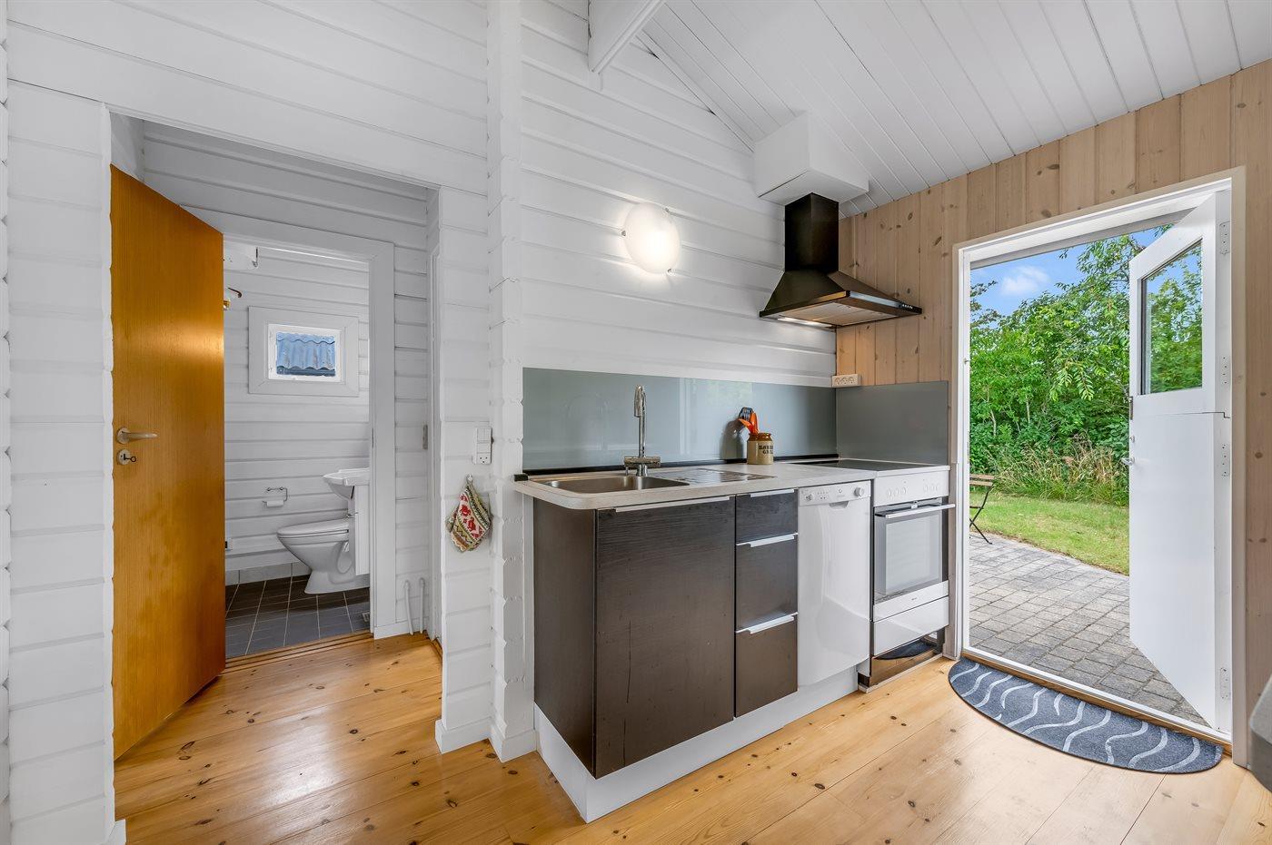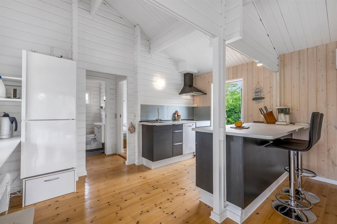 Køkkenet er udstyret med 1 køleskab. Der er 4 keramiske kogeplader, varmluftovn, mikrobølgeovn samt opvaskemaskine.
