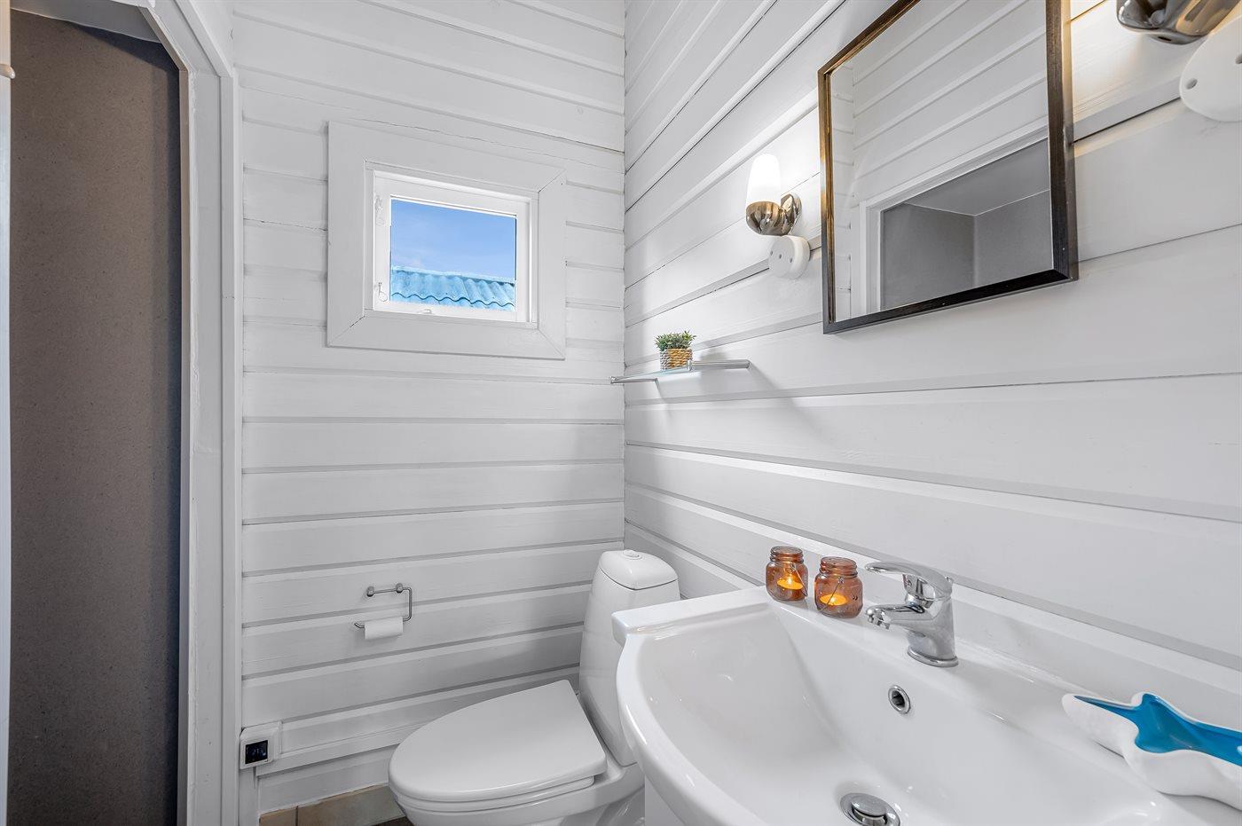Der er 1 badeværelse med bruseniche og 2 toiletter, heraf 1 gæstetoilet.