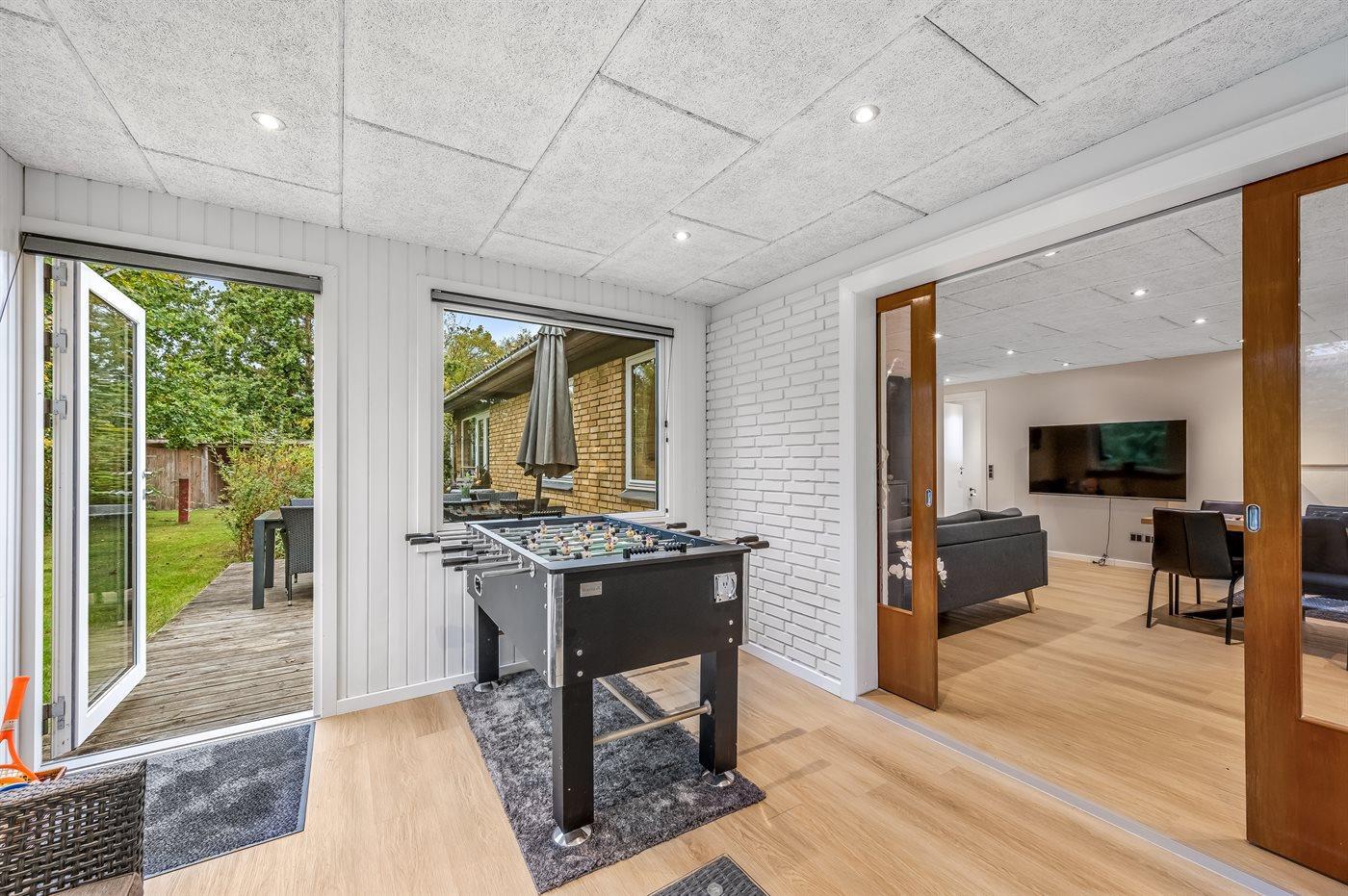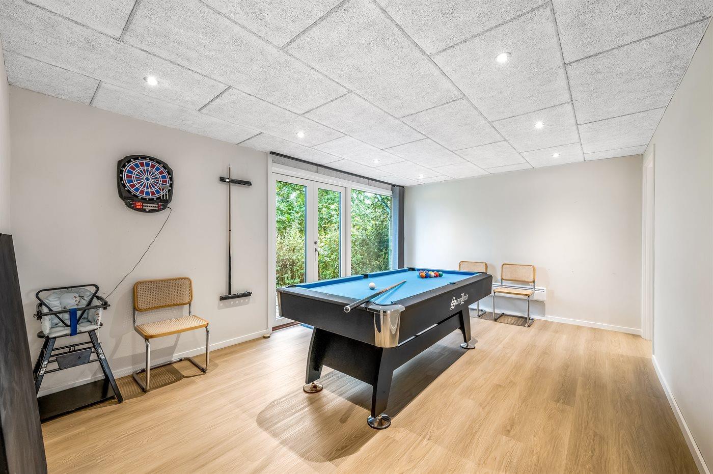 I aktivitetsrummet er der følgende udstyr: Poolbord. Bordtennis. Dart. Bordfodbold.