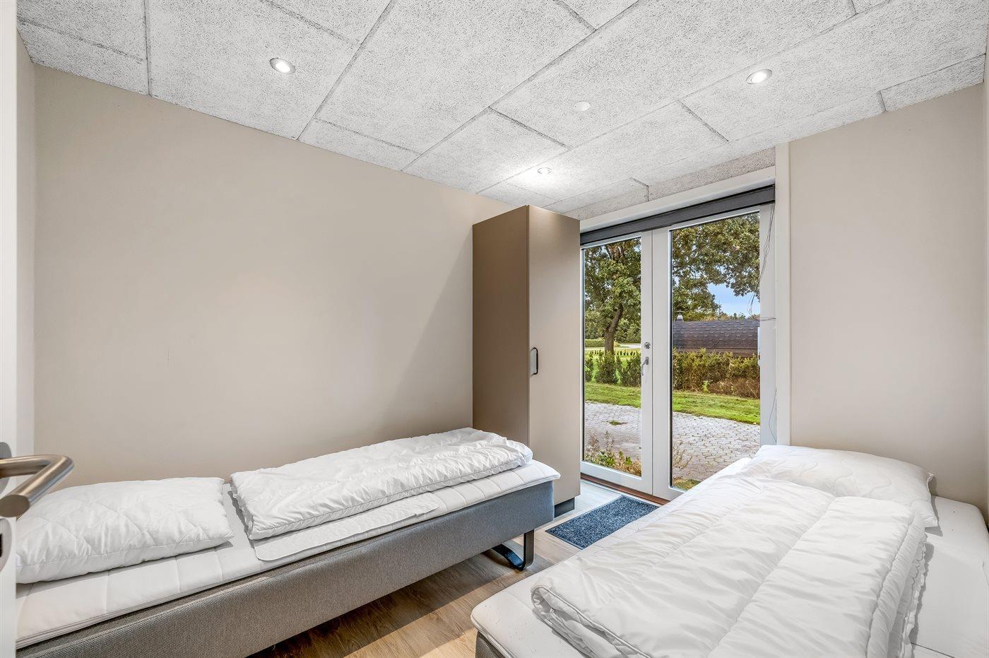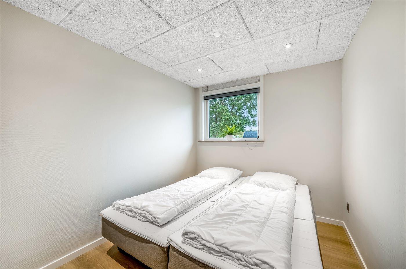 Der er i alt 4 soveværelser. Sovepladserne fordeler sig på: 4 sovepladser i dobbeltsenge. 4 sovepladser i enkeltsenge. Derudover er der 1 stk. barneseng.