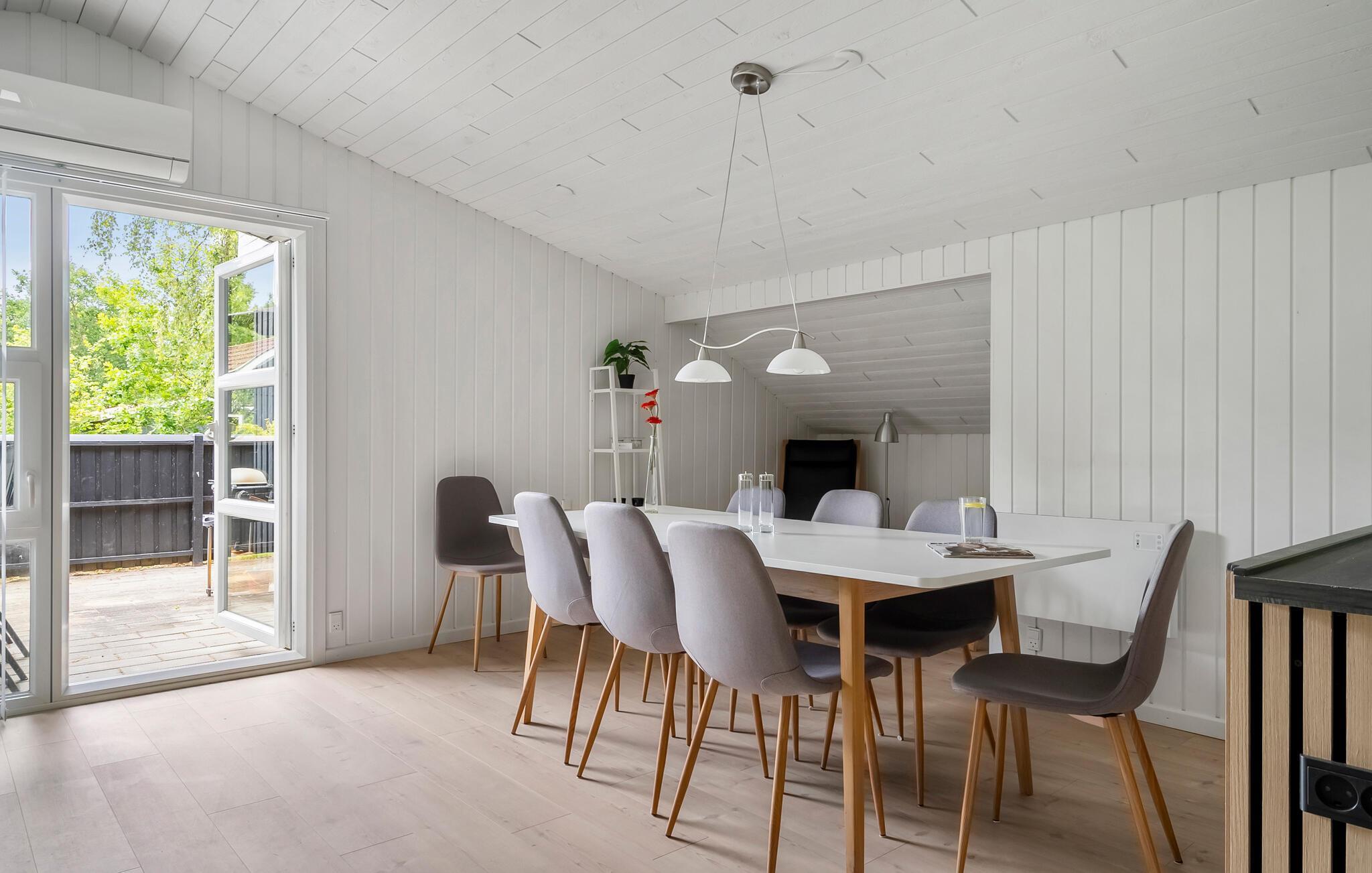 Jeres komfortabelt og moderne indrettede feriehus ligger i en ugeneret have, kun få skridt fra Ringkøbing Fjord. Snak sammen, mens I laver mad i det åbne køkken, glæd jer til lækre feriemåltider, og lyt til den knitrende brændeovn. Om aftenen kan I hygge jer sammen i sofaen til en film eller lægge jeres trætte ben op i den behagelige læsestol.