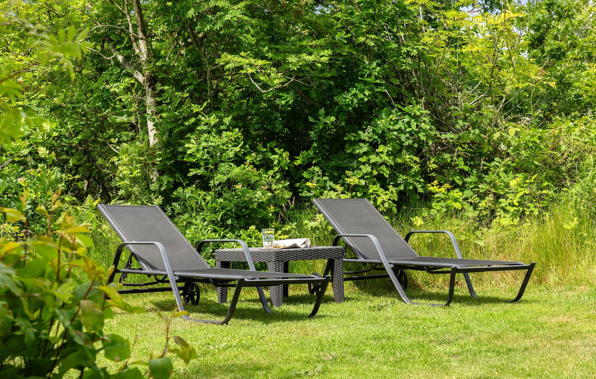 Den smukke have, omgivet af tætte træer, byder på hyggelige kroge til læsning, leg og måltider i det fri. Nyd morgenmaden på terrassen, og se børnene lege på den store græsplæne.