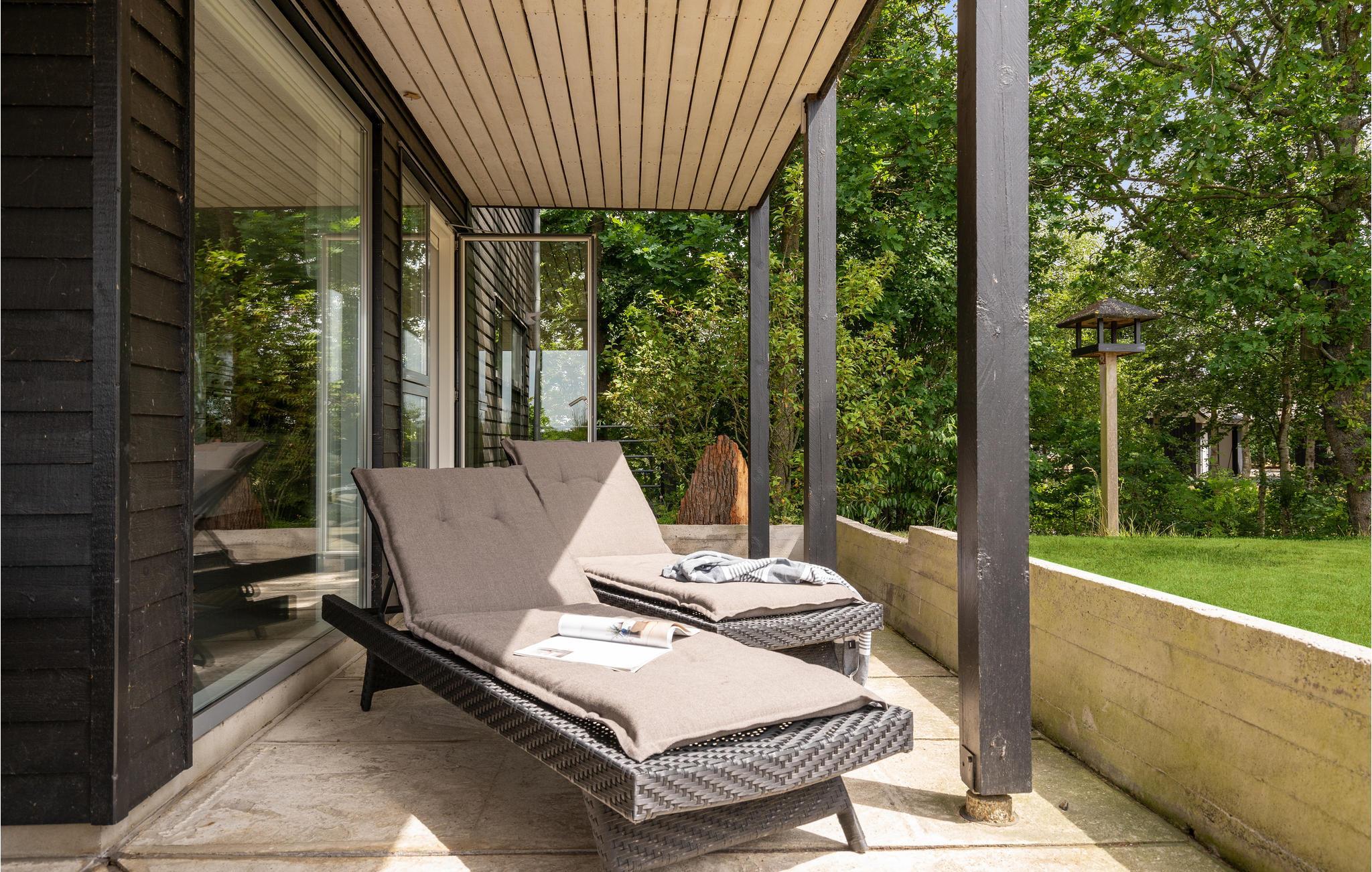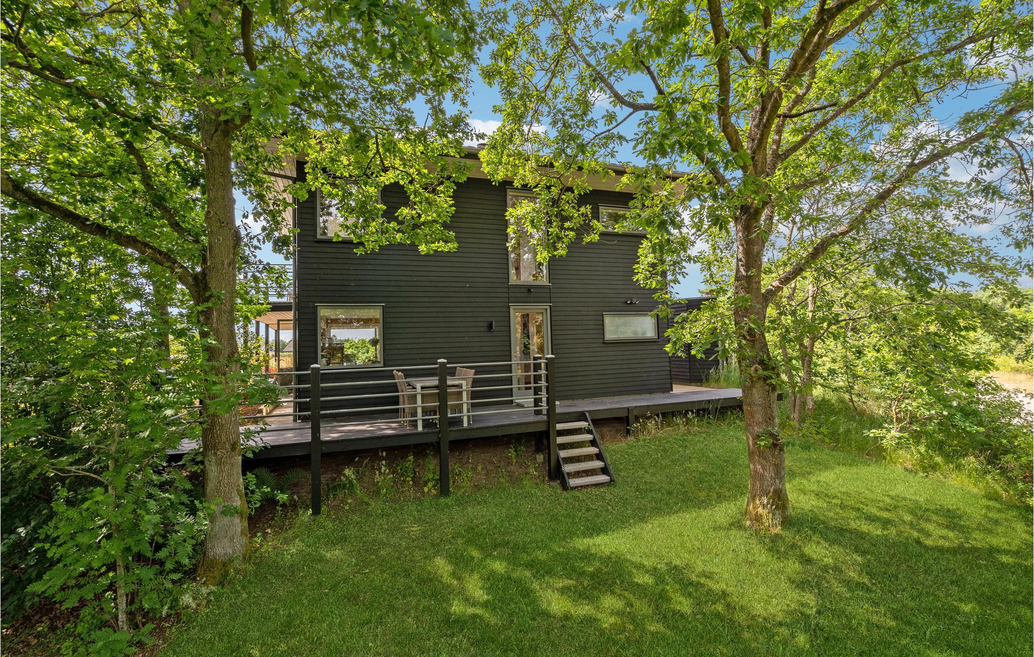 Eksklusivt luksushus i Skjern med store vinduer, trampolin og nærhed til Ringkøbing Fjord.