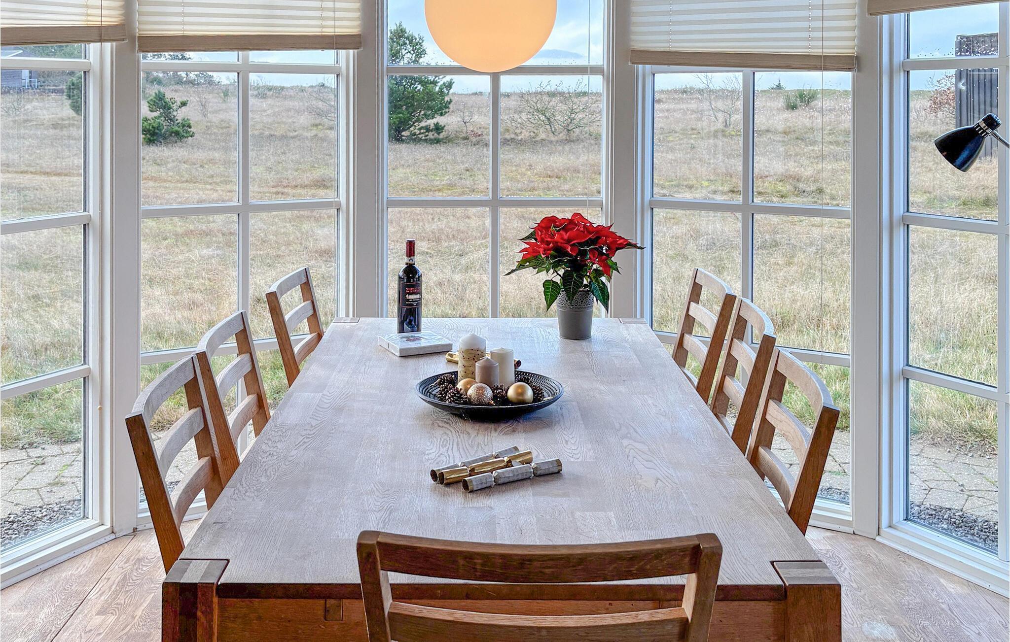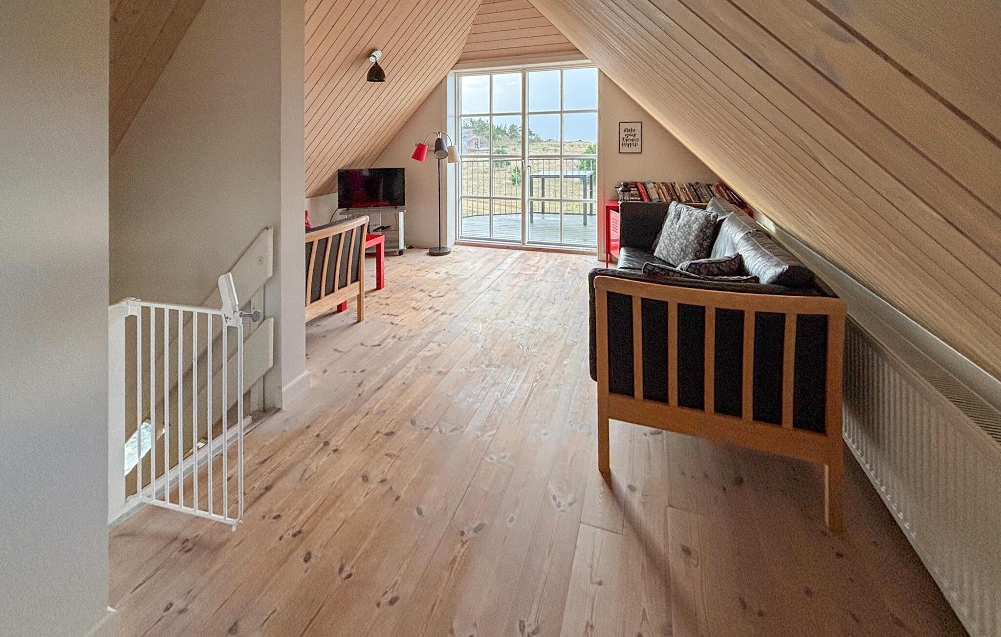 På en stor åben naturgrund kun 100 m fra Ringkøbing Fjord ligger dette eksklusive feriehus. Der er tale om et arkitektonisk spændende hus, som er bygget af gedigne materialer. Indvendigt er det meget stilfuldt indrettet med flotte og komfortable møbler. I det ene af de to badeværelser er der både spabad, bruser og adgang til sauna. På første sal er der udgang til en altan fra stuen, hvorfra I kan nyde udsigten over fjorden. Besøg Stauning havn med lokale fiskerbåde, hvorfra I kan købe friskfangede fisk. Ringkøbing Fjord er et eldorado for windsurfere.