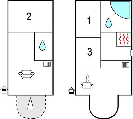 Badeværelse (nr. 2) - WC. Varmt og koldt vand. Bruser
