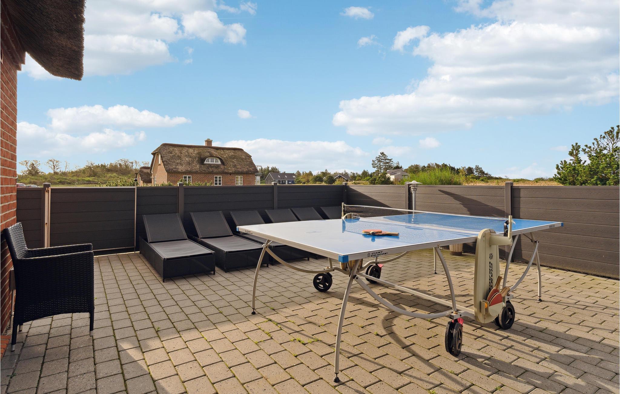 Udenfor kan I udfordre hinanden til et slag bord- eller stangtennis eller sætte jer godt til rette i de komfortable havemøbler på den åbne terrasse. Terrassen vender mod sydøst og er et fremragende sted at nyde morgenkaffen, solen og den smukke udsigt i absolut fred og ro.