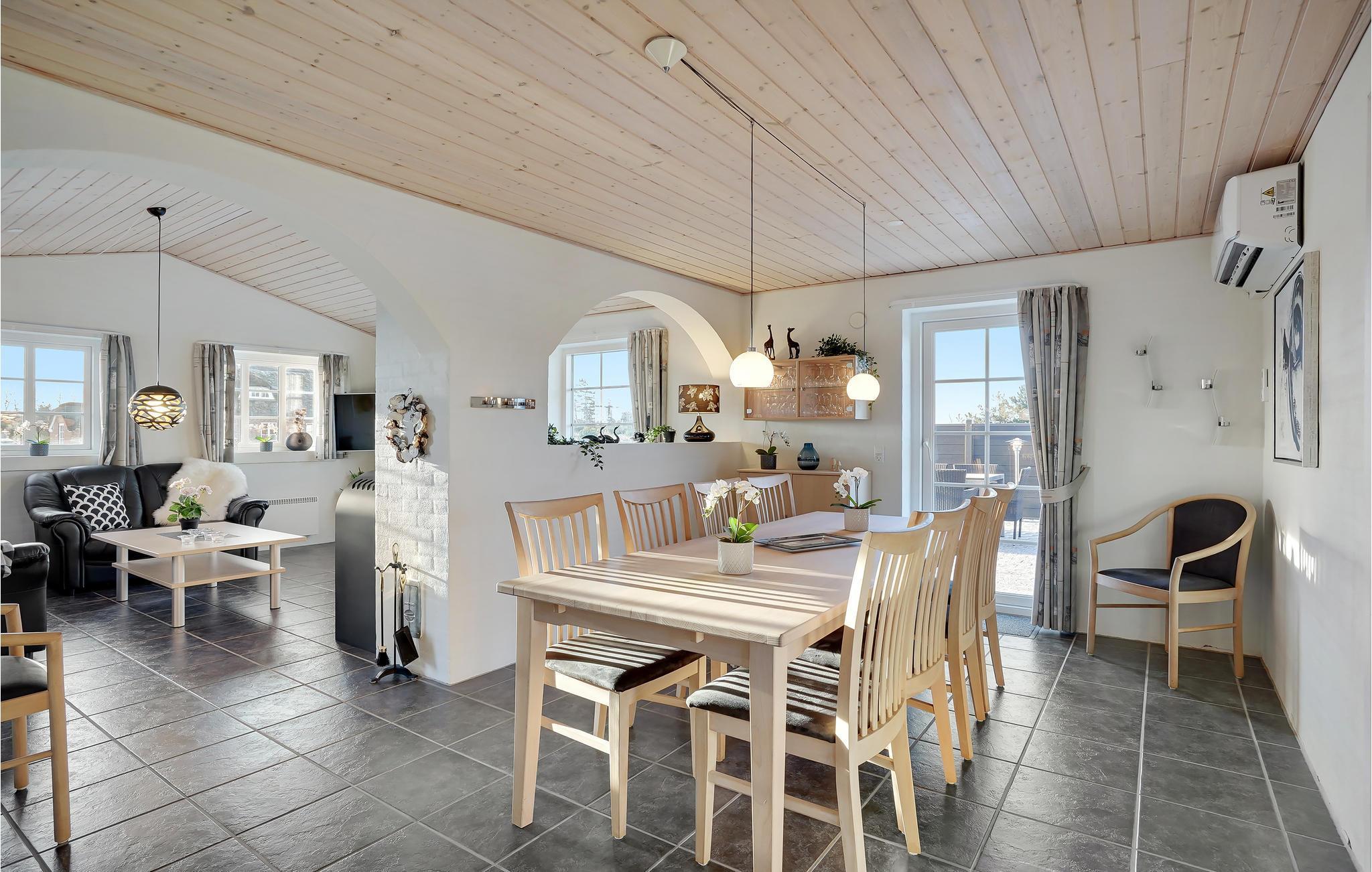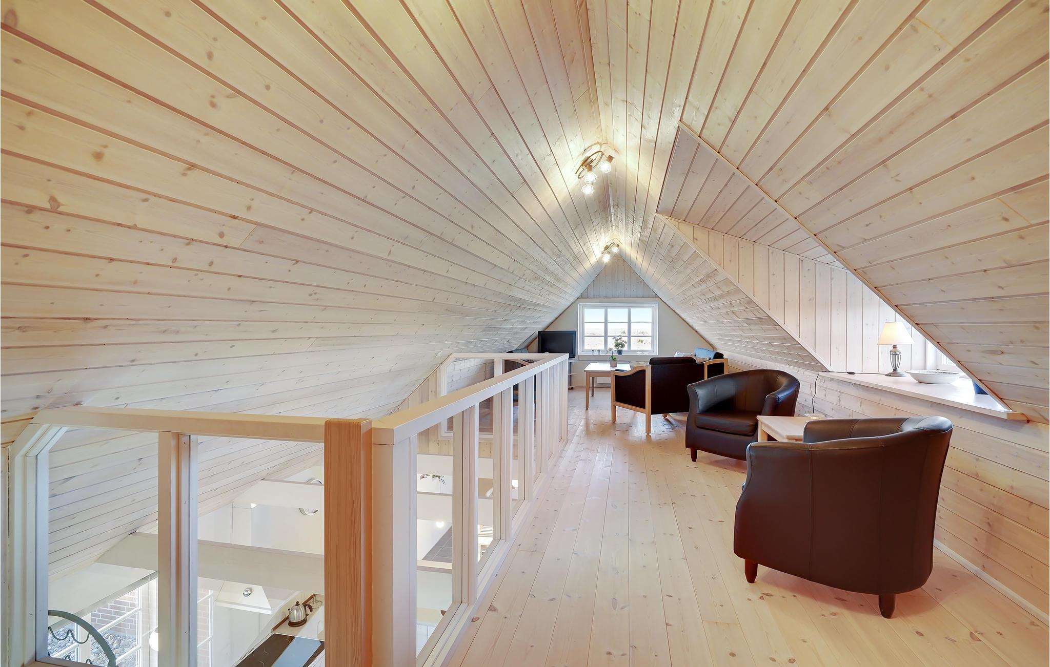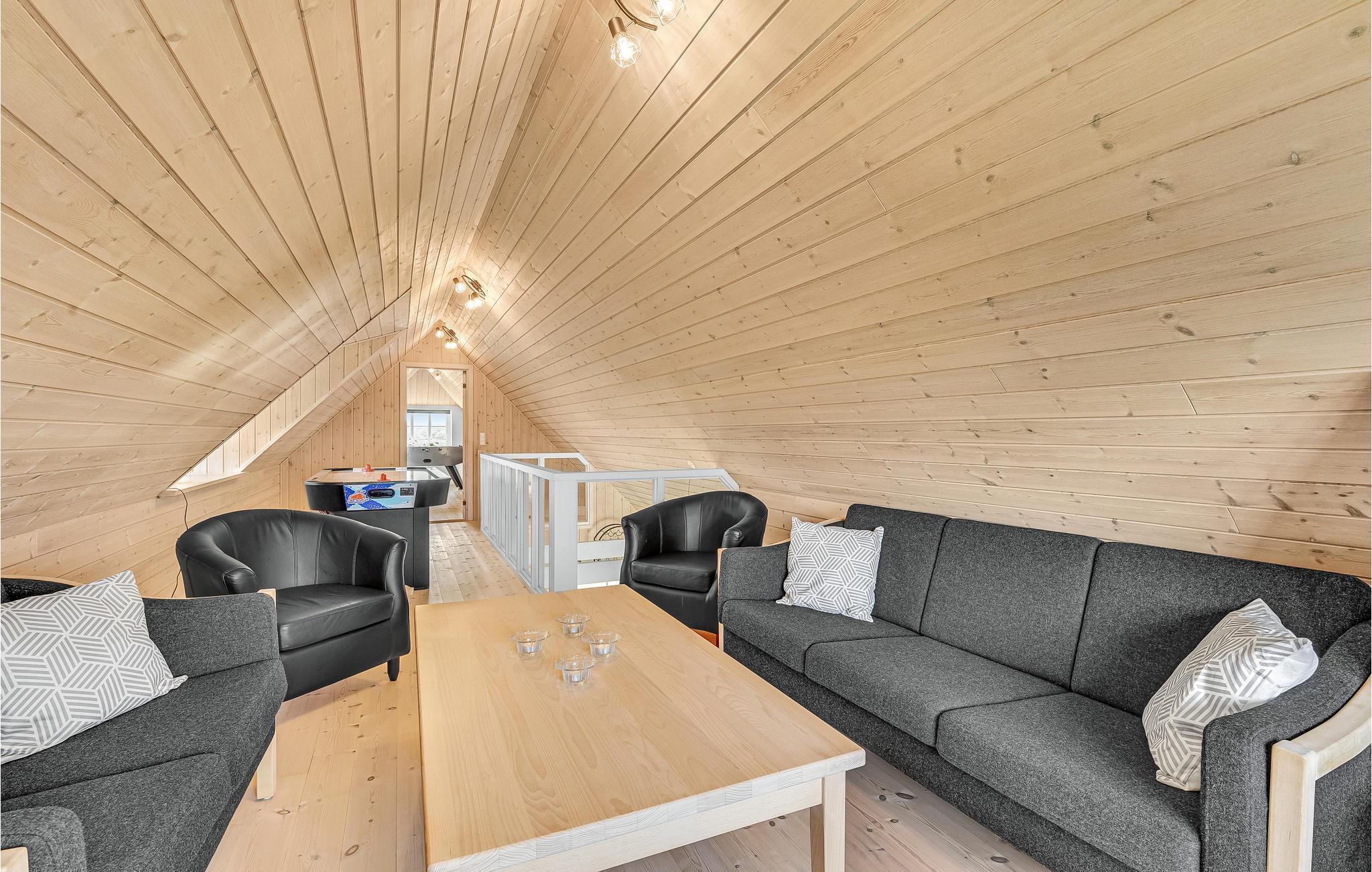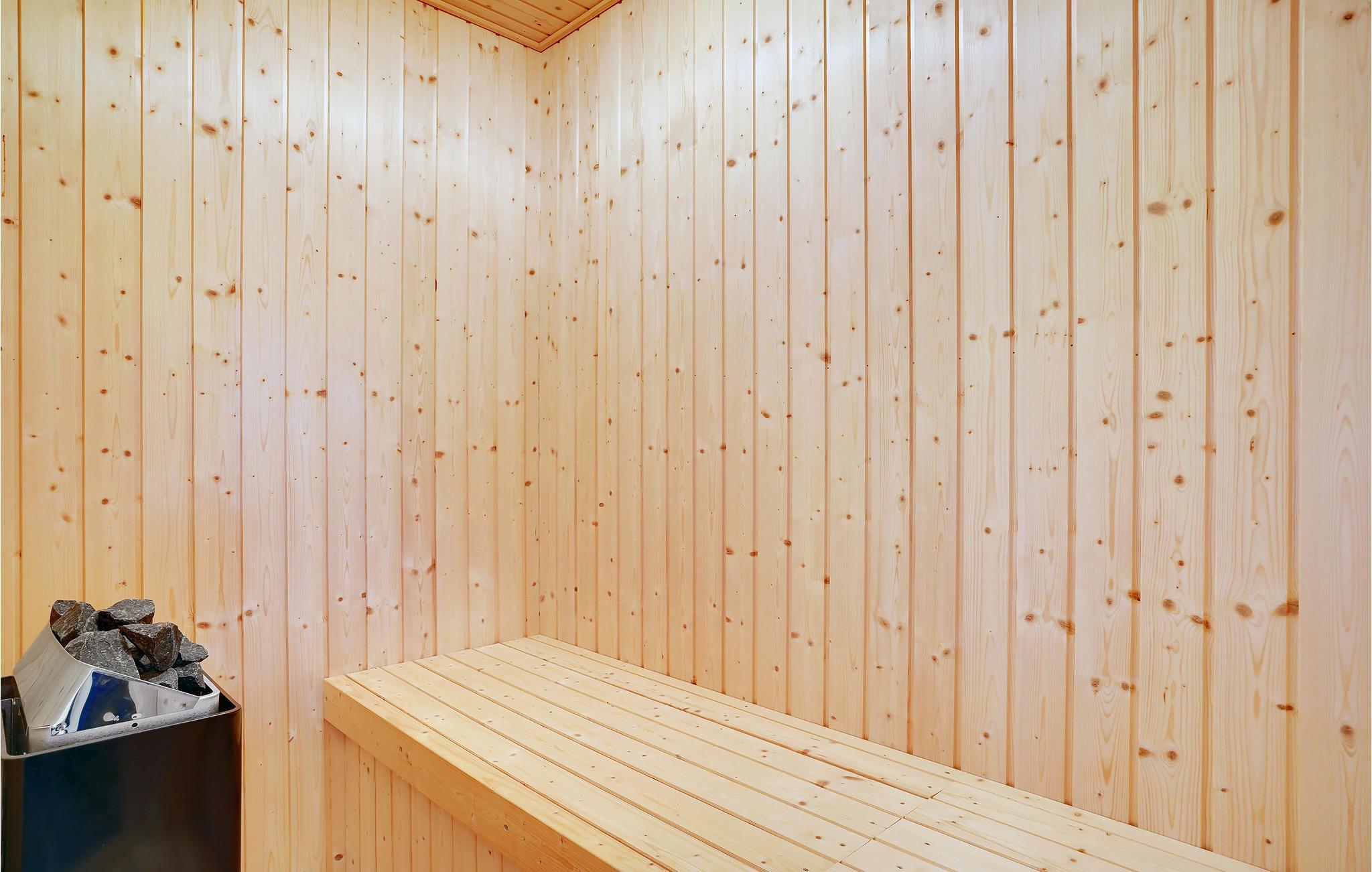 Velkommen til dette rummelige sommerhus, hvor I kan nyde en afslappende ferie med hele familien eller en gruppe venner. Nyd panoramaudsigten over landskabet fra stuen på 1. sal, som tilbyder en vidunderlig udsigt over Ringkøbing Fjord, som I også kan se fra stueetagen. Tilbring mange hyggelige timer ved pejsen eller forkæl krop og sind med velvære og afslapning. Der er både sauna og boblebad inde i huset. Inde i huset finder I desuden et aktivitetsrum med bordfodbold, airhockey og to senge.