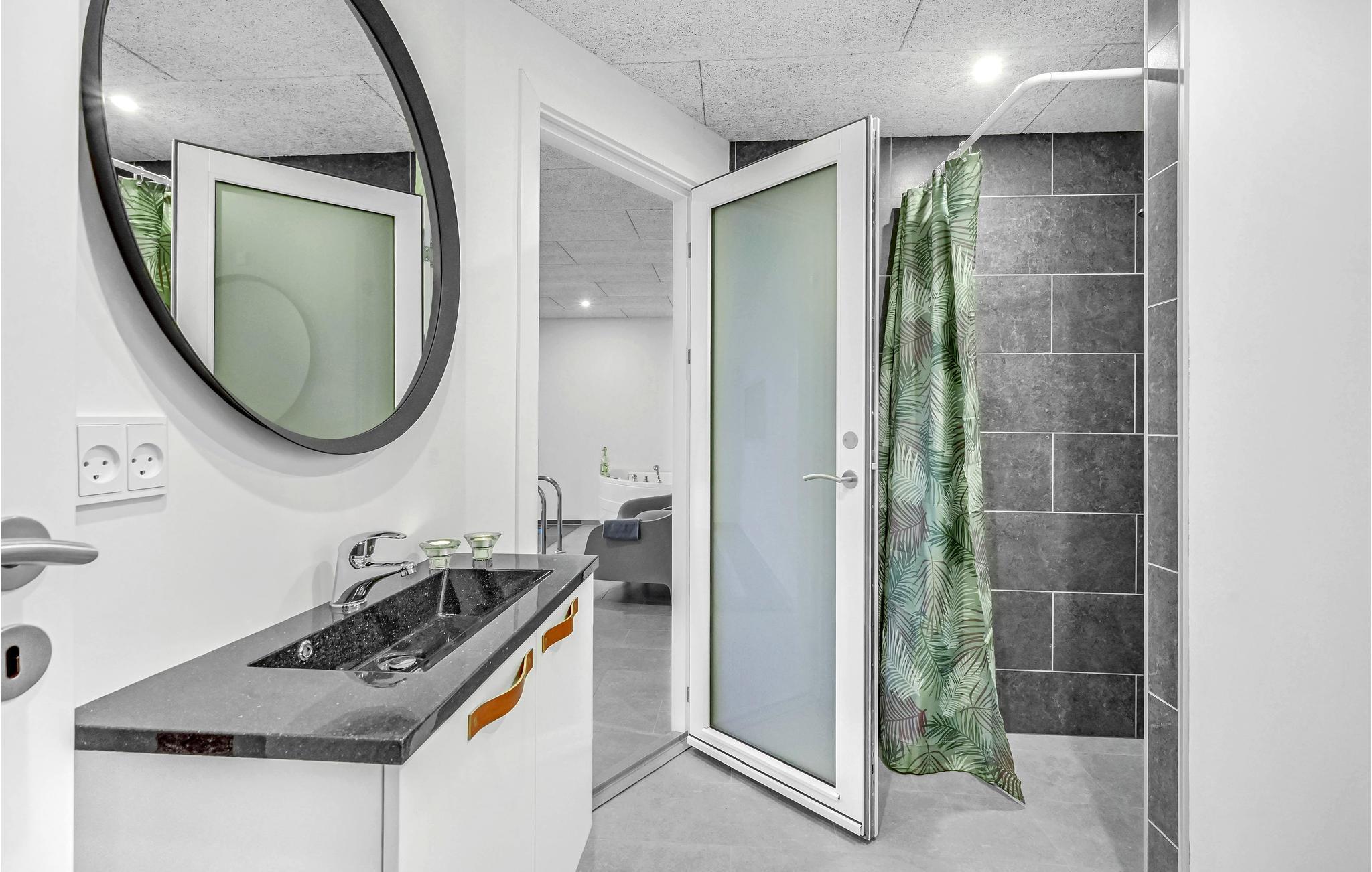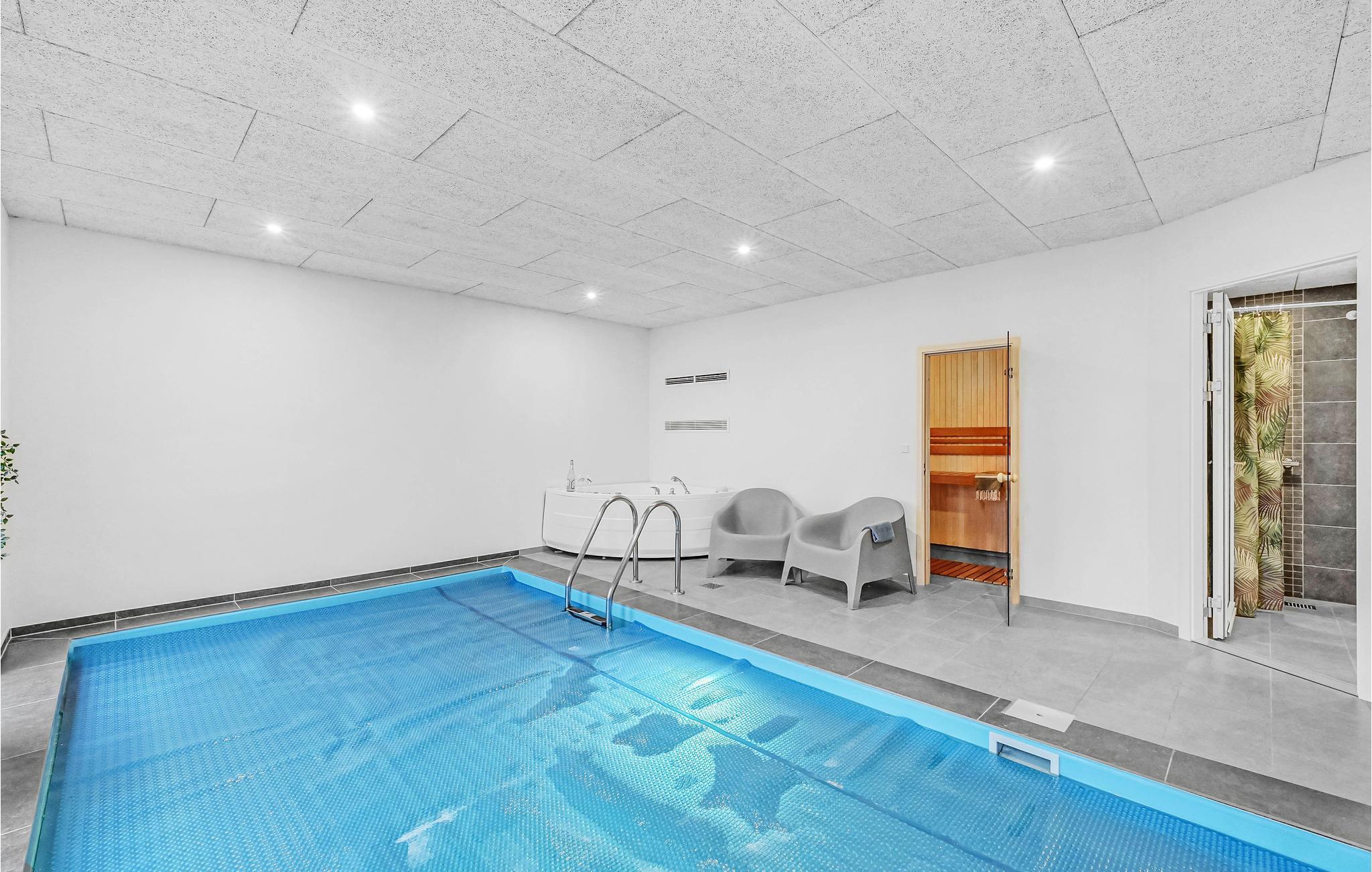 Velkommen til dette utroligt dejlige hus, som I får svært ved at løsrive jer fra. Her har I masser plads at slappe af på, og en stor del af jeres ferie kommer uden tvivl til at foregå i poolrummet, hvor I kan tilbringe timevis med at svømme baner, plaske rundt i vandet og efterfølgende nyde det varme vand i spabadet. Skulle dette ikke være nok, har huset også sauna, hvor I kan blive varmet helt igennem. Huset har derudover et stort, veludstyret køkken, der indbyder til at lave lækre feriemåltider i fællesskab, som efterfølgende kan nydes ved det store spisebord eller ude på terrassen. Terrassen er i øvrigt det perfekte sted at solbade, mens børnene løber rundt og leger på græsset, og I har også en grill til rådighed, så I kan holde hyggelige grillaftener. Slut dagen af med at flade ud foran fjernsynet i den store, bløde sofa.