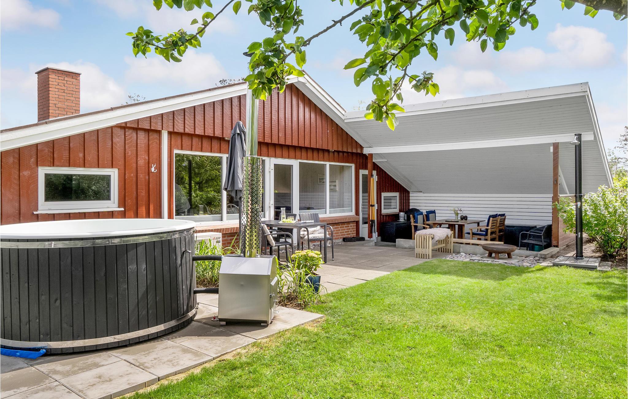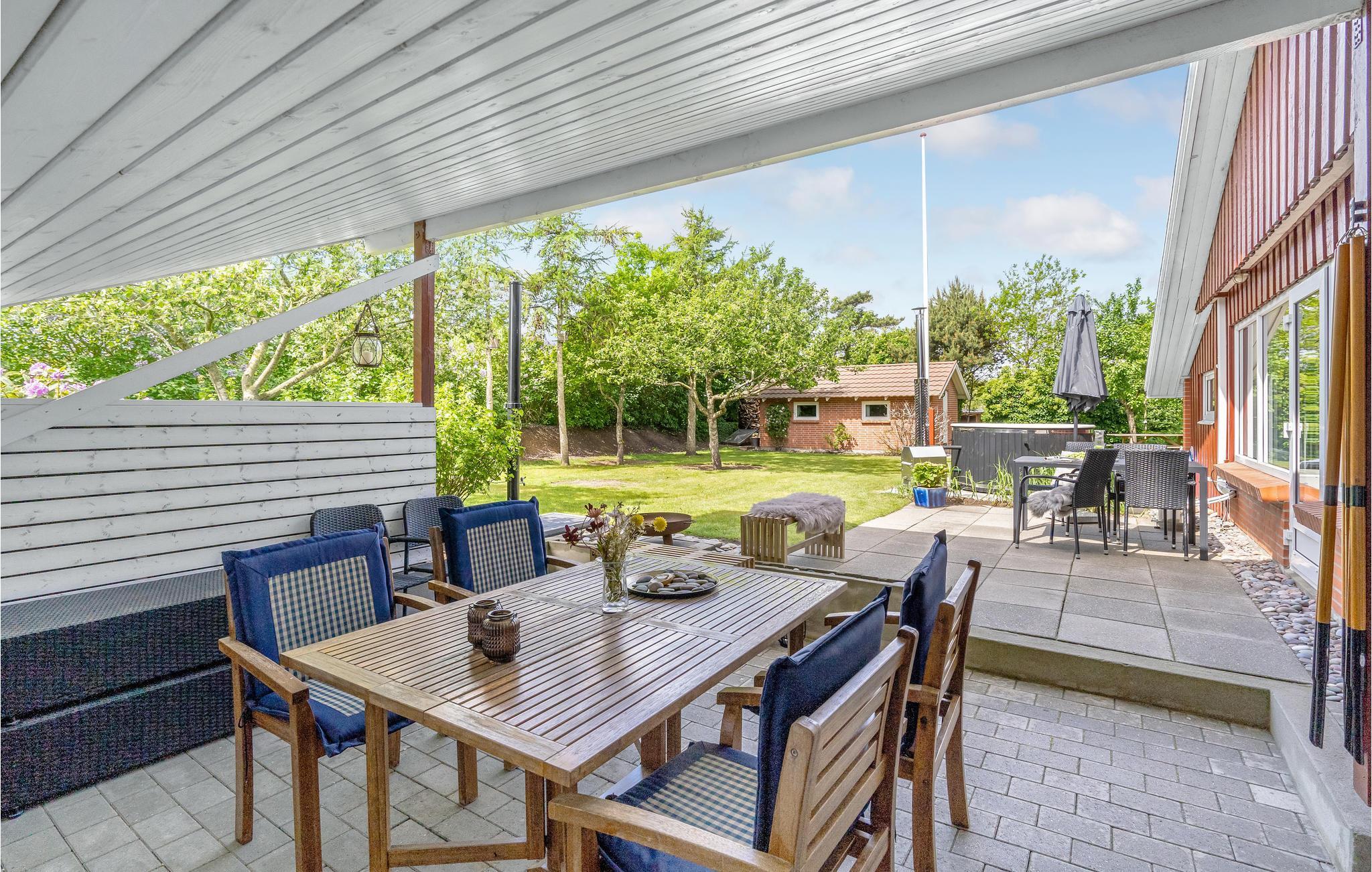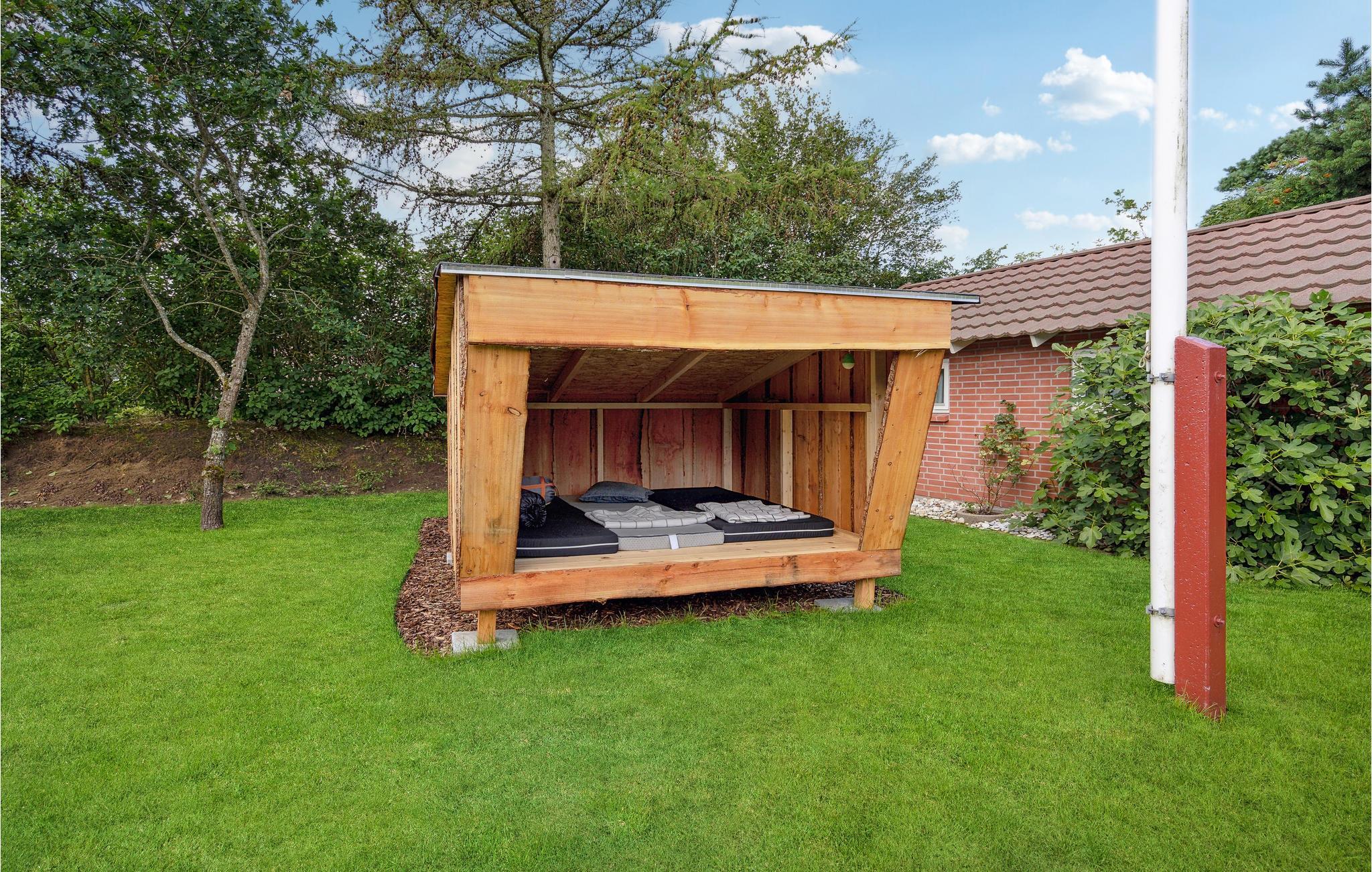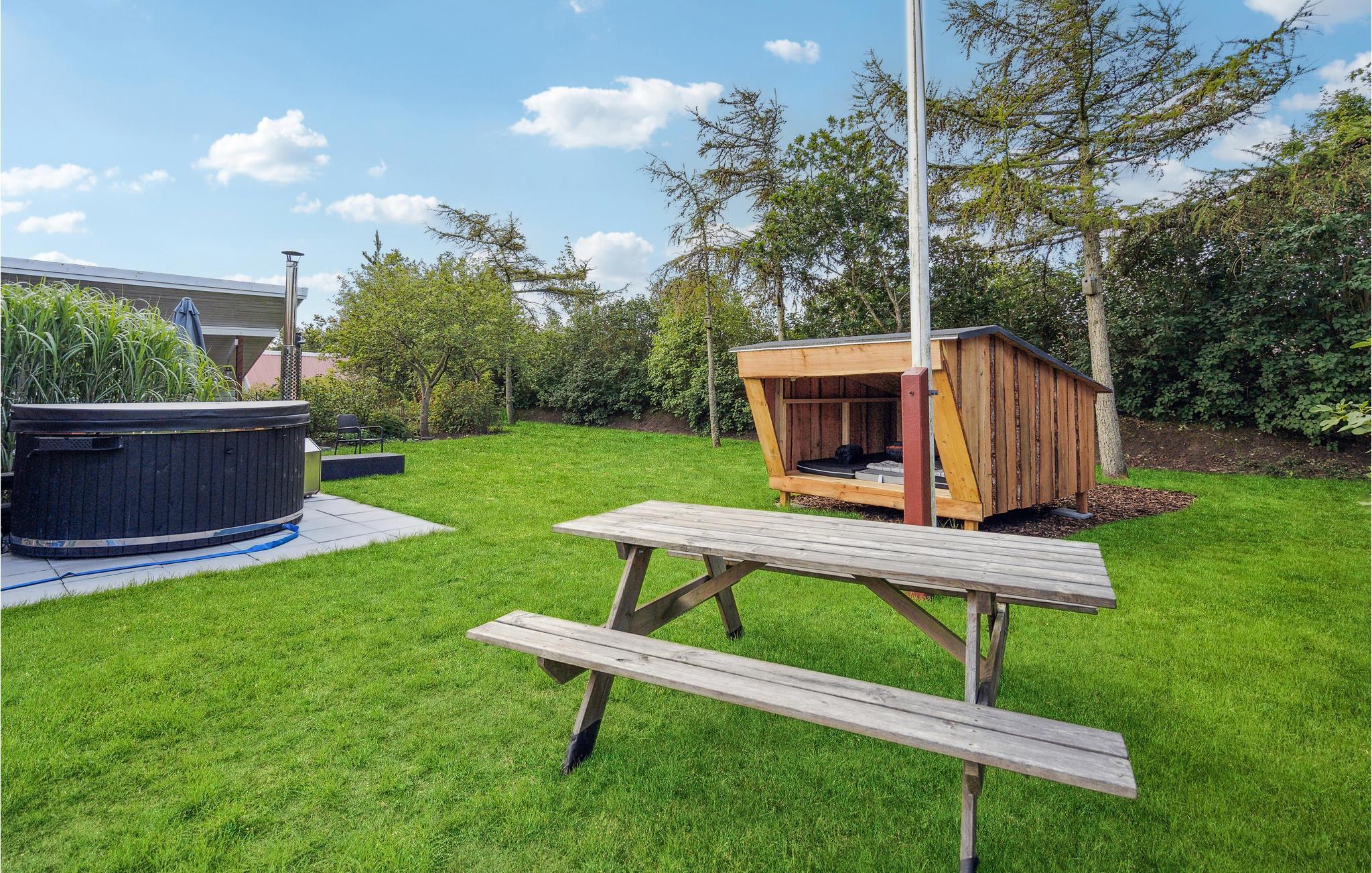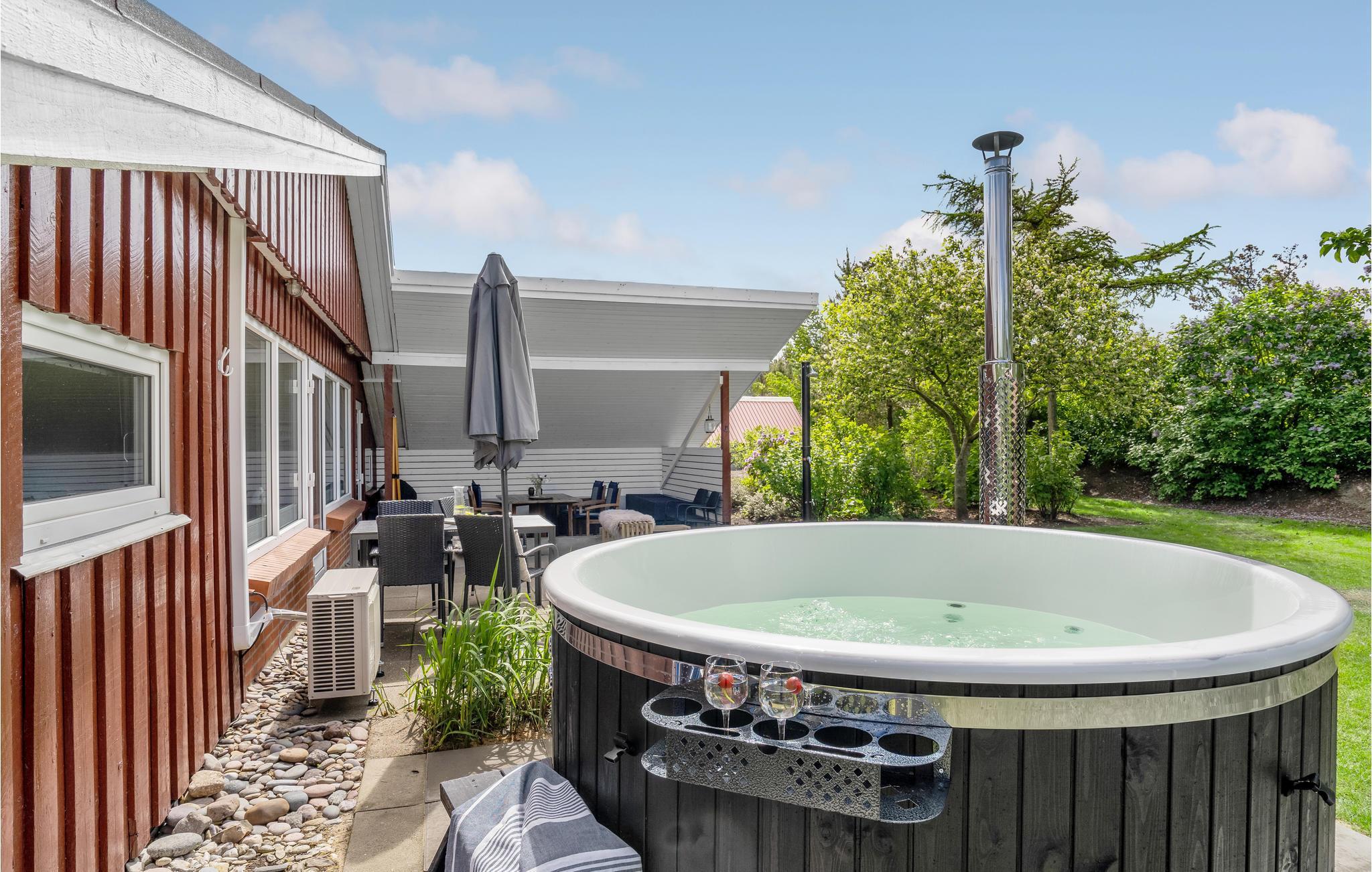 Hvis I vil skrue lidt ekstra op for jeres ferieluksus, er der et vildmarksbad på terrassen, hvor I kan bløde musklerne op efter en lang dag med oplevelser. På den overdækkede terrasse kan I nyde en brunch og planlægge dagen eller runde middagen af med et glas vin. Børnene kan lege trygt i den indhegnede have, hvor de kan løbe og lege eller få sig en gyngetur.