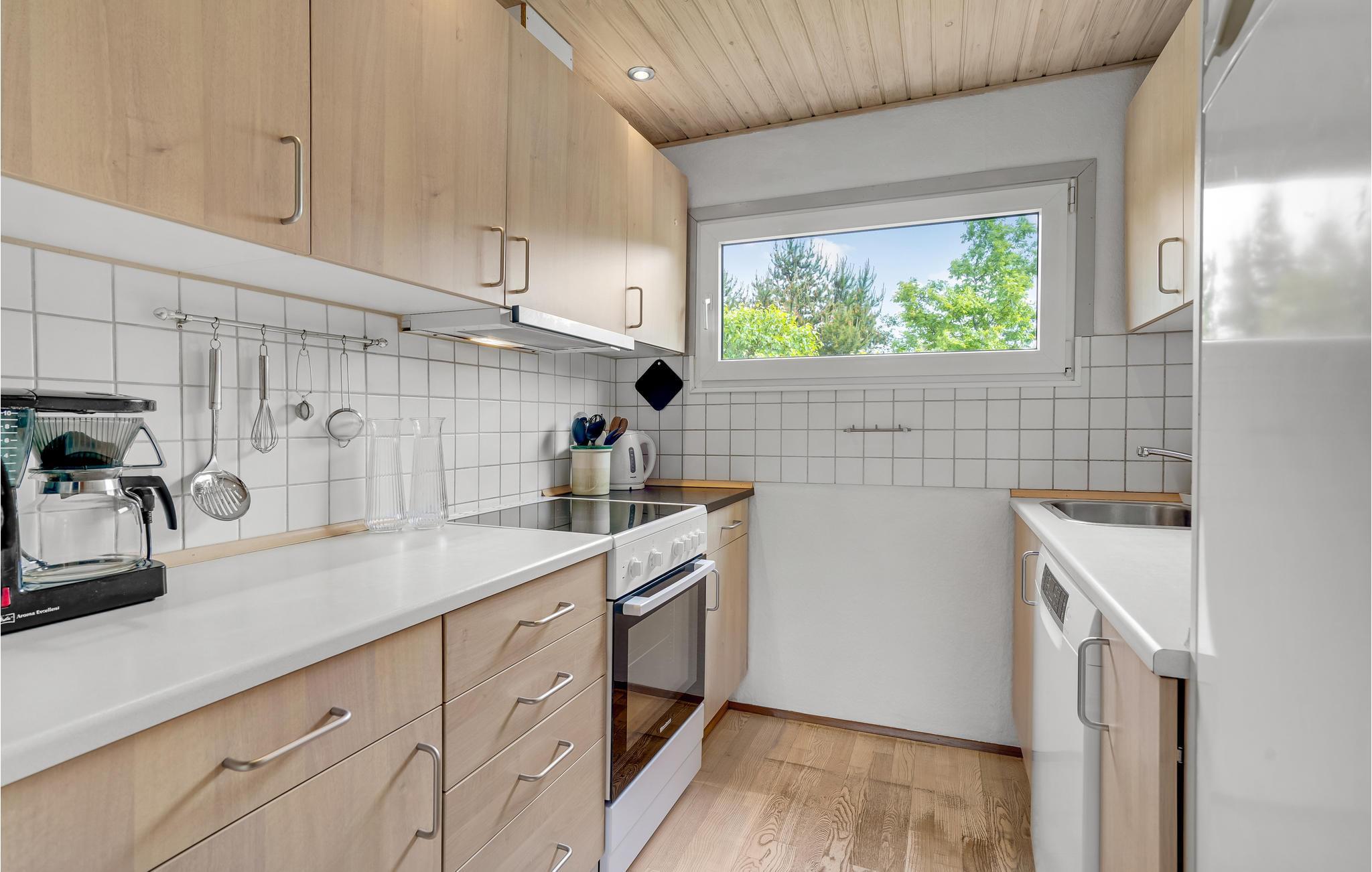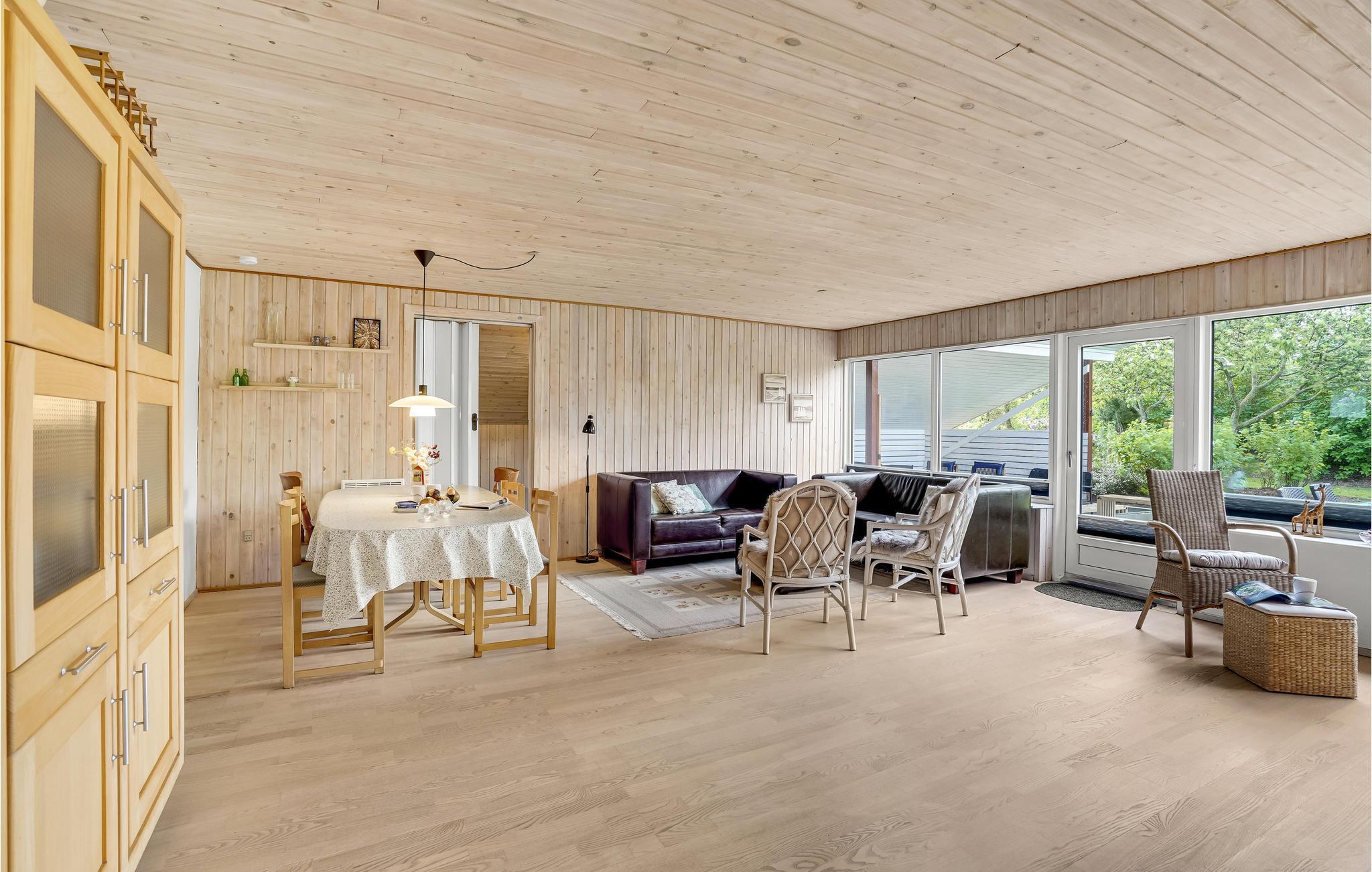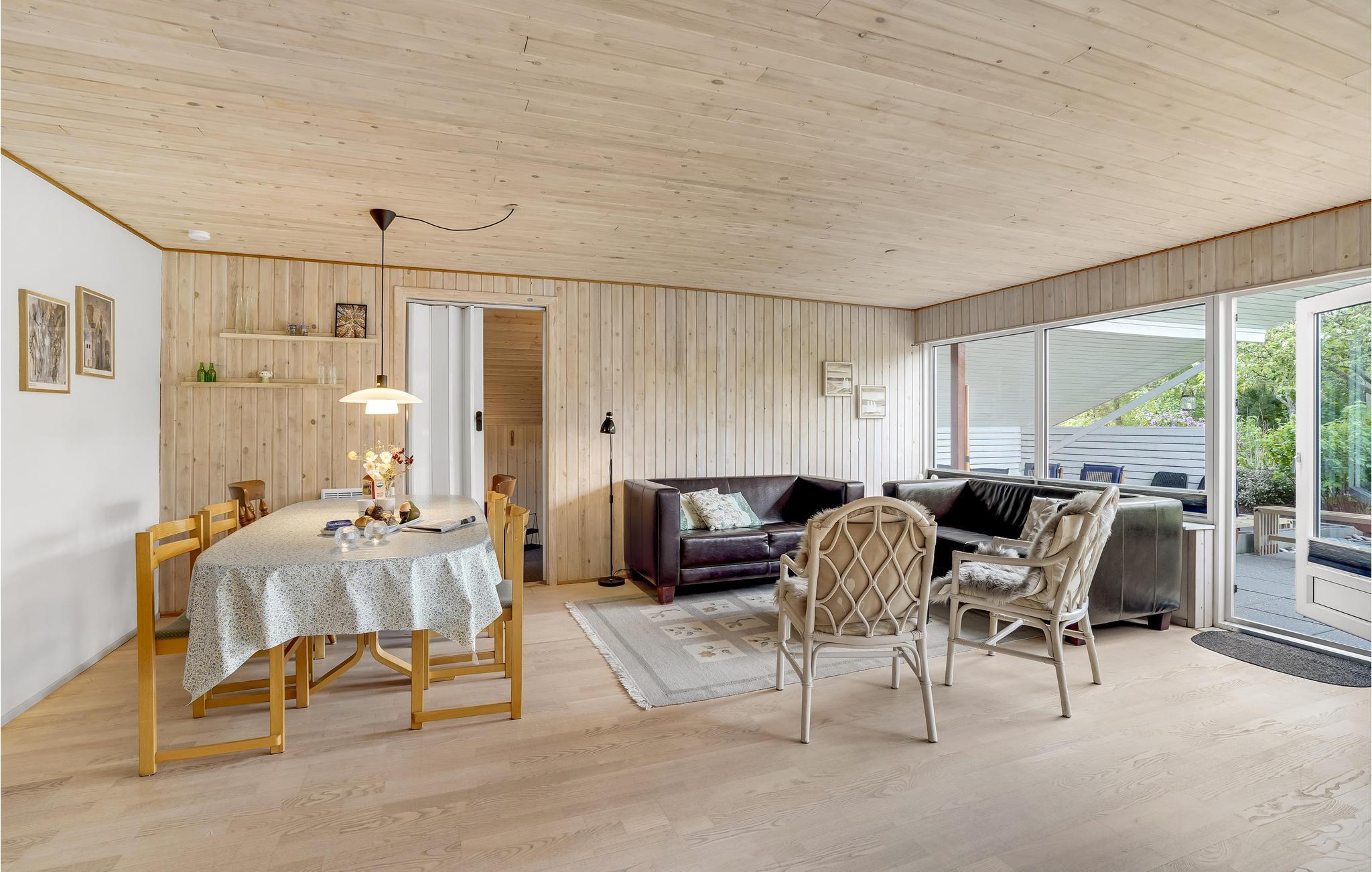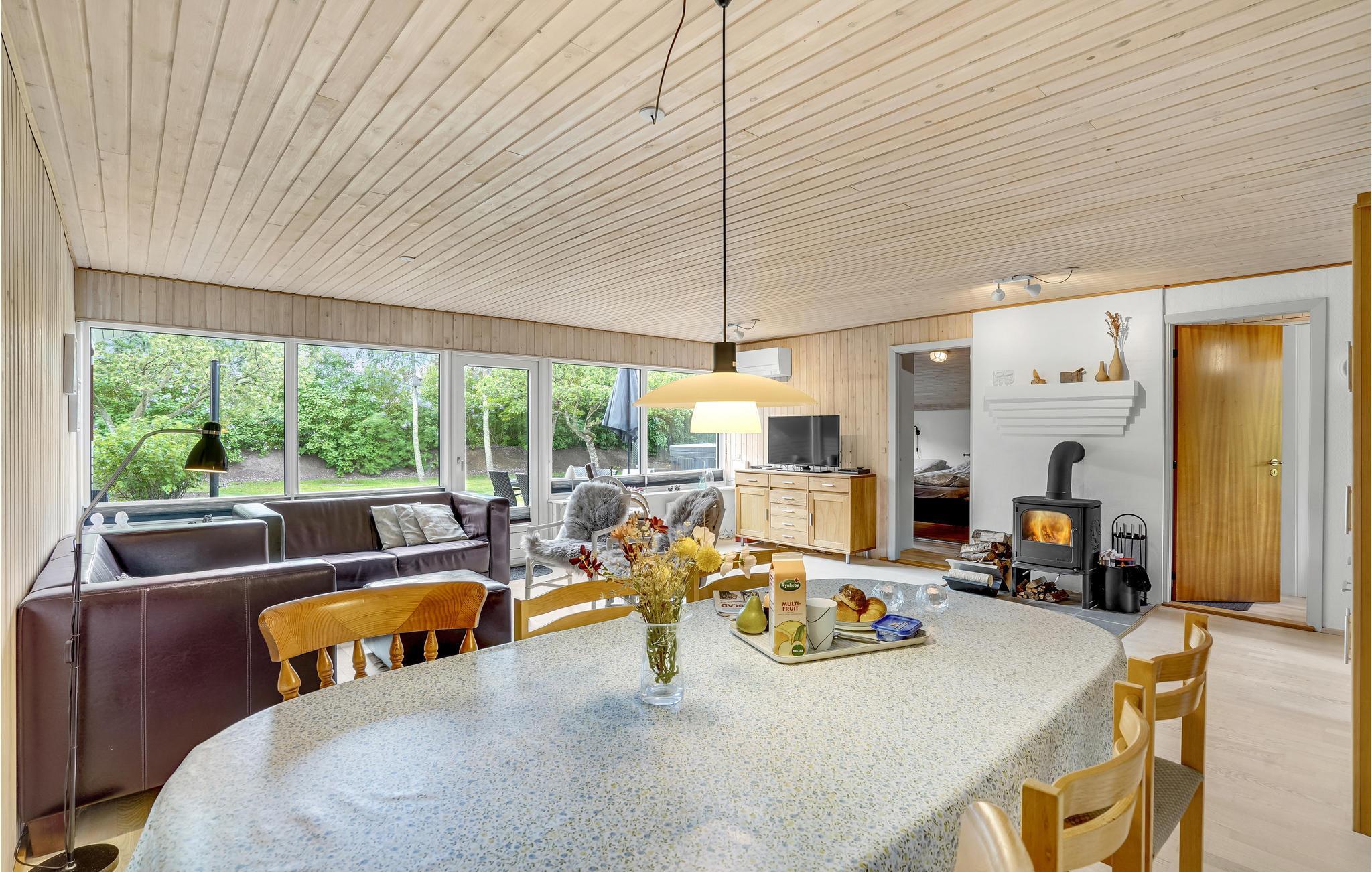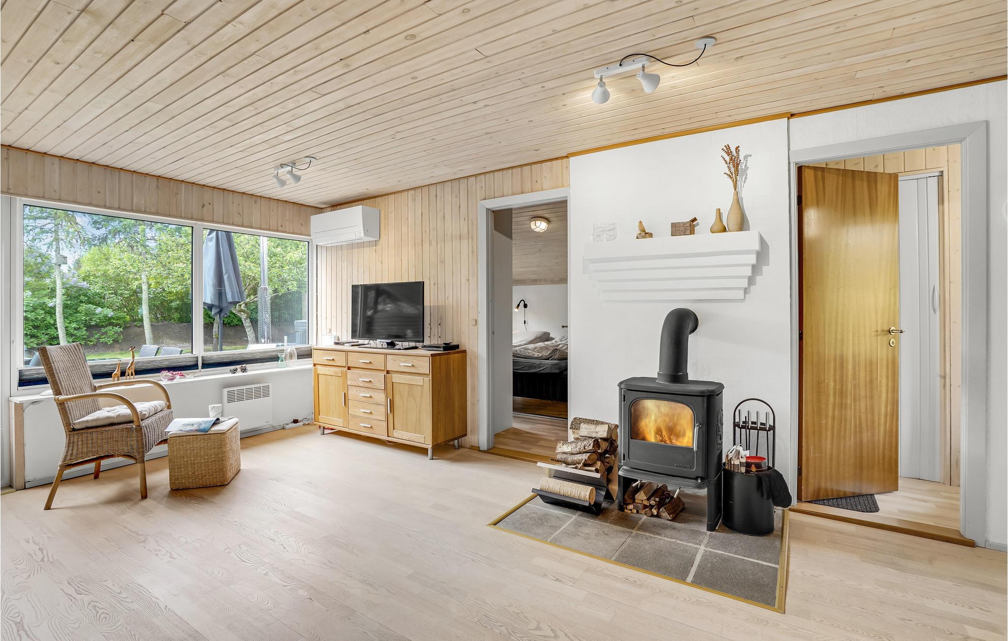 Huset er lyst og harmonisk indrettet med møbler i naturmaterialer samt en harmonisk farveskala, som gør det nemt at sænke skuldrene og slappe af. Nyd måltiderne omkring spisebordet med udsigt til haven og slap af i varmen fra brændeovnen på de kølige dage.