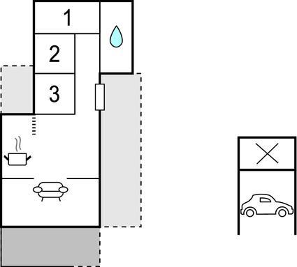 Opholdsstue - 1 Soveplads. (Sofa, madras eller lignende).