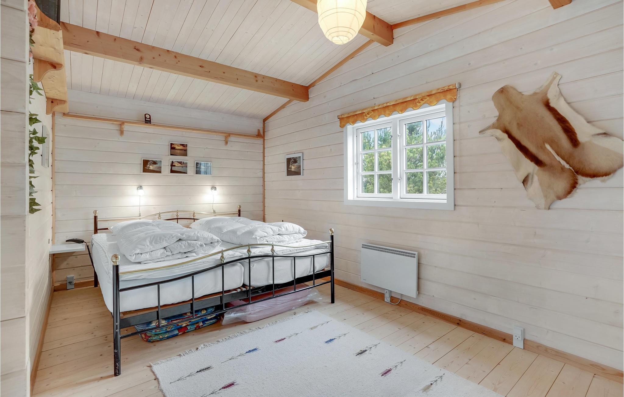 Tæt på Ringkøbing Fjord, ligger dette hyggelige bjælkesommerhus, med et godt køkken i åben forbindelse til stuen, som er udstyret med både varmepumpe og brændeovn som supplerende varmekilder. I køkkenet er der opvaskemaskine. Der er tre soveværelser, det ene med dobbelt seng, samt et badeværelse med bruser. Sid udendørs på den dejlige store terrasse med havemøbler og grill. I kan gå lange ture langs fjorden, ad velanlagte stier. Smut en tur til Ringkøbing med gode butikker og spisesteder. Men også Stauning Lufthavn og Stauning Whiskey er et besøg værd.