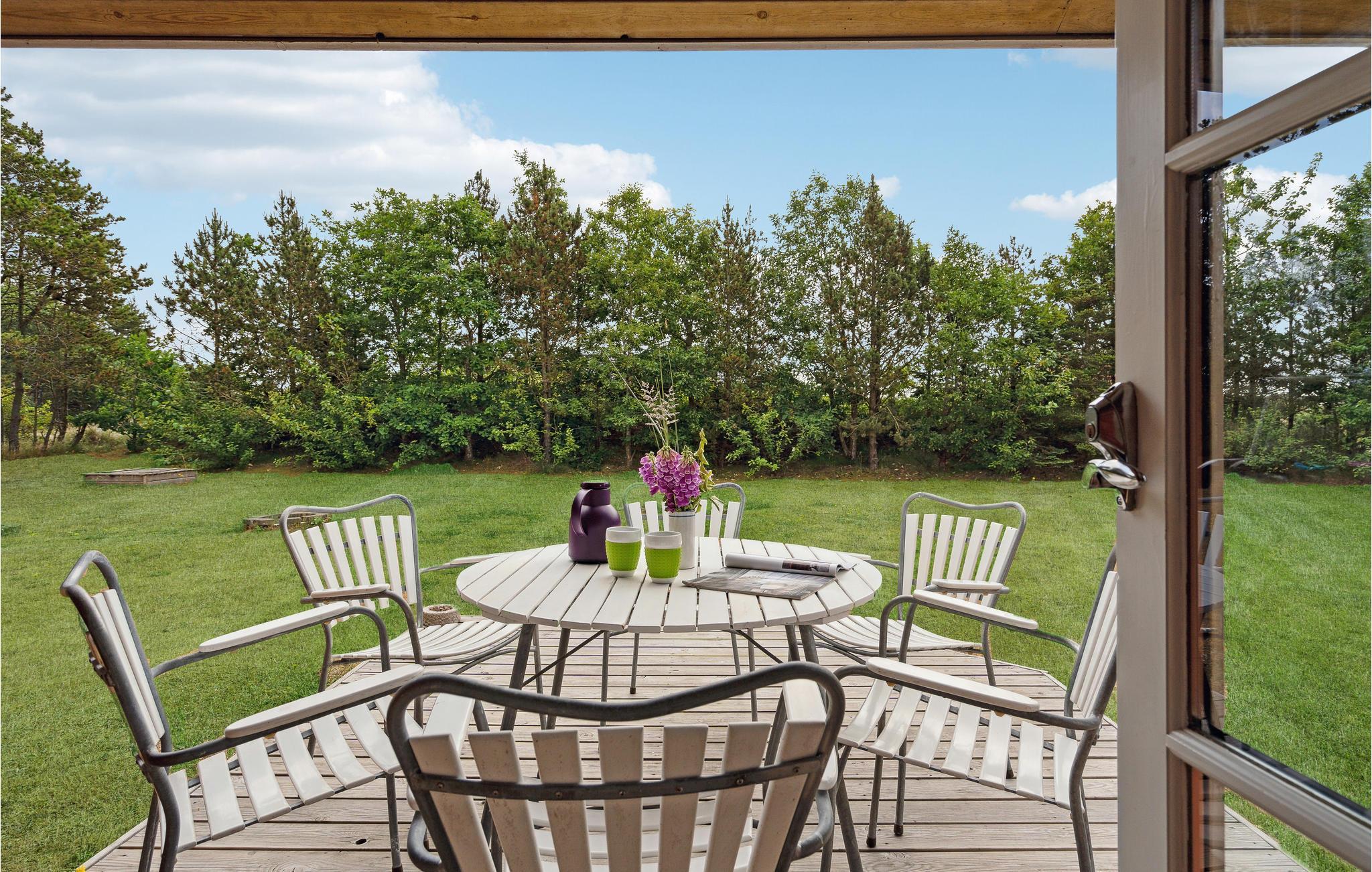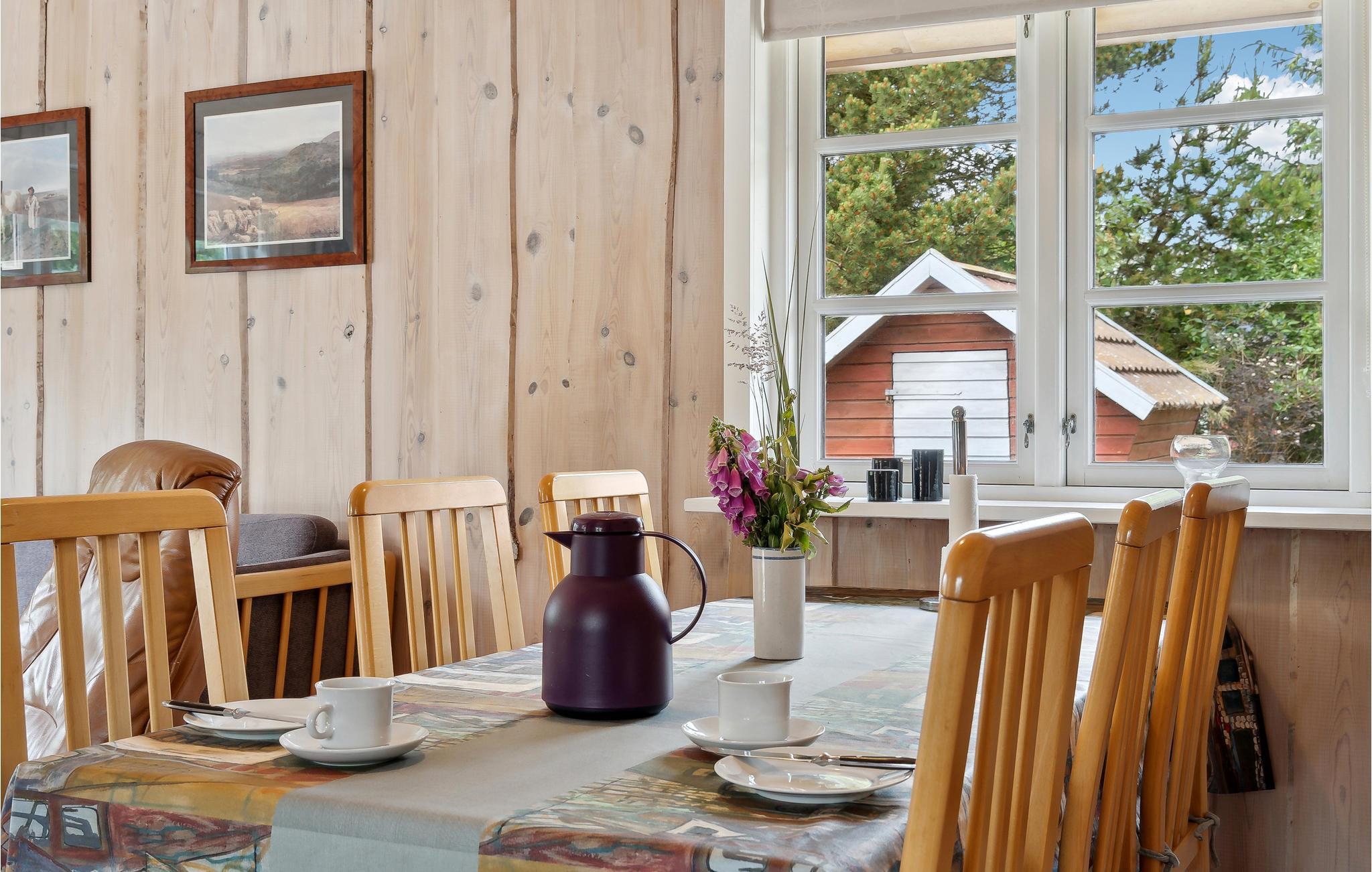 På en dejlig beplantet grund, ikke langt fra Ringkøbing Fjord, ligger dette hyggelige sommerhus. Det indeholder køkken-alrum med både varmepumpe og brændeovn, 2 gode værelser det ene med dobbeltseng, samt badeværelse med brus. Udenfor er der en god terrasse samt gynge og sandkasse til børnene. Området er et dejlig naturområde med gode stier til vandreture. Skal man på tur så er der Stuning Lufthavn med de gamle flyvere, og Ringkøbing som er en gammmel hyggelig by, med gode butikker og spisesteder.