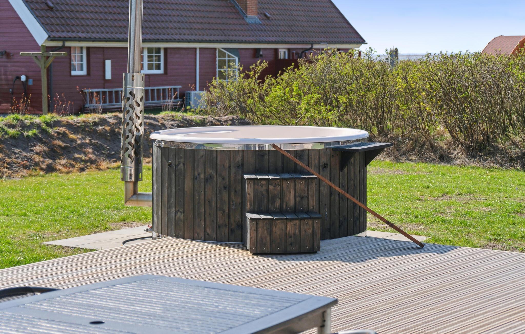 Tilbring afslappende dage i idylliske omgivelser nær fjorden i dette feriehus med vildmarksbad.