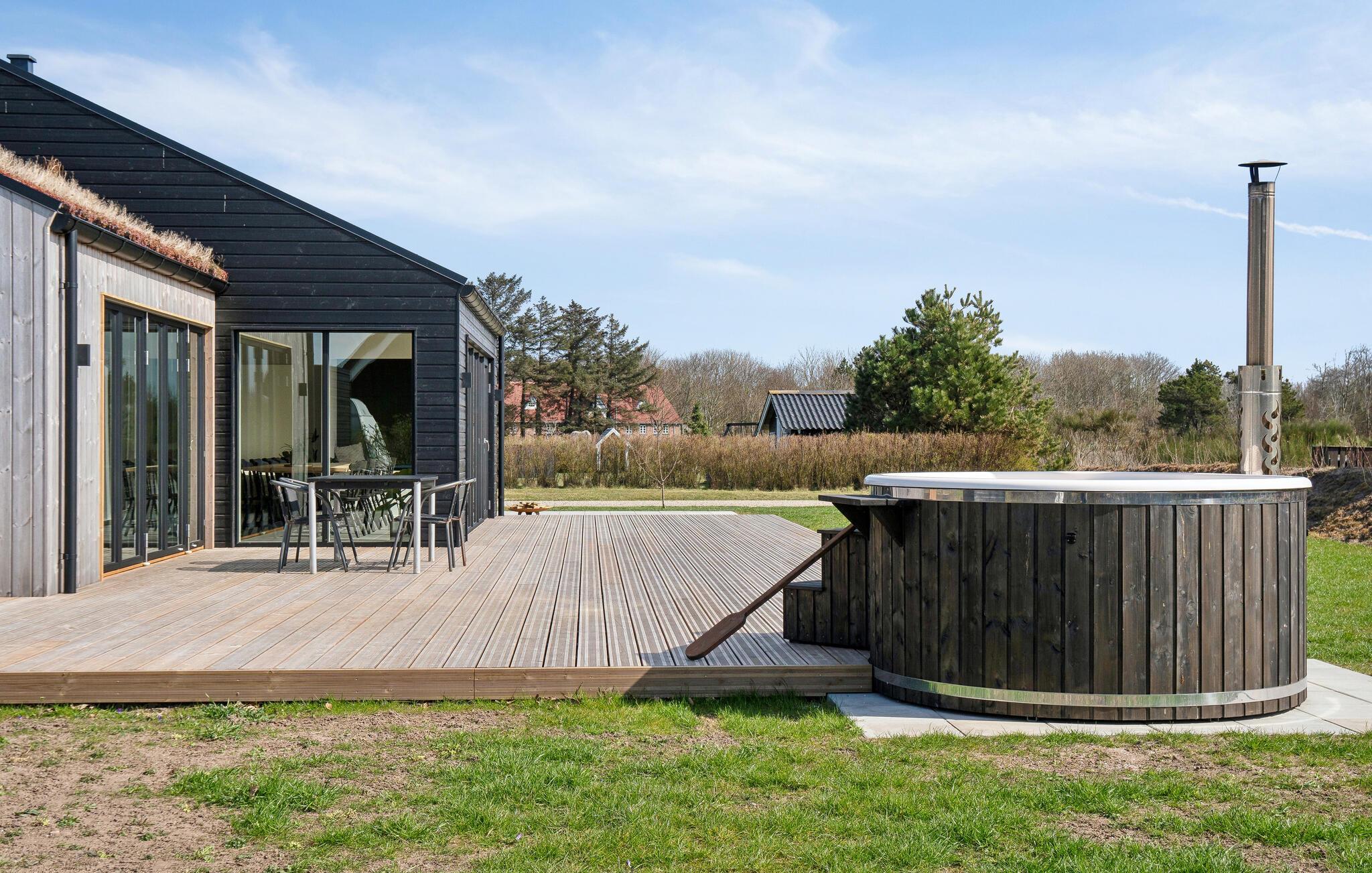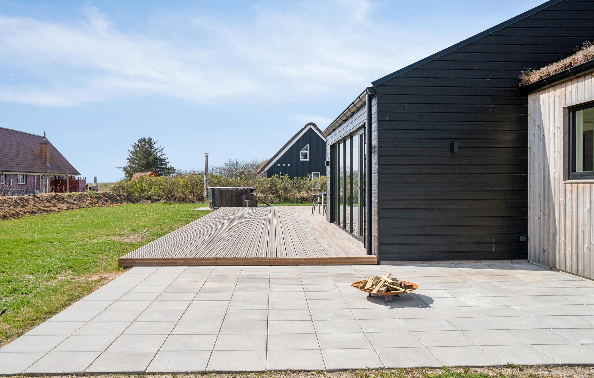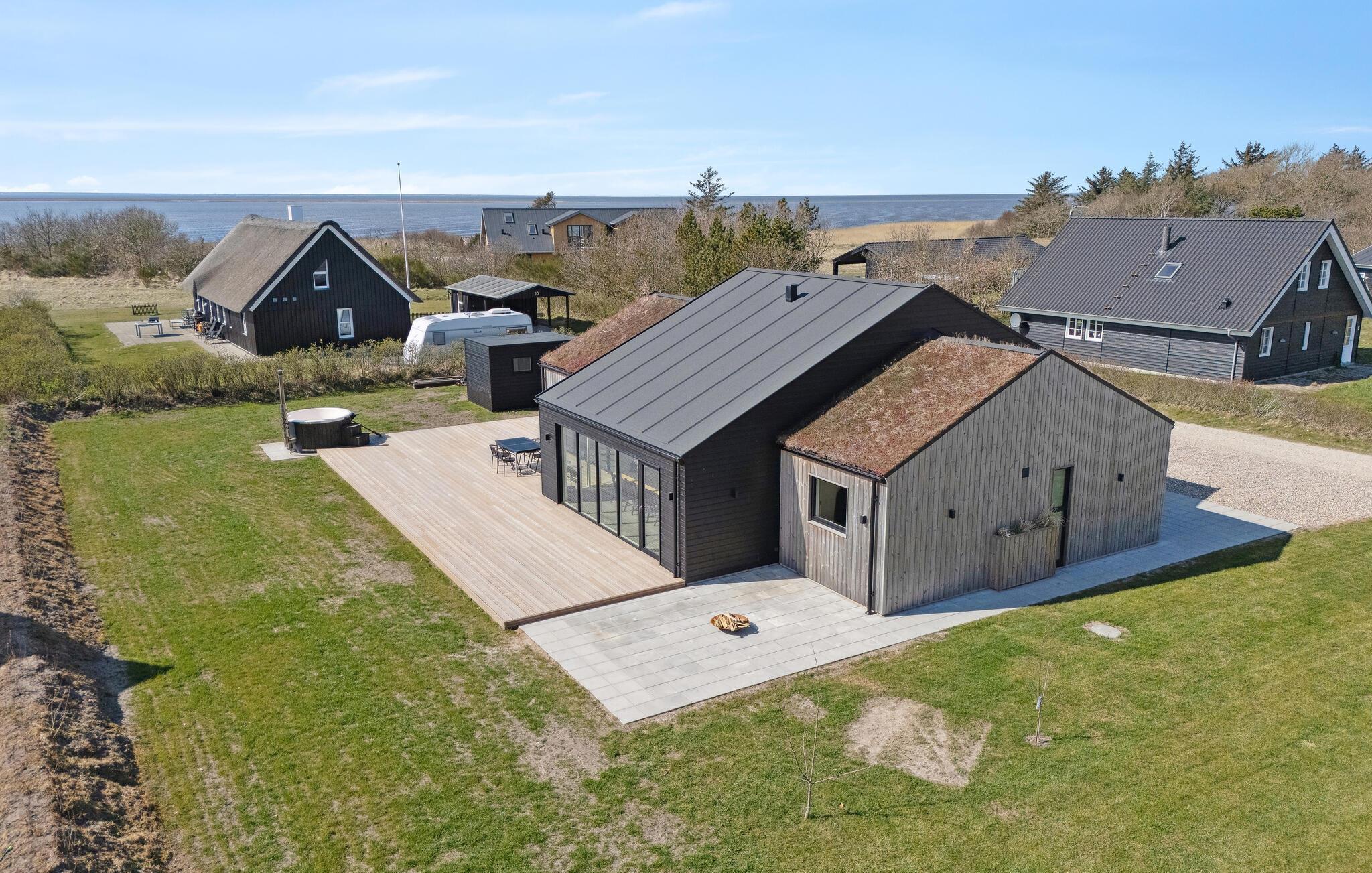 Nyd et moderne feriehus med vildmarksbad og smuk fjordudsigt i rolige Stauning nær vandet.