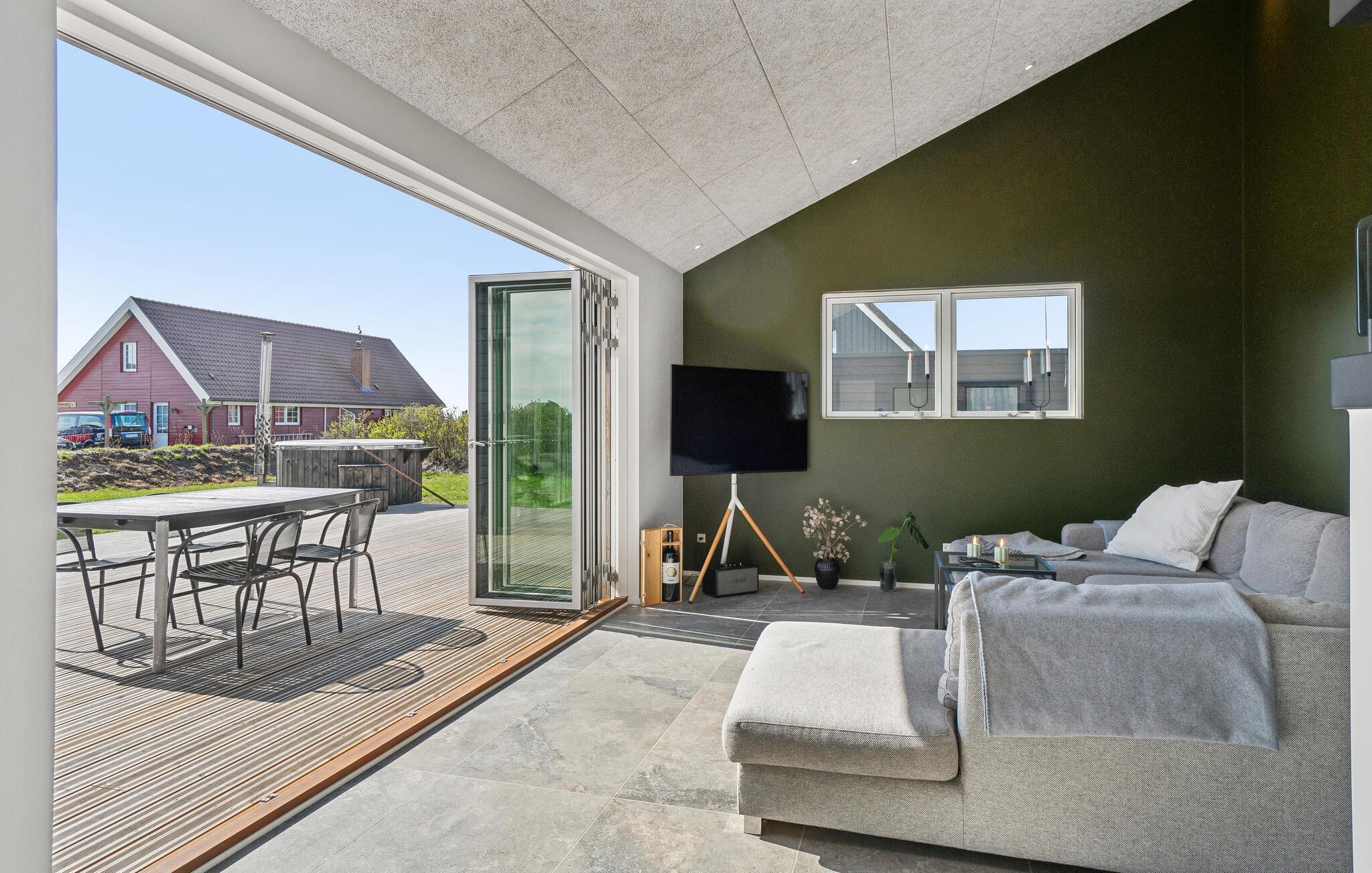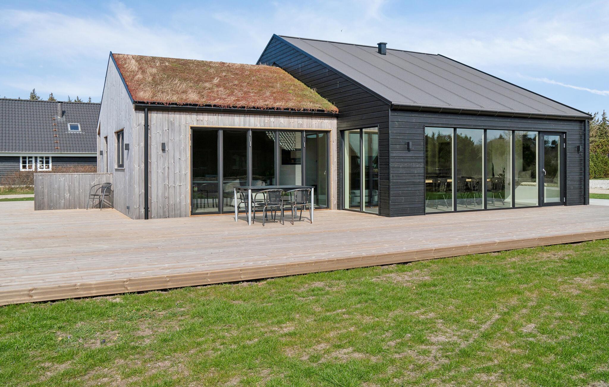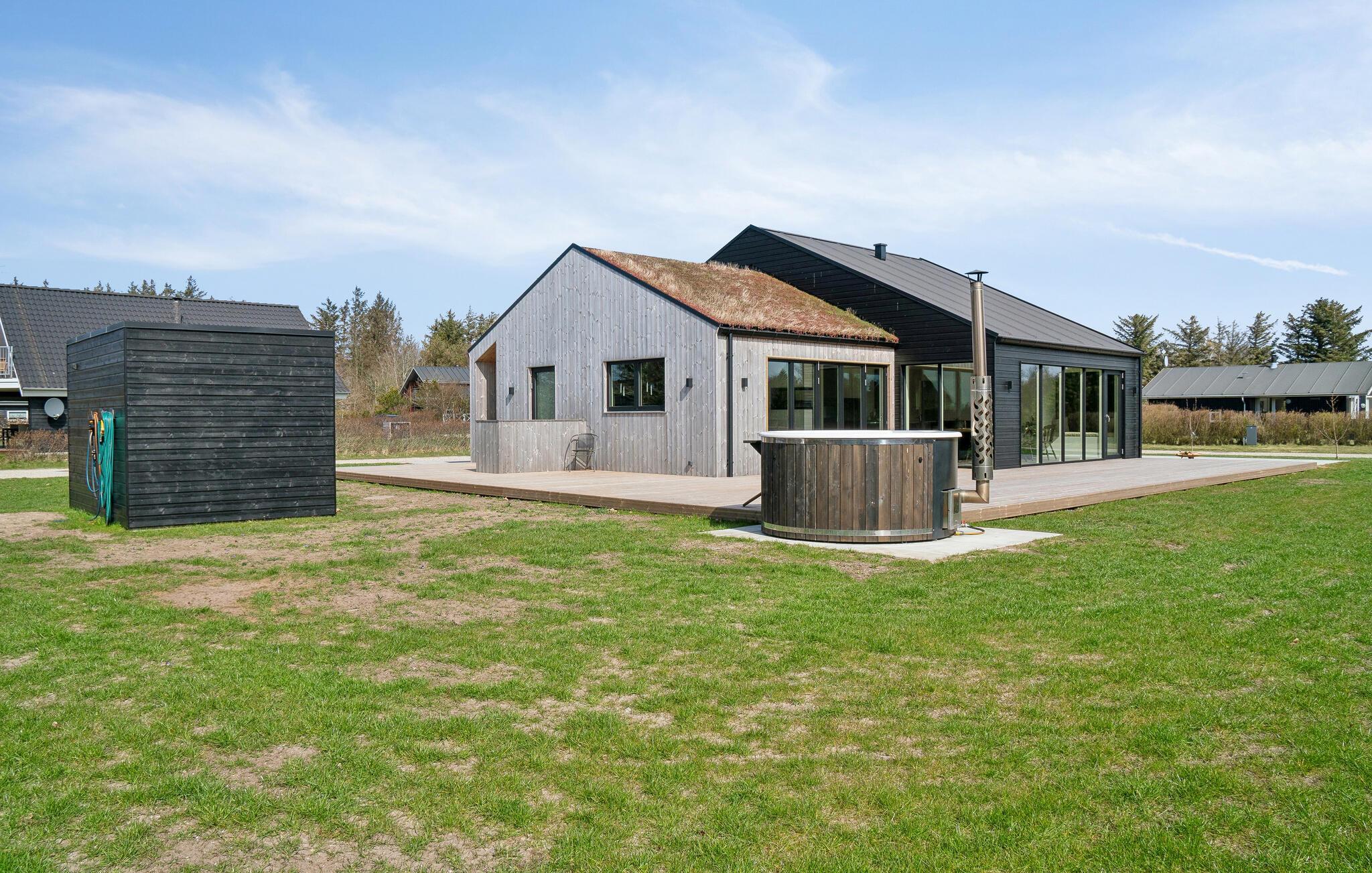 Nyd et moderne feriehus med vildmarksbad og smuk fjordudsigt i rolige Stauning nær vandet.