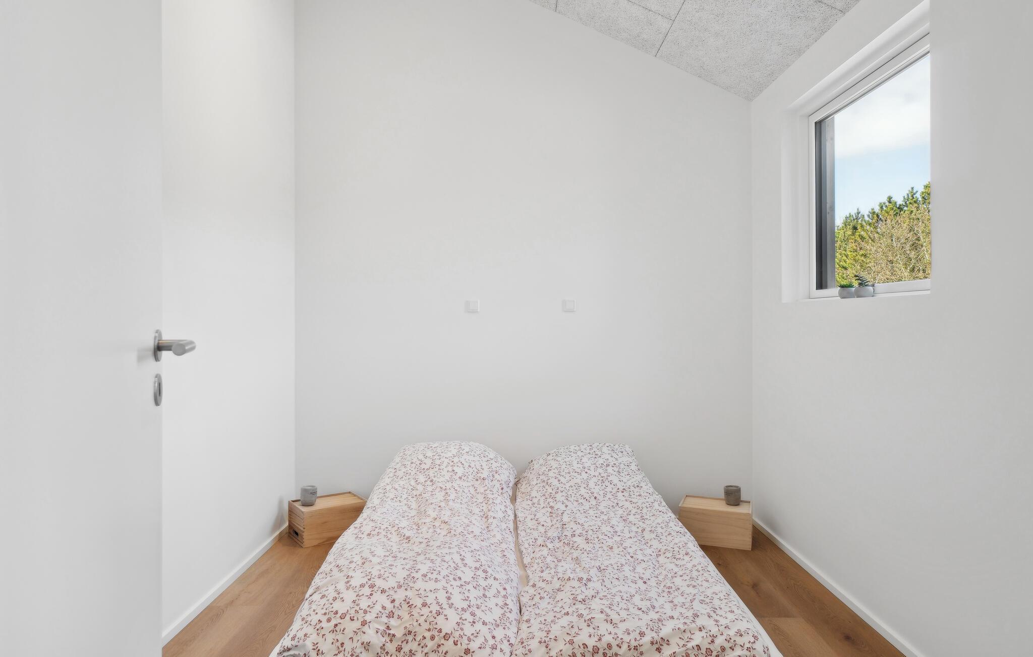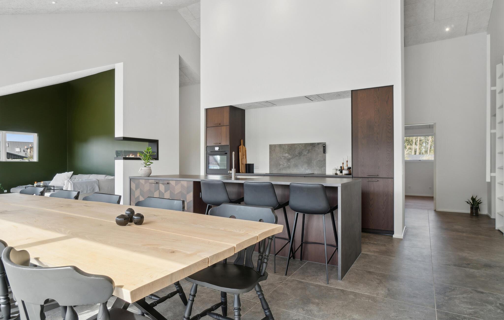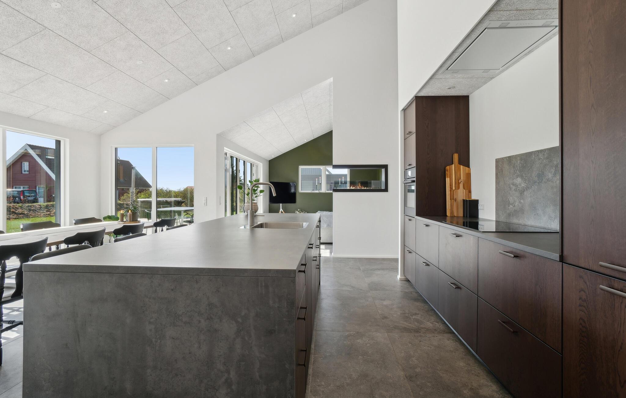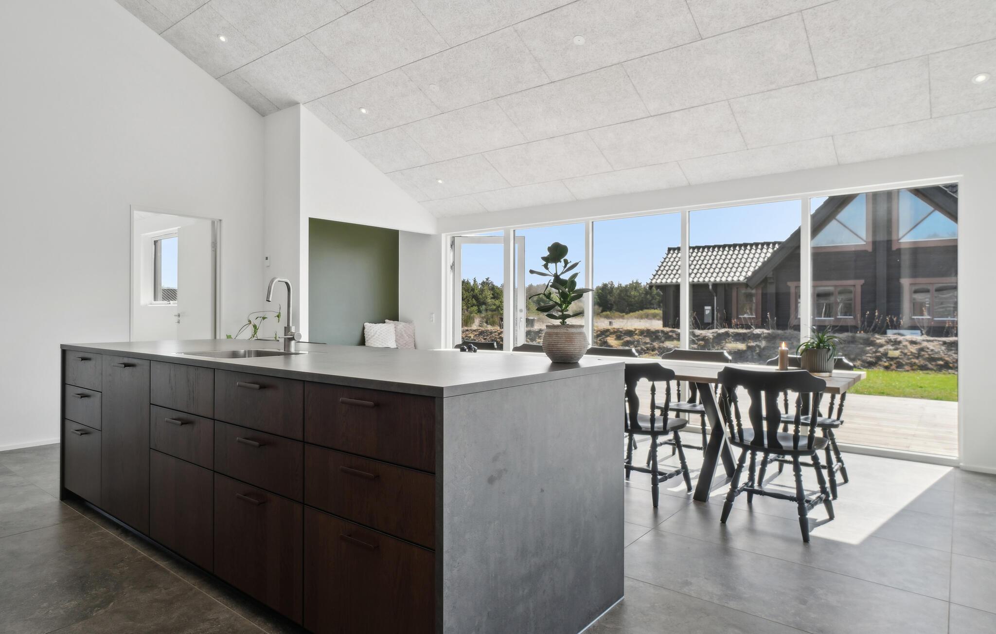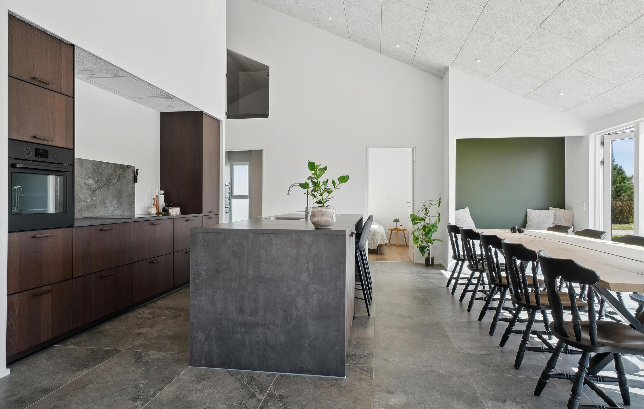 Der er lagt op til en fredfyldt og behagelig ferie i dette velholdte feriehus. Nyd den afslappede atmosfære i det åbne opholdsområde, som giver jer masser af plads til madlavning, spil og afslapning sammen. Tilbered lækre retter i det elegante, åbne køkken, og nyd jeres måltider med en smuk udsigt udenfor. Om aftenen sørger brændeovnen for hyggelig varme, som er oplagt til hyggelige kortspil og stimulerende samtaler.
