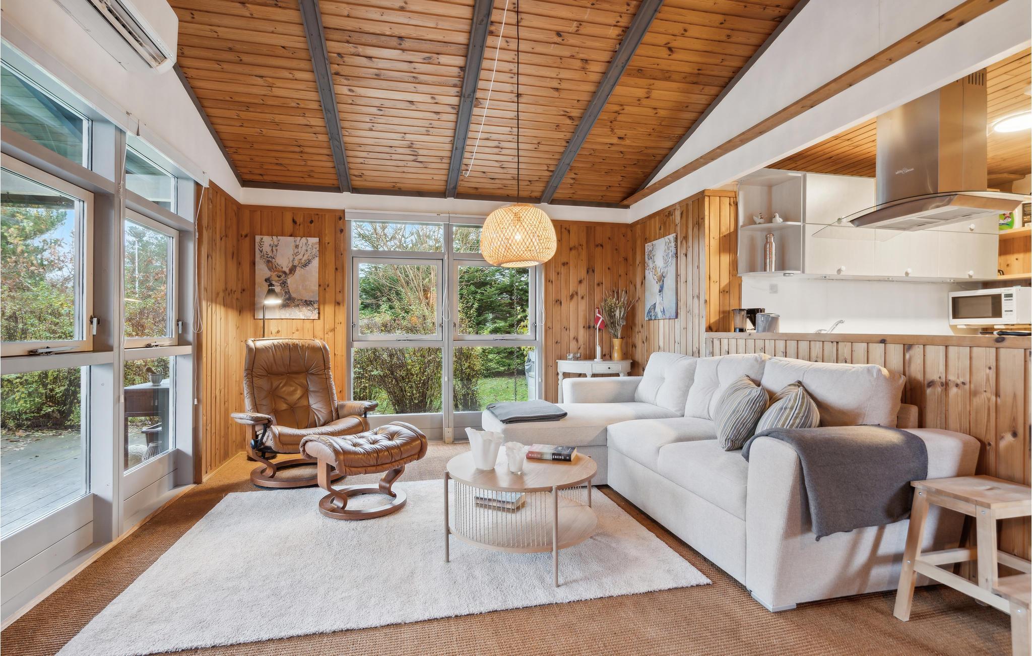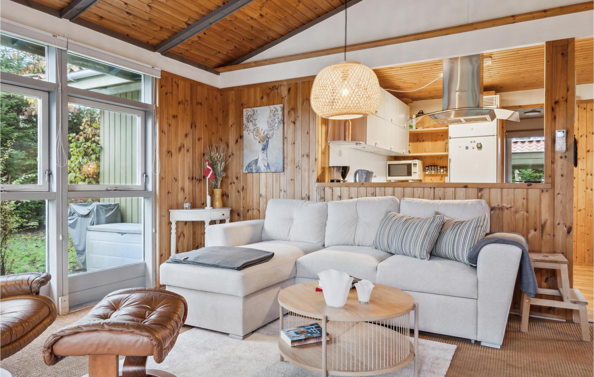 Nyd roen ved Ringkøbing Fjord og tilbring en afslappende ferie i dette veludstyrede feriehus. Huset, der er kendetegnet ved store vinduer og træbeklædning på vægge og lofter, er det ideelle sted til sjovt og hyggeligt samvær med familien. Kom helt ned i gear i dette feriehus og nyd sammen fælles madlavning, spil og filmaftener. I den store have kan I selv bestemme, om I vil drikke jeres kaffe på terrassen eller tumle rundt i haven med jeres børn.