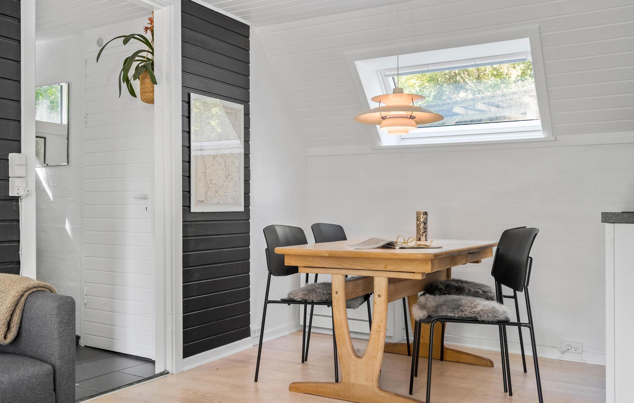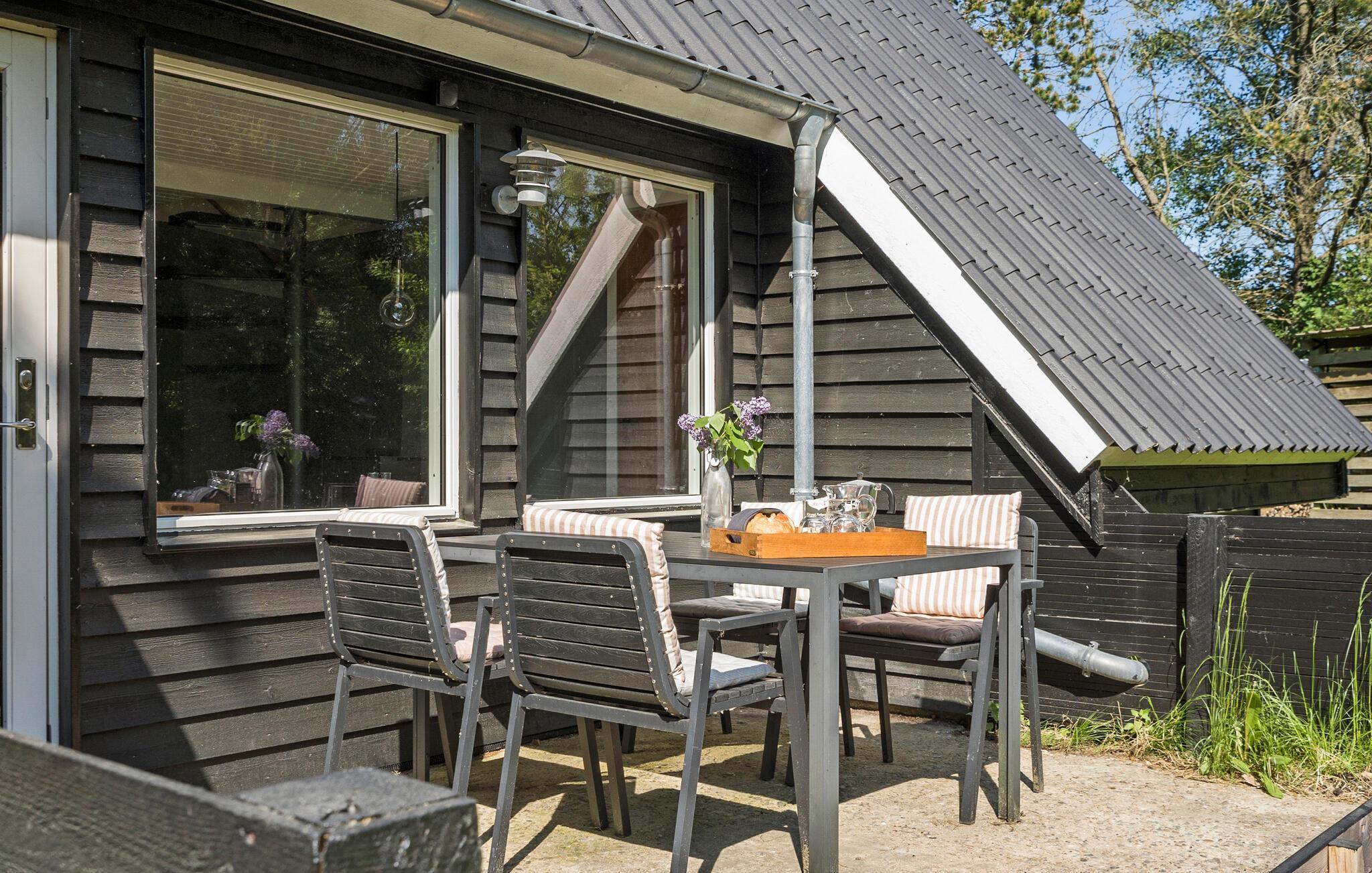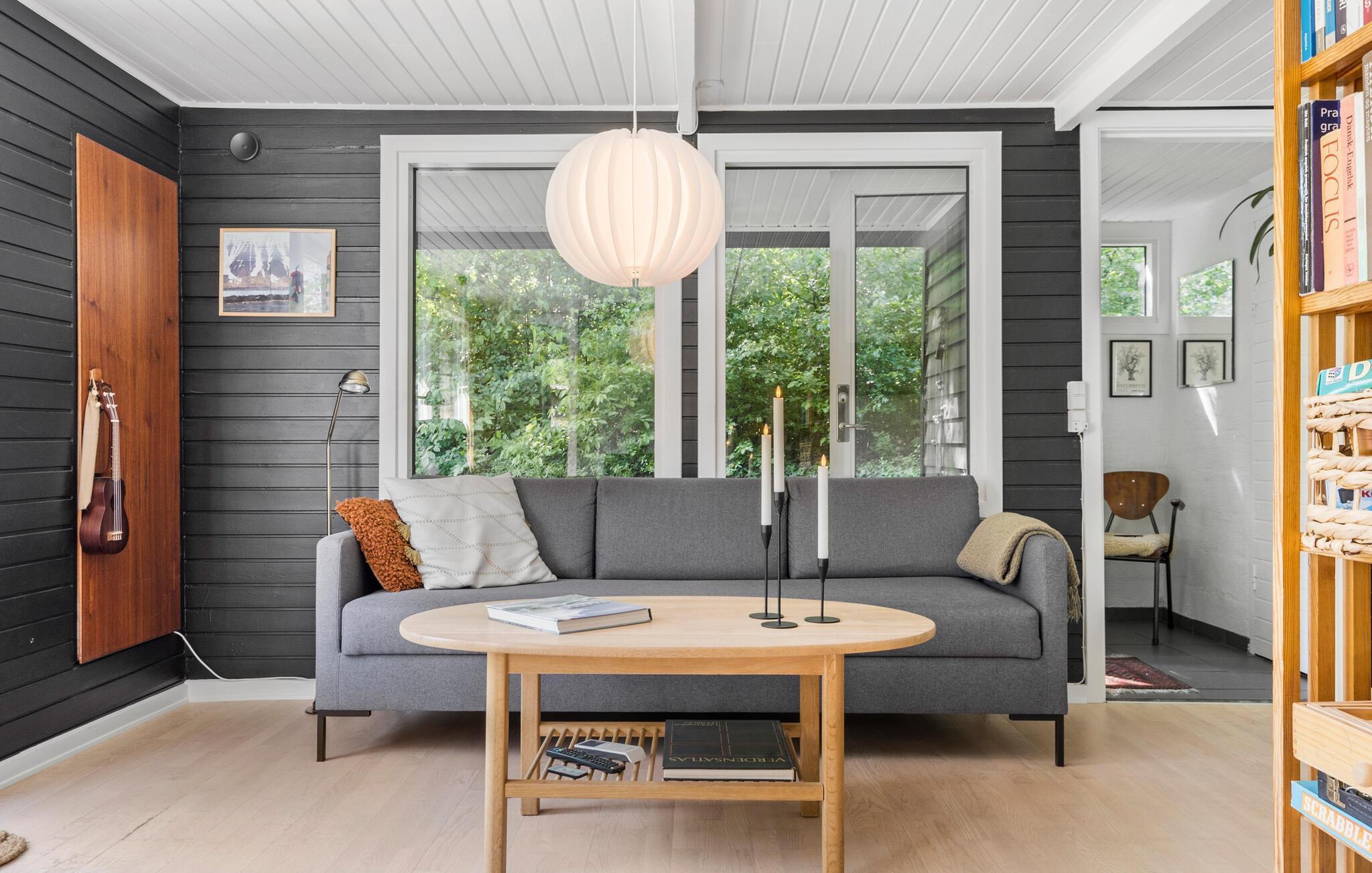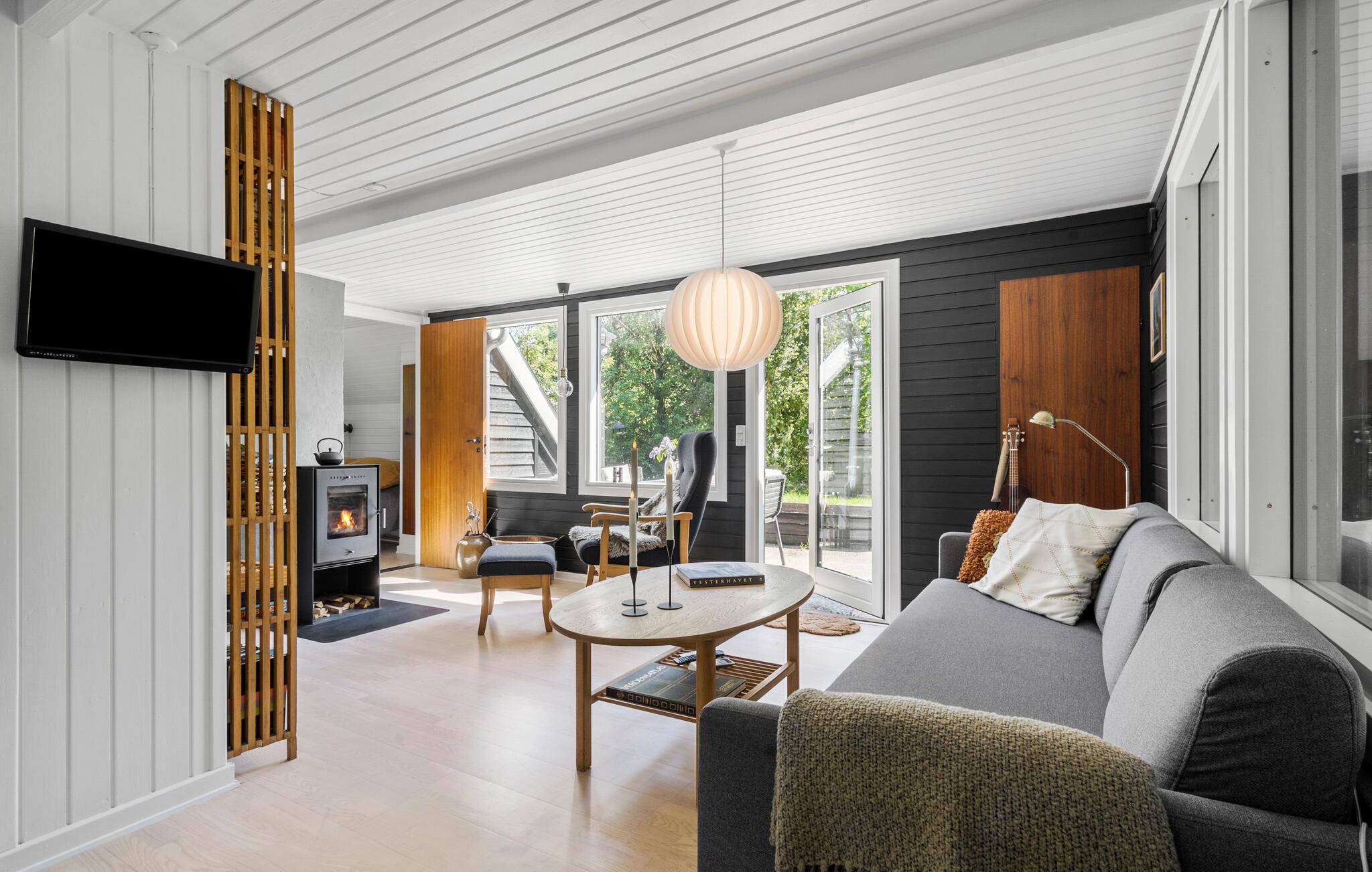 Velkommen til jeres komfortable og indbydende hus, der med sin spændende kombination af lyse og mørke farver skaber en oase af velvære. Her kan hele familien slappe af og bruge ferietiden helt uforstyrret. Lav mad, spis og spil sammen, og nyd solen udenfor, når den titter frem. Mens jeres børn leger på græsplænen, kan I trylle lækre måltider frem på grillen eller blot nyde en kop kaffe i ro og mag.