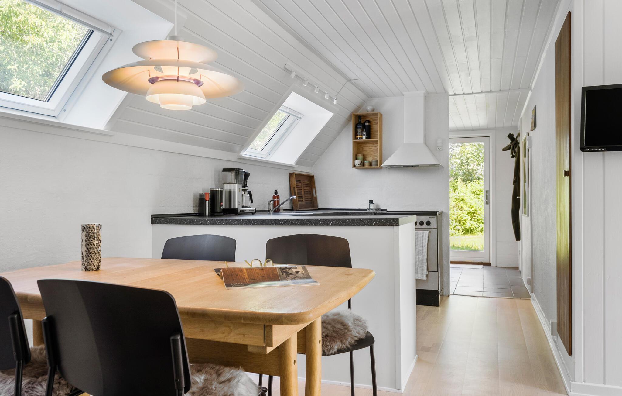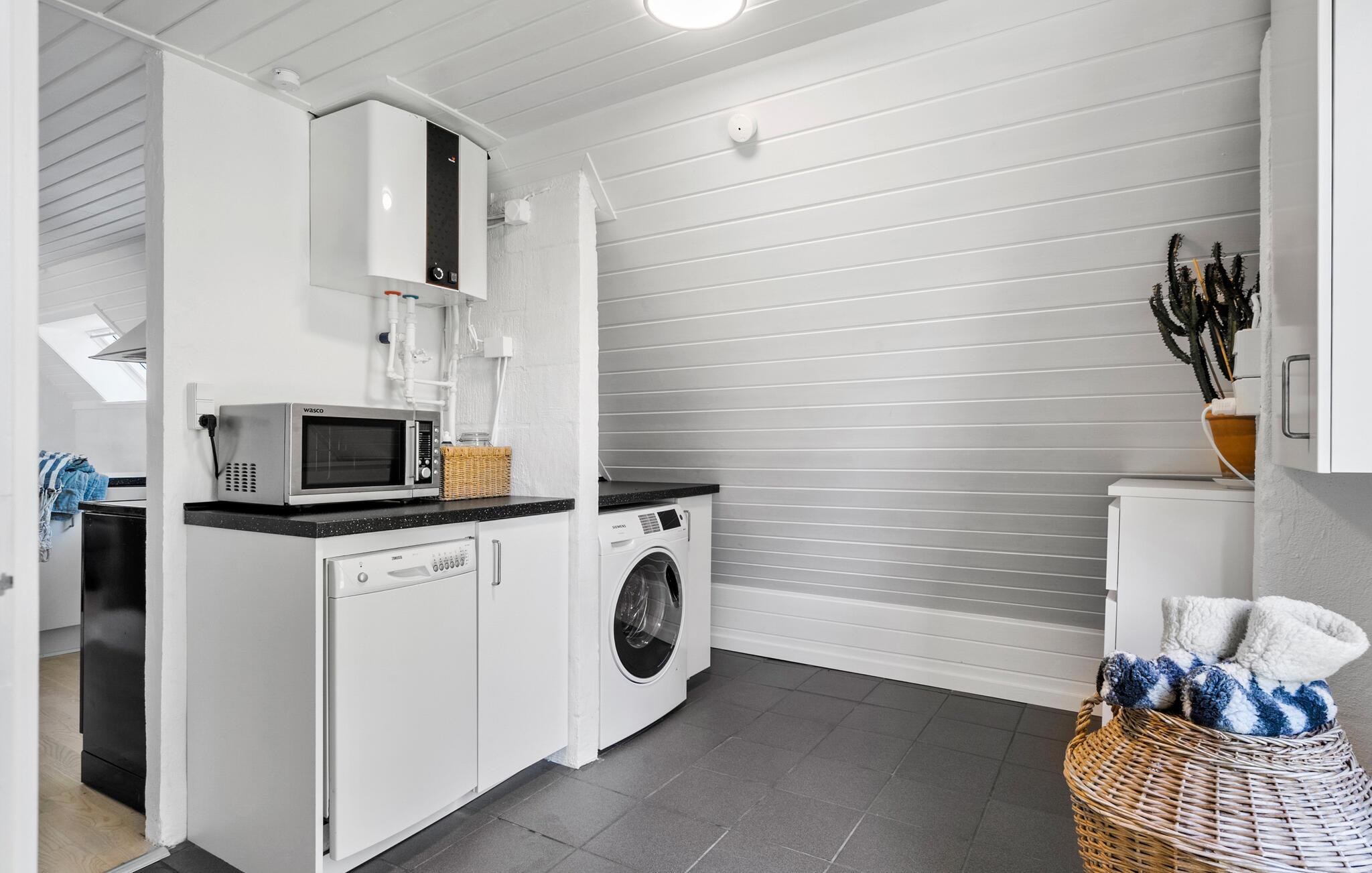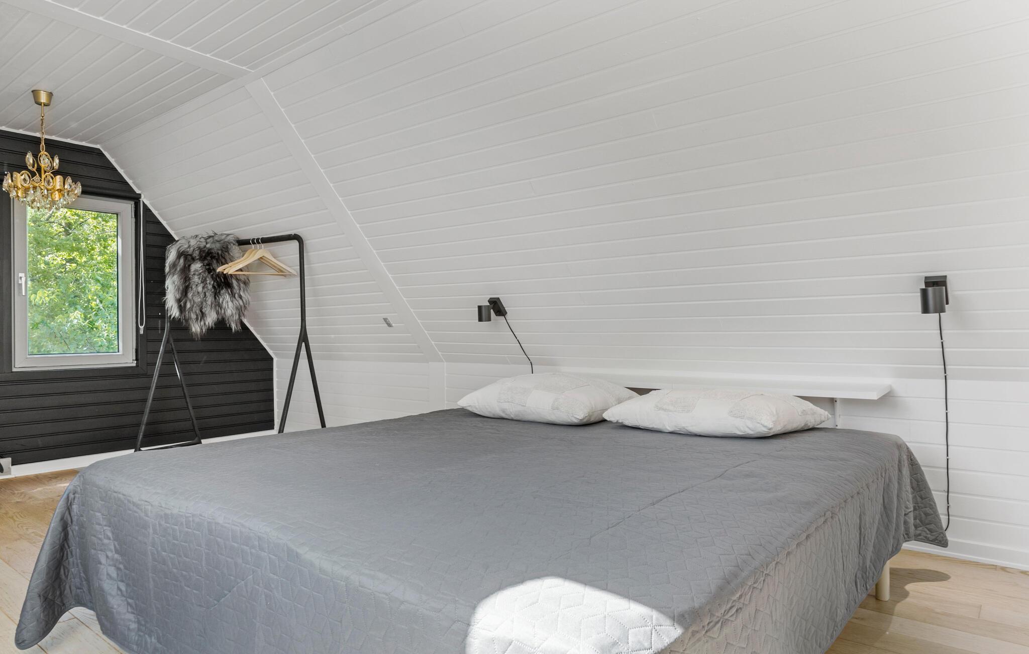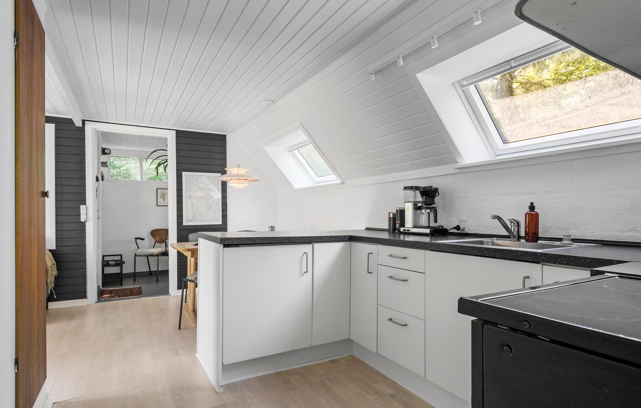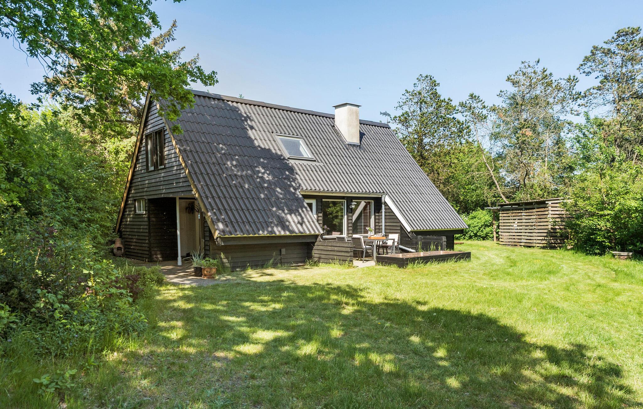 Velkommen til jeres komfortable og indbydende hus, der med sin spændende kombination af lyse og mørke farver skaber en oase af velvære. Her kan hele familien slappe af og bruge ferietiden helt uforstyrret. Lav mad, spis og spil sammen, og nyd solen udenfor, når den titter frem. Mens jeres børn leger på græsplænen, kan I trylle lækre måltider frem på grillen eller blot nyde en kop kaffe i ro og mag.