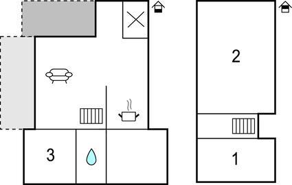 Soveværelse (nr. 1) - 2 Sovepladser. (Enkeltseng(e)).