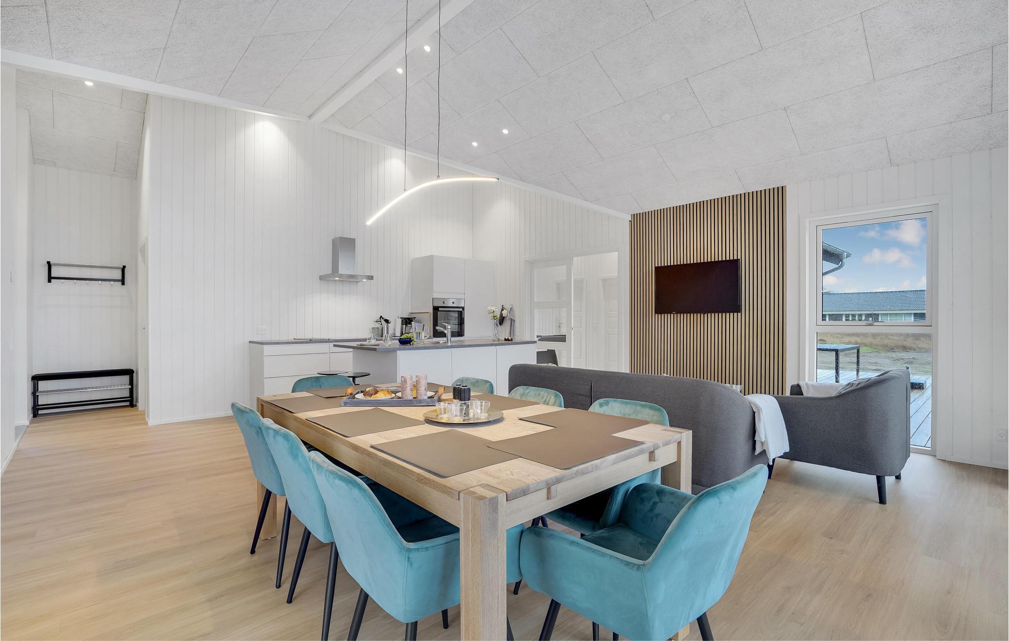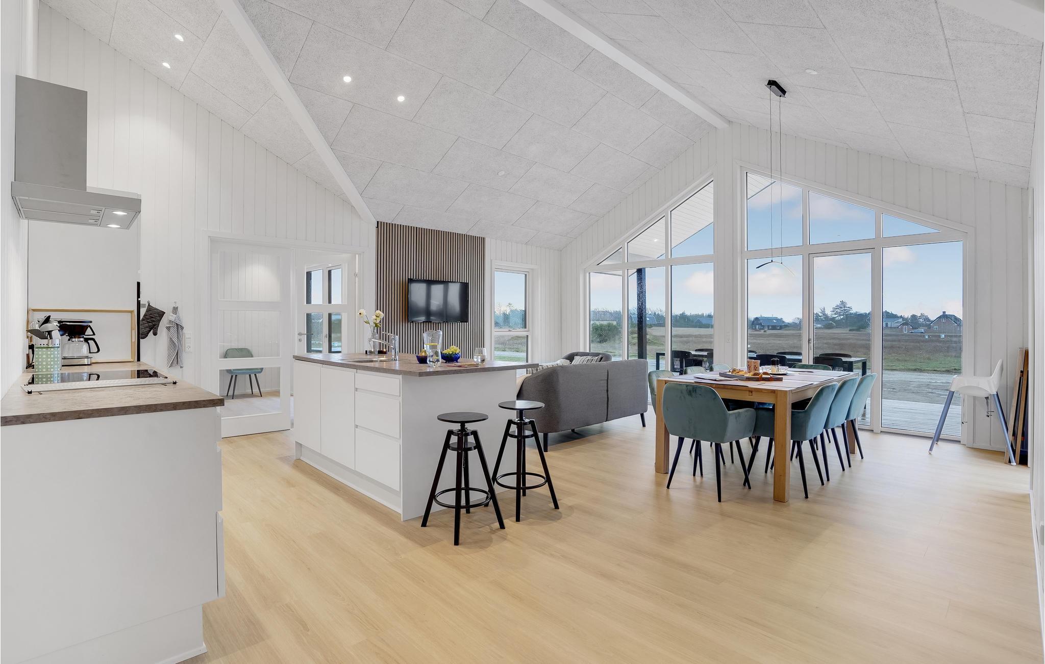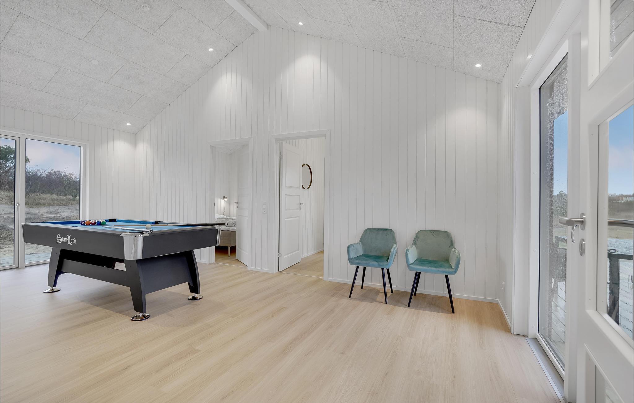 I Ringkøbing Fjords naturskønne omgivelser ligger dette store, moderne feriehus. Boligen er enkel, moderne og stilren med fokus på komfort og velvære. Den rolige farveskala giver ekstra plads til lyset og naturen, som inviteres indenfor gennem de store vinduespartier. Glæd jer til hyggelige stunder, hvor I samles i den store stue eller hygger jer med et spil pool efter en lang dag med udflugter.