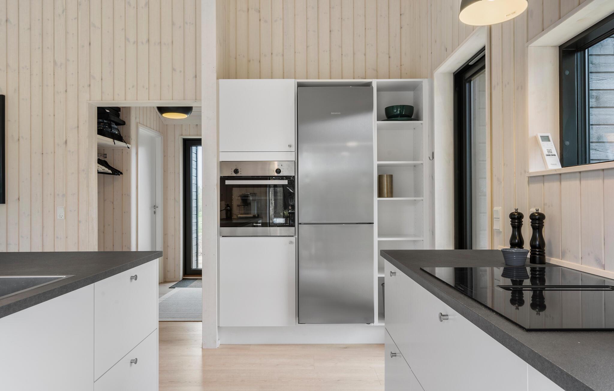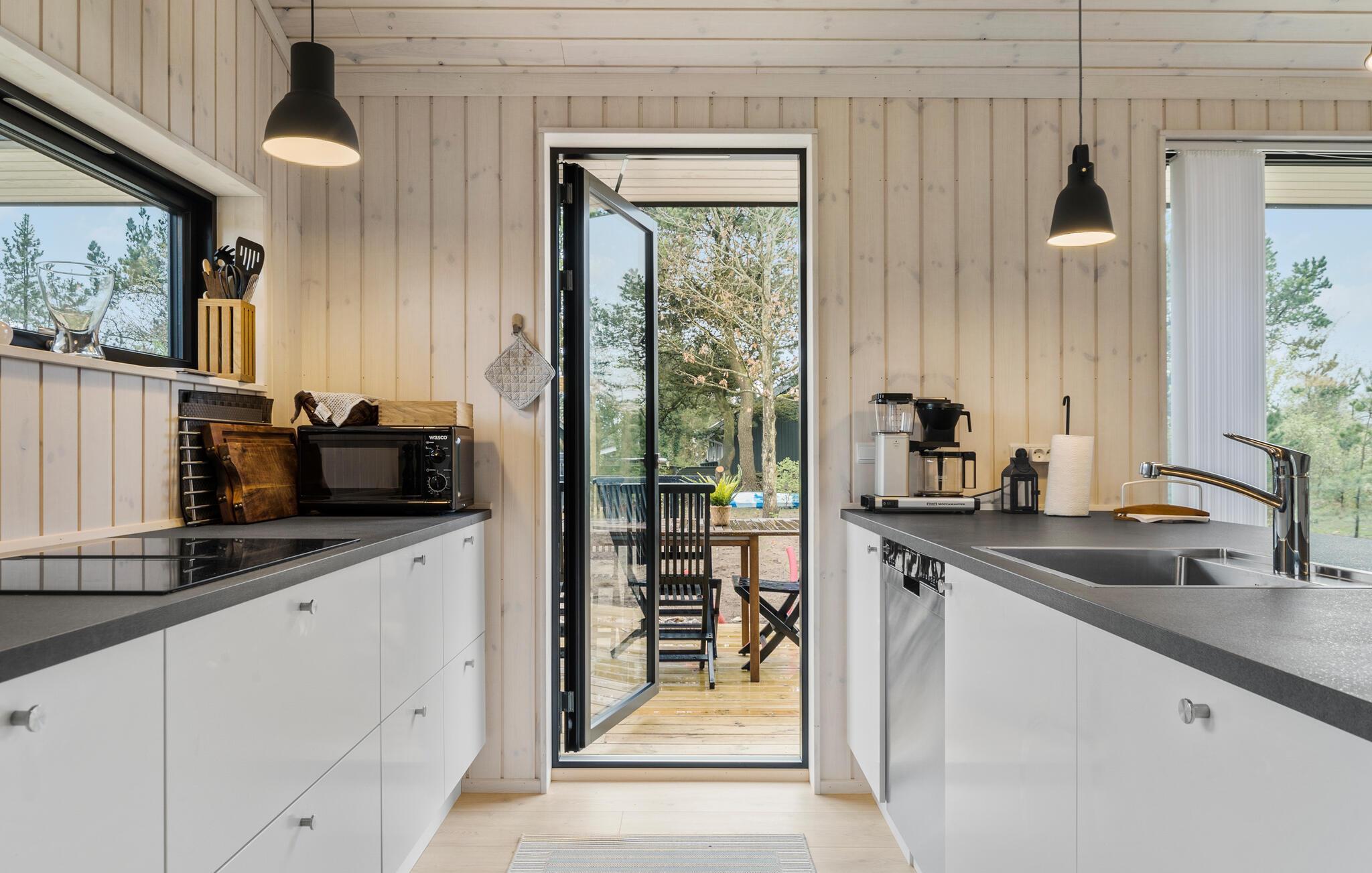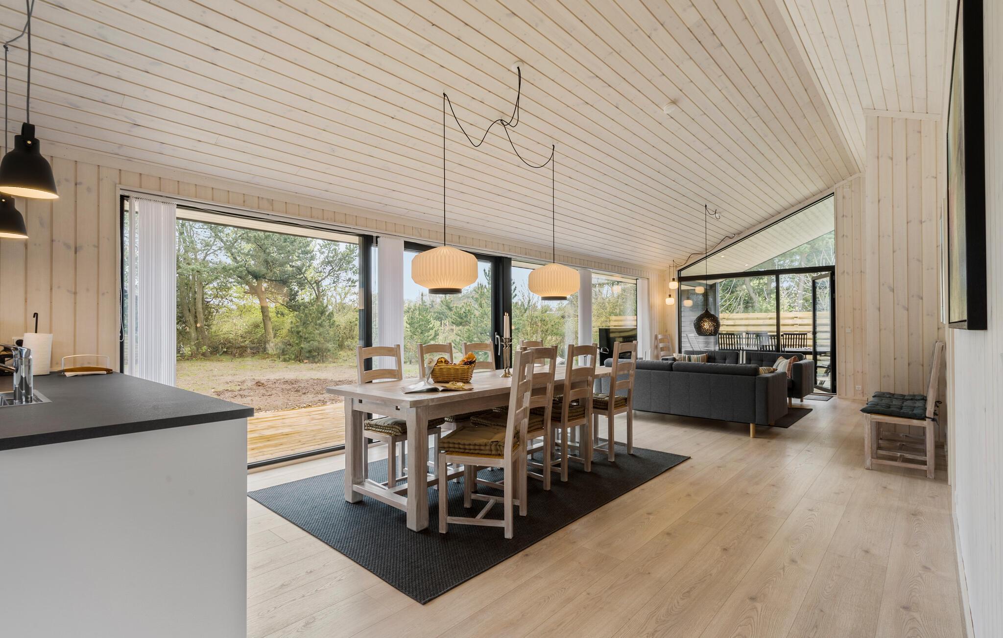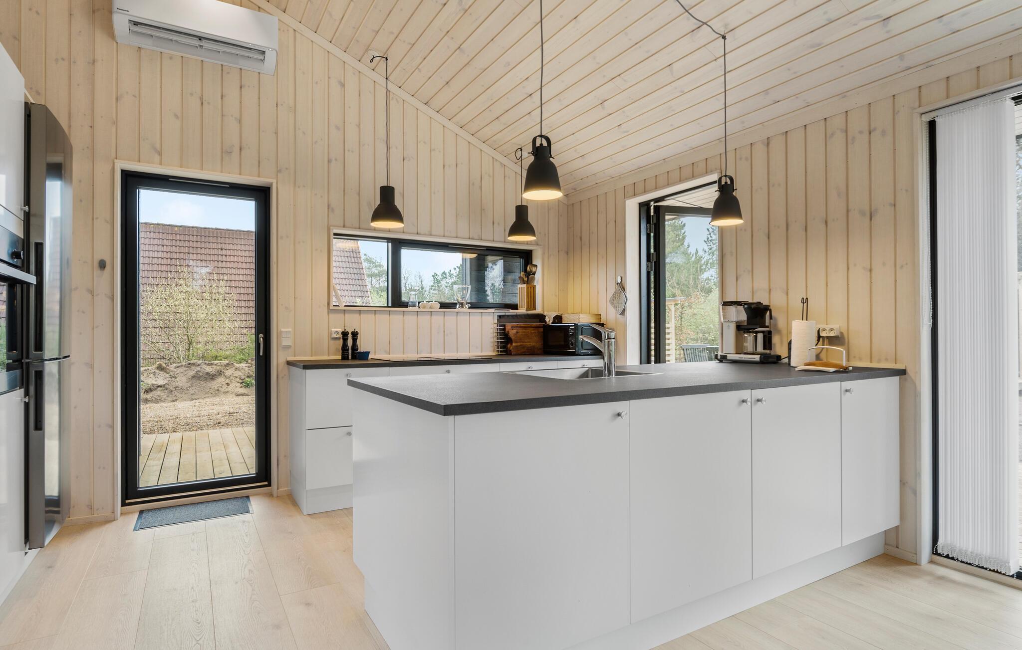 Dette moderne feriehus ligger ikke langt fra den idylliske Ringkøbing Fjord og byder på en dejlig kombination af afslapning og aktiviteter. Find jer godt til rette i det lyse opholdsområde med dets rummelige vinduer og komfortable sæder, ideelt til afslappede læsetimer eller filmaftener sammen. Lav maden sammen i det smukke, åbne køkken og brug det store spisebord til lange måltider eller selskabelige lege.