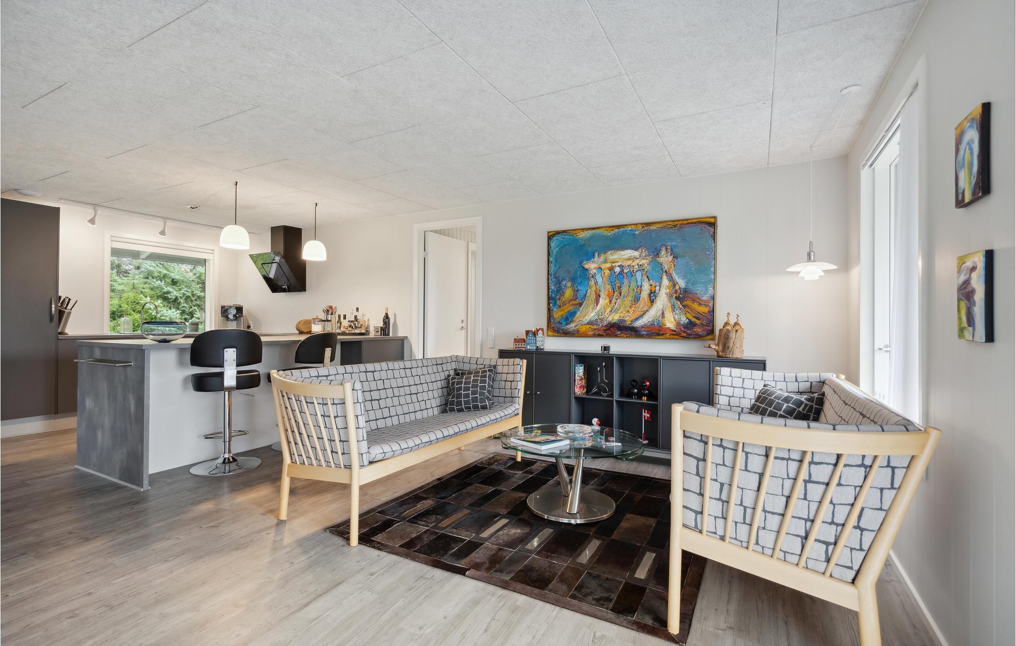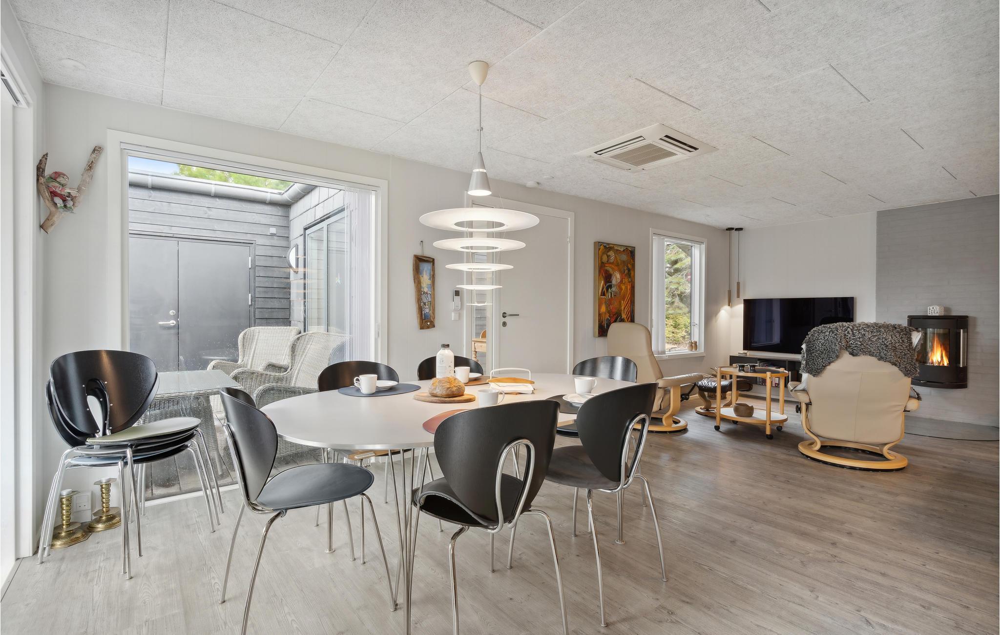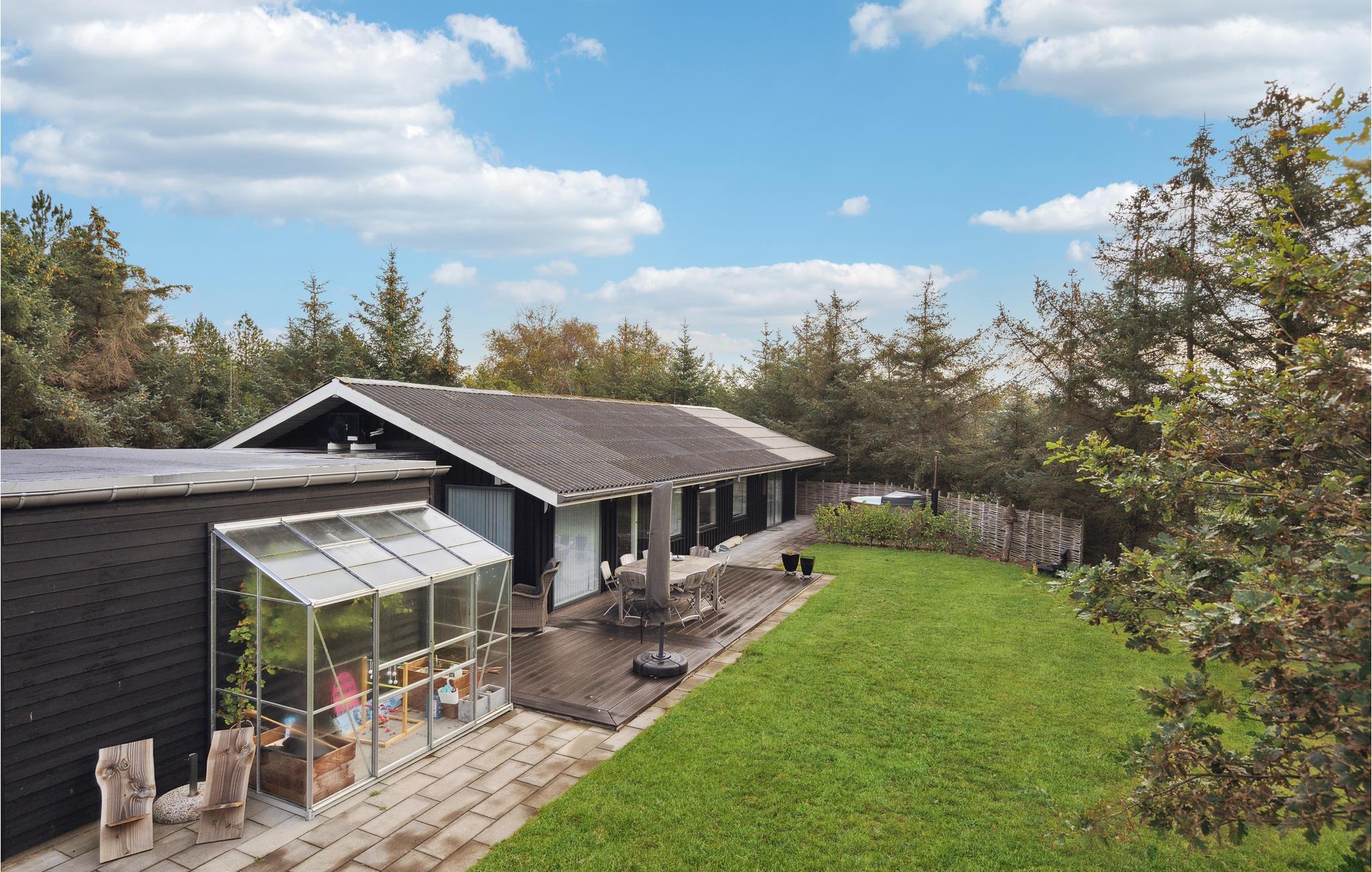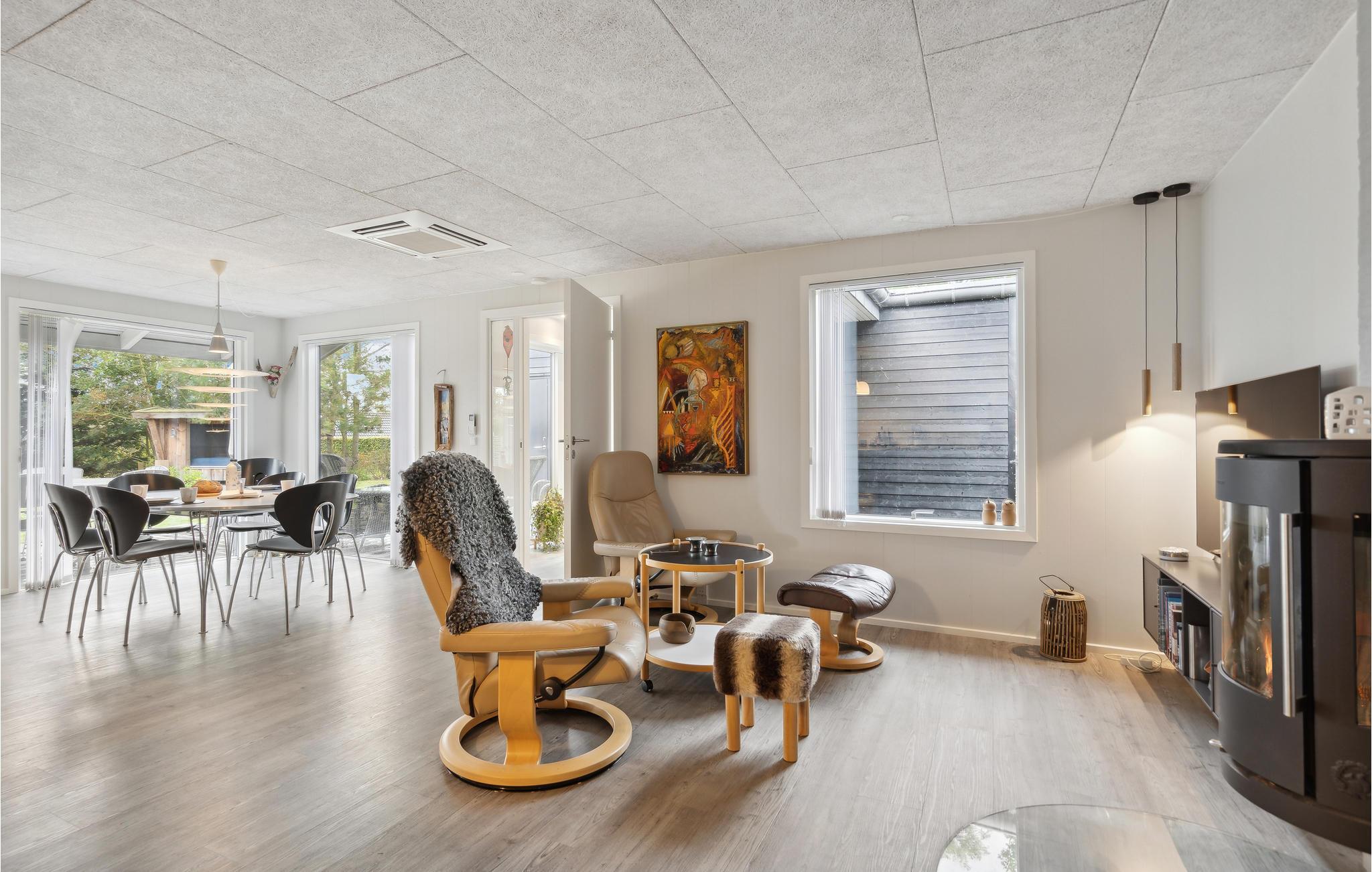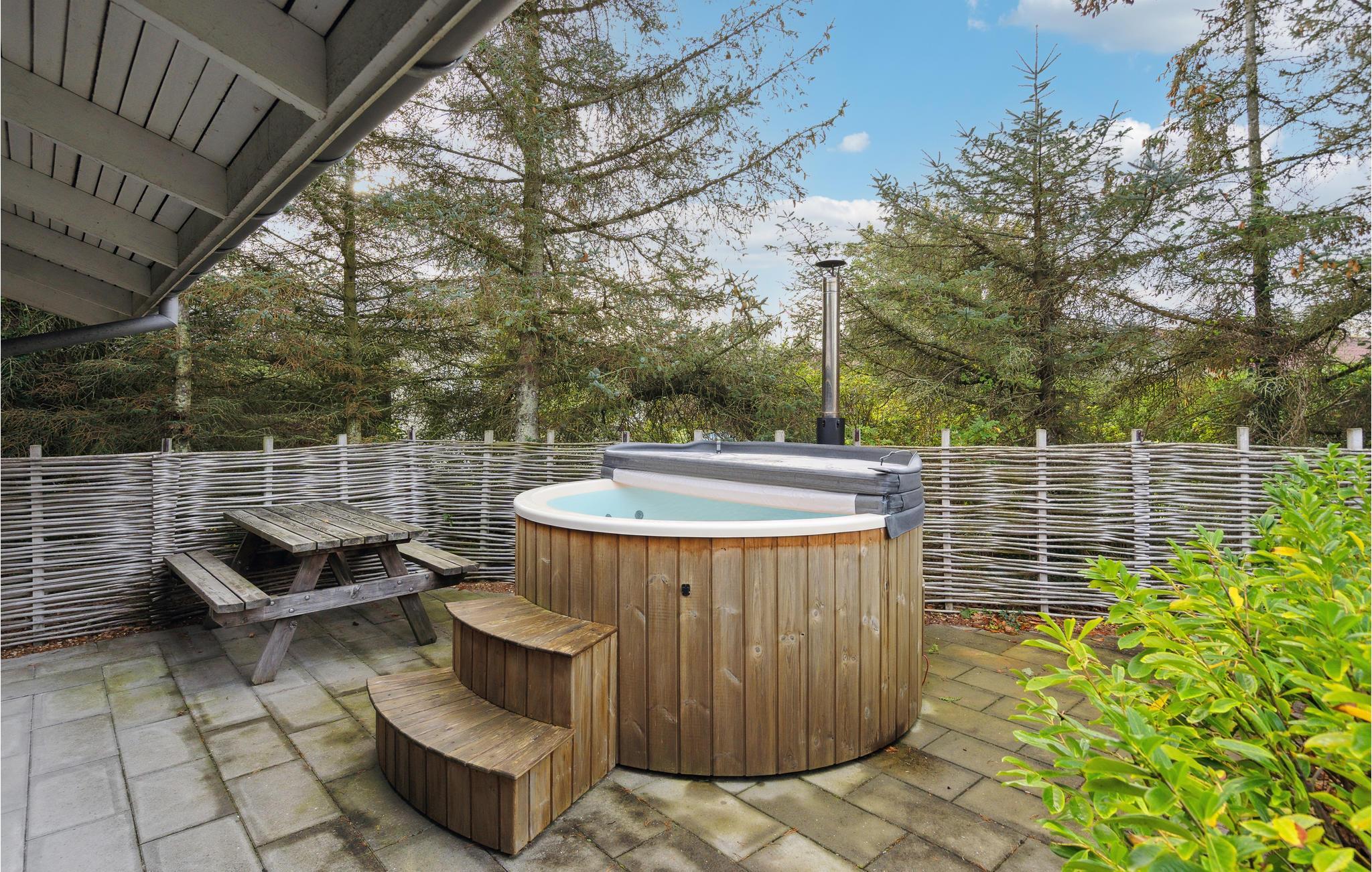 Velkommen til dette stilfulde feriehus med høj komfort og et skønt opholdsrum, der indbyder til samvær med familien. Glæd jer til det store, moderne køkken, som indbyder til at afprøve nye opskrifter og fordybe sig i kulinariske smage. Om aftenen kan I slappe af foran brændovnen med benene oppe og se en spændende film. Nyd en dejlig wellness-stund i vildmarksbadet under stjernerne og slap af i det varme vand. Det ultimative sted for afstresning.