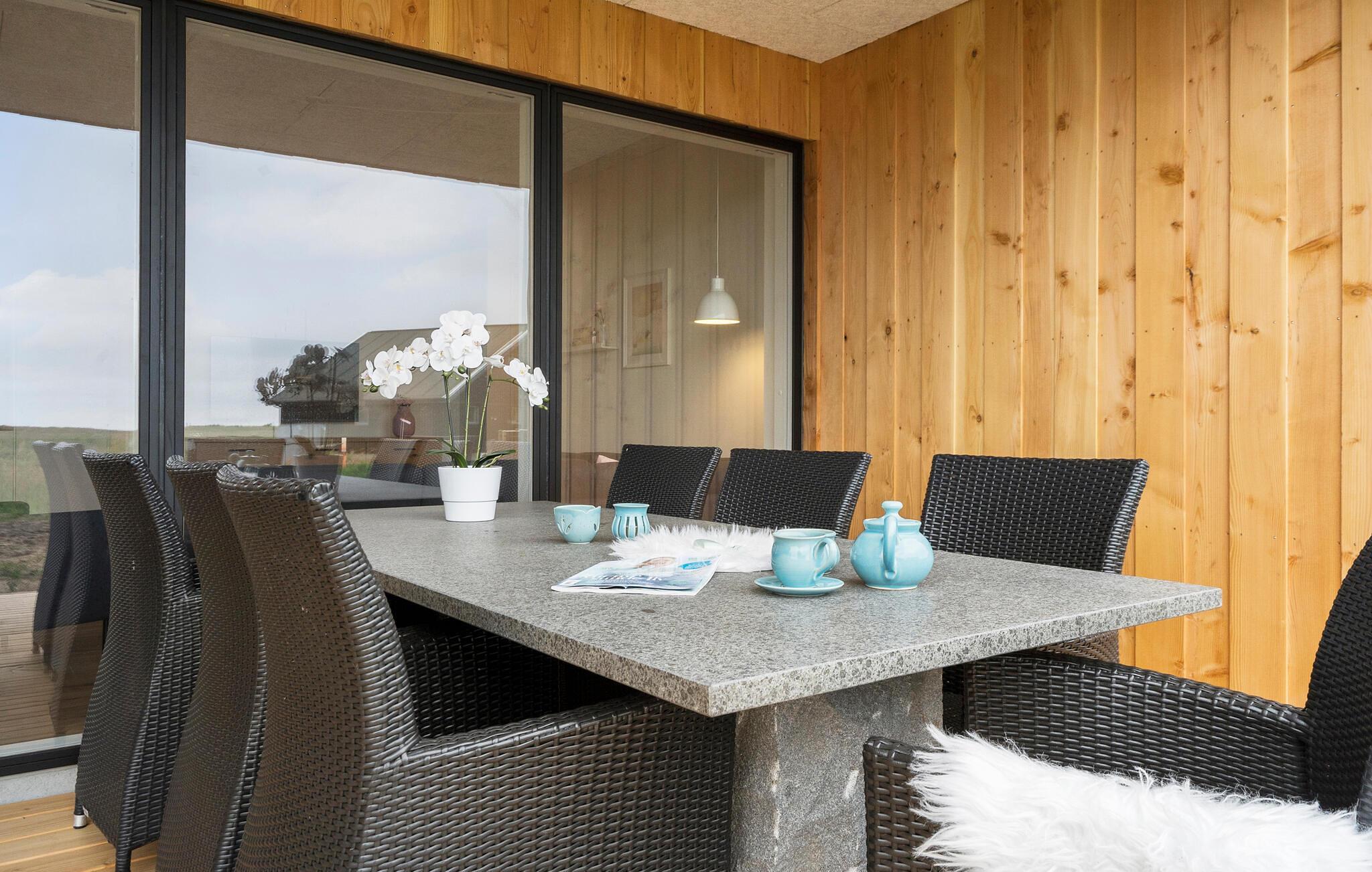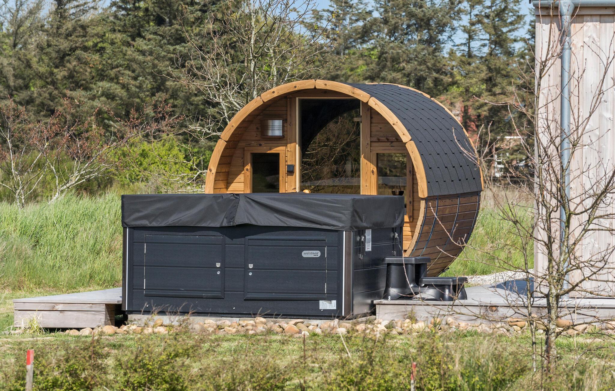 Træd herfra ud på den delvist overdækkede terrasse, og sæt jer til rette i havemøblerne. Slap også af i spabadet, og slut aftenerne af med lækre grillretter, mens I nyder solnedgangen over fjorden.