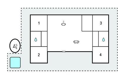 Badeværelse (nr. 2) - WC. Varmt og koldt vand. Bruser