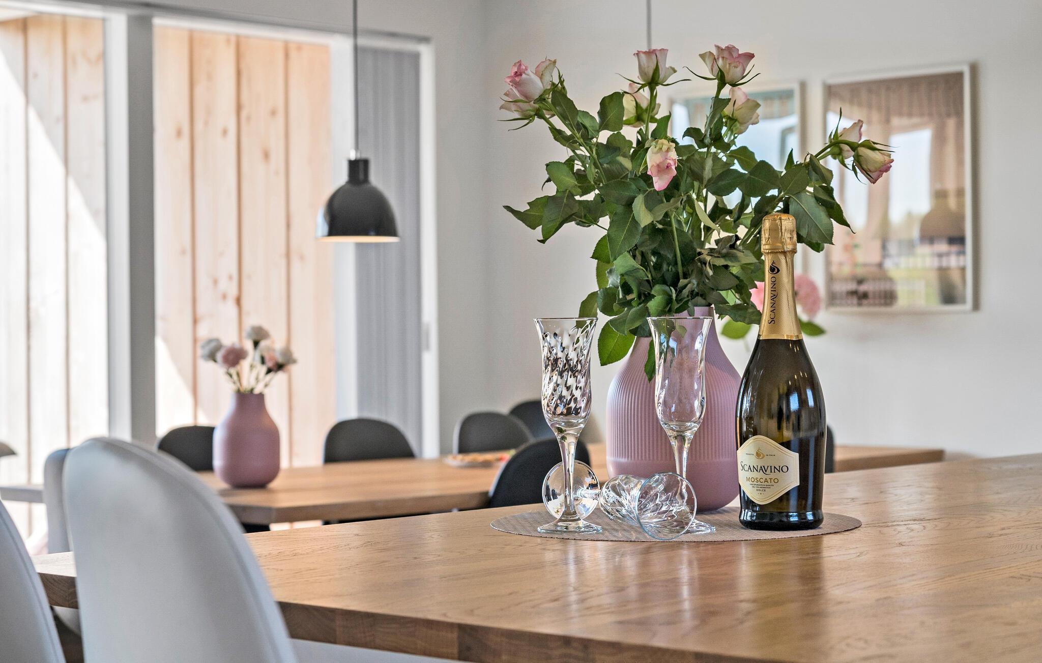 Forkæl jer selv med en afslappende pause fra hverdagen sammen med familien eller venner i dette moderne og venlige hus. Gennem gulv-til-loft vinduerne strømmer dagslyset ind i huset og skaber en hjemlig atmosfære sammen med de smukke møbler. Den dejlige brændeovn er prikken over i’et. Brug det åbne opholdsrum med det rummelige og meget veludstyrede køkken samt spise- og opholdsområdet med fjordudsigt til at slappe af og til hyggeligt samvær.