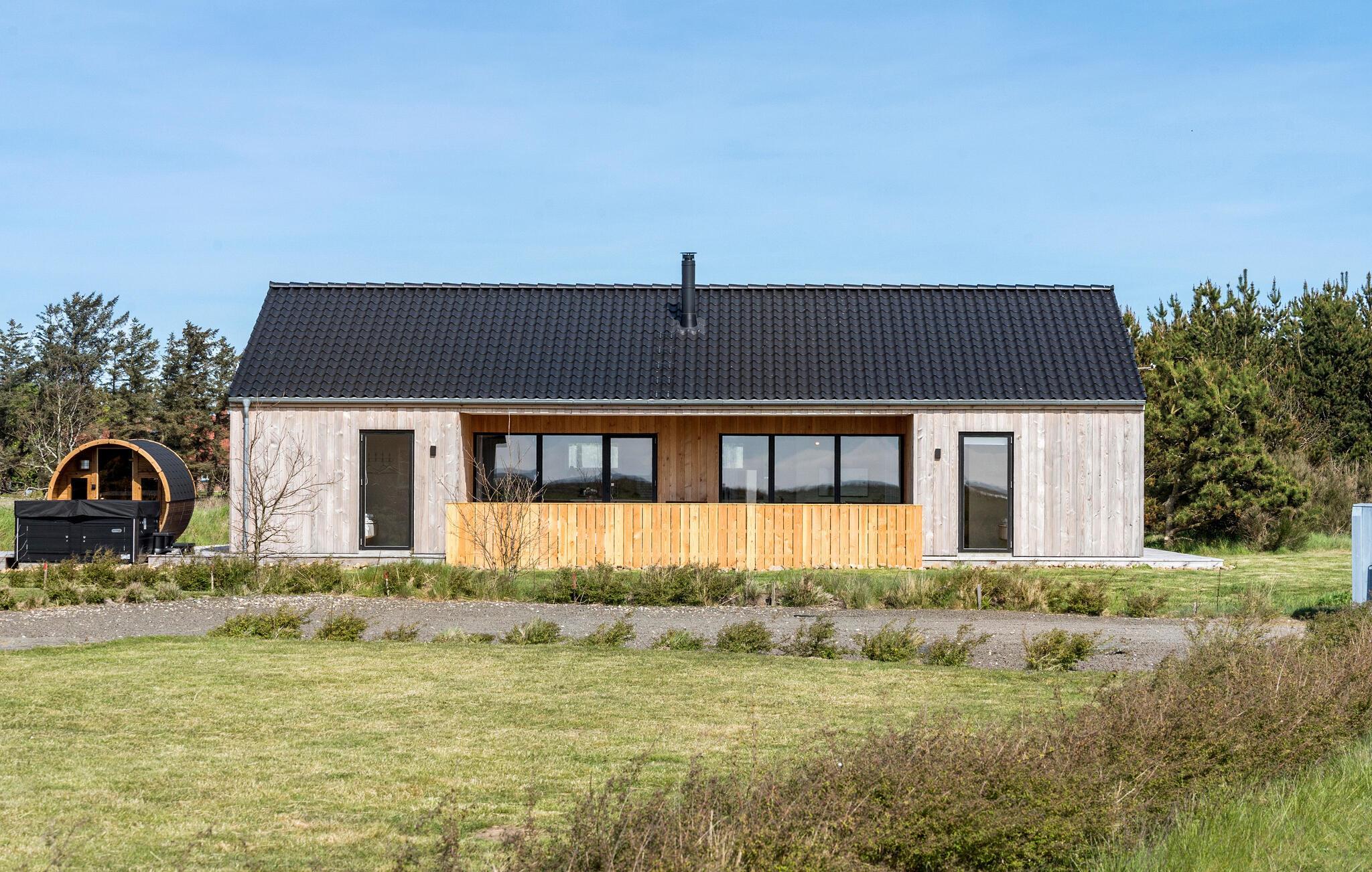 Velkommen til dette moderne feriehus med spabad og udsigt over fjorden.