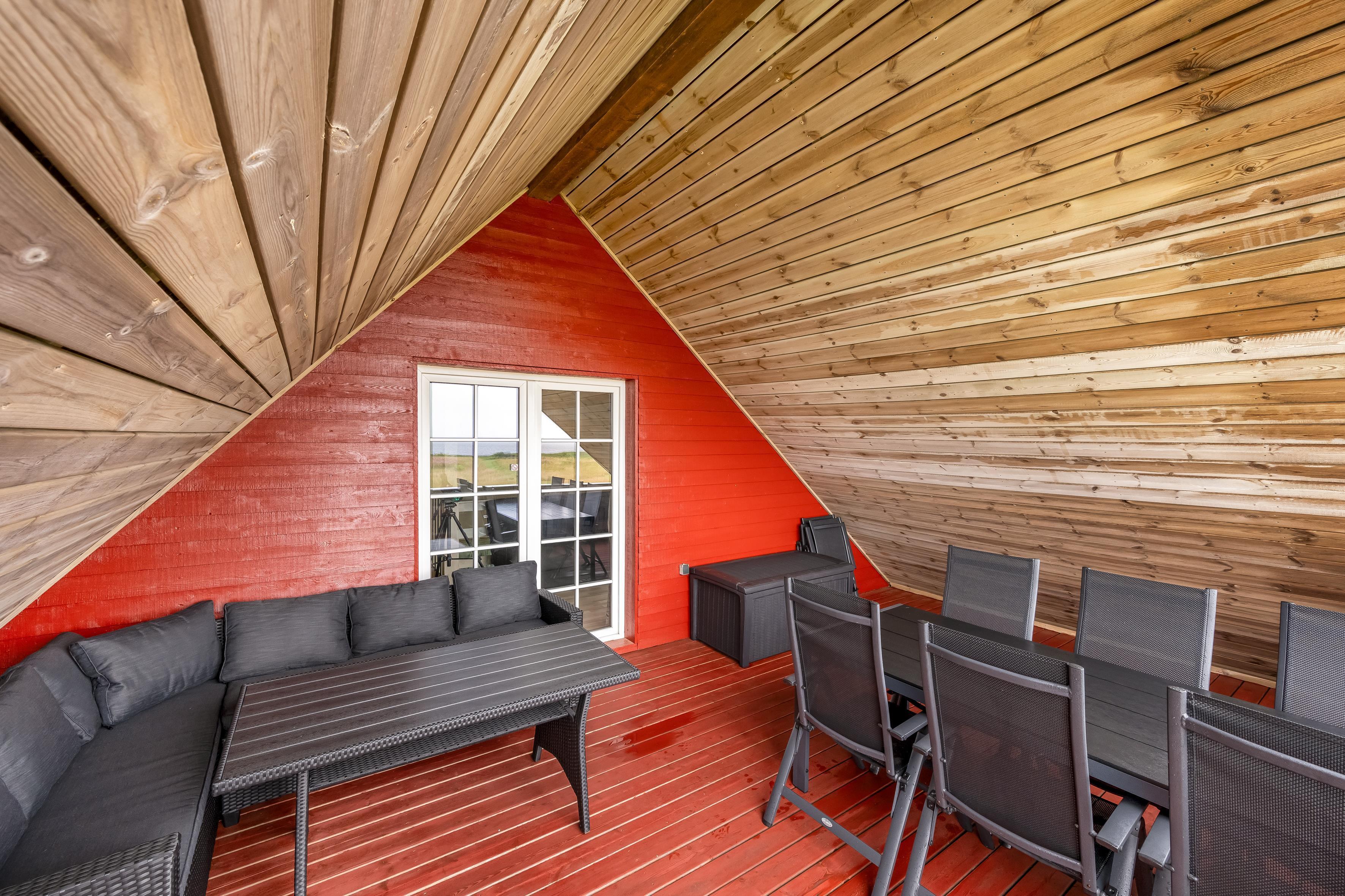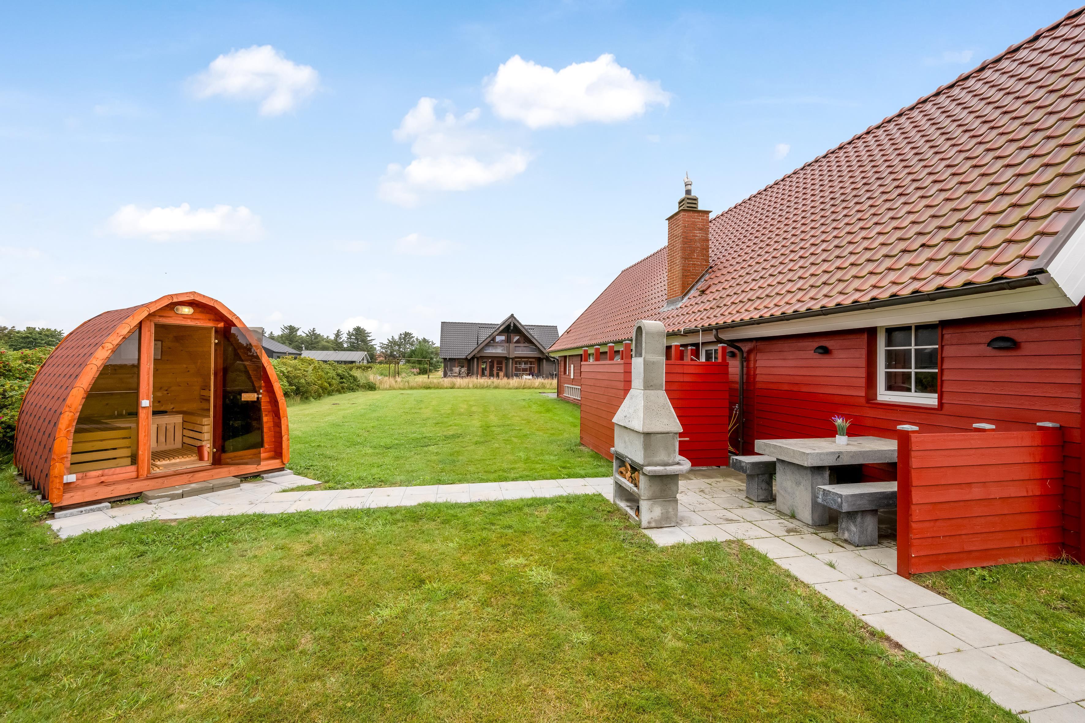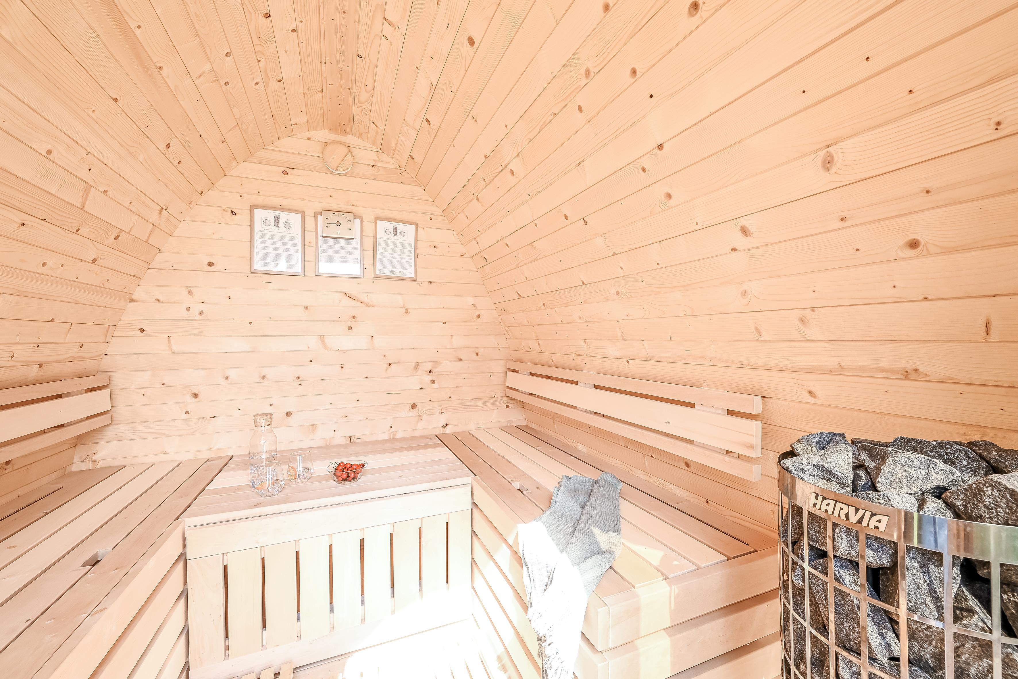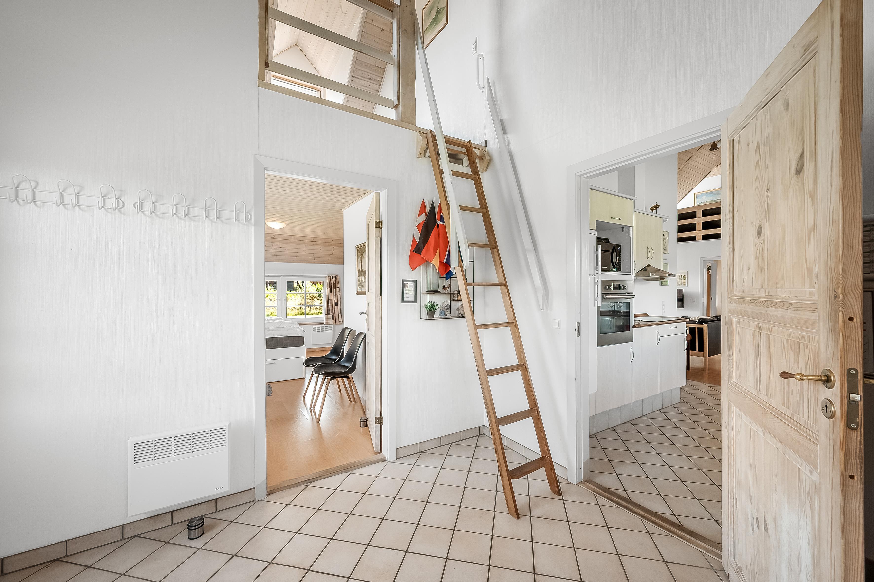 Udendørsområdet er lige så imponerende som indendørs. Den overdækkede balkon giver mulighed for at nyde de lange sommeraftener, mens du griller og beundrer udsigten. På grunden ud mod fjorden, finder du også en udesauna og et vildmarksbad, der kan rumme op til 6 personer – perfekt til afslapning efter en dag med aktiviteter. Udebruseren er en dejlig tilføjelse, når du kommer hjem fra en vandretur ved fjorden, som ligger blot 100 meter væk.
