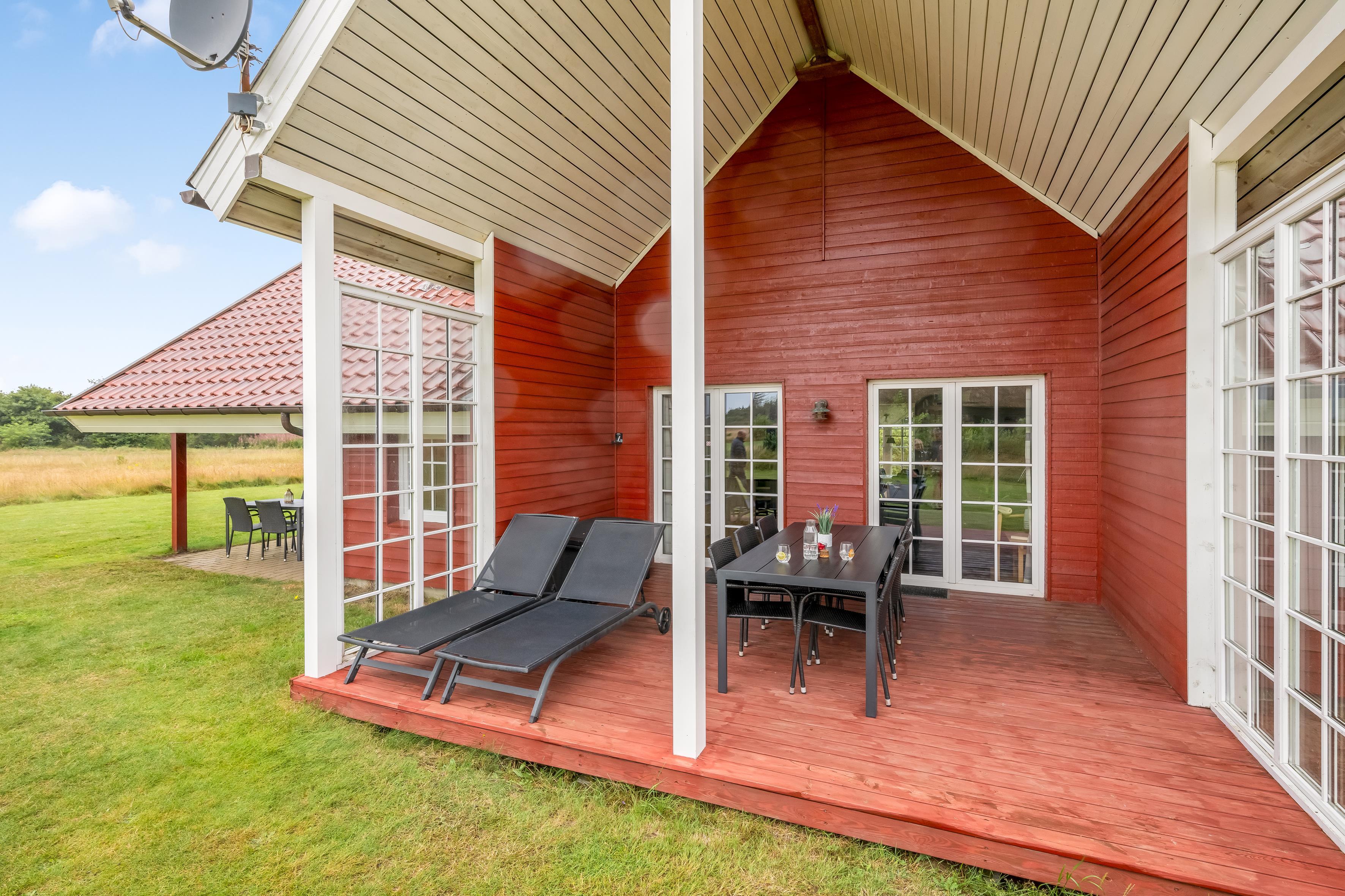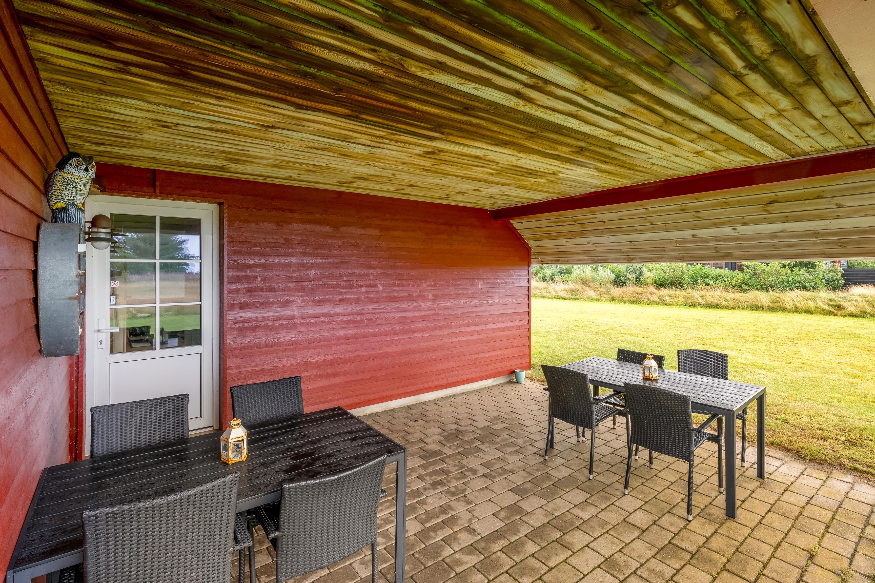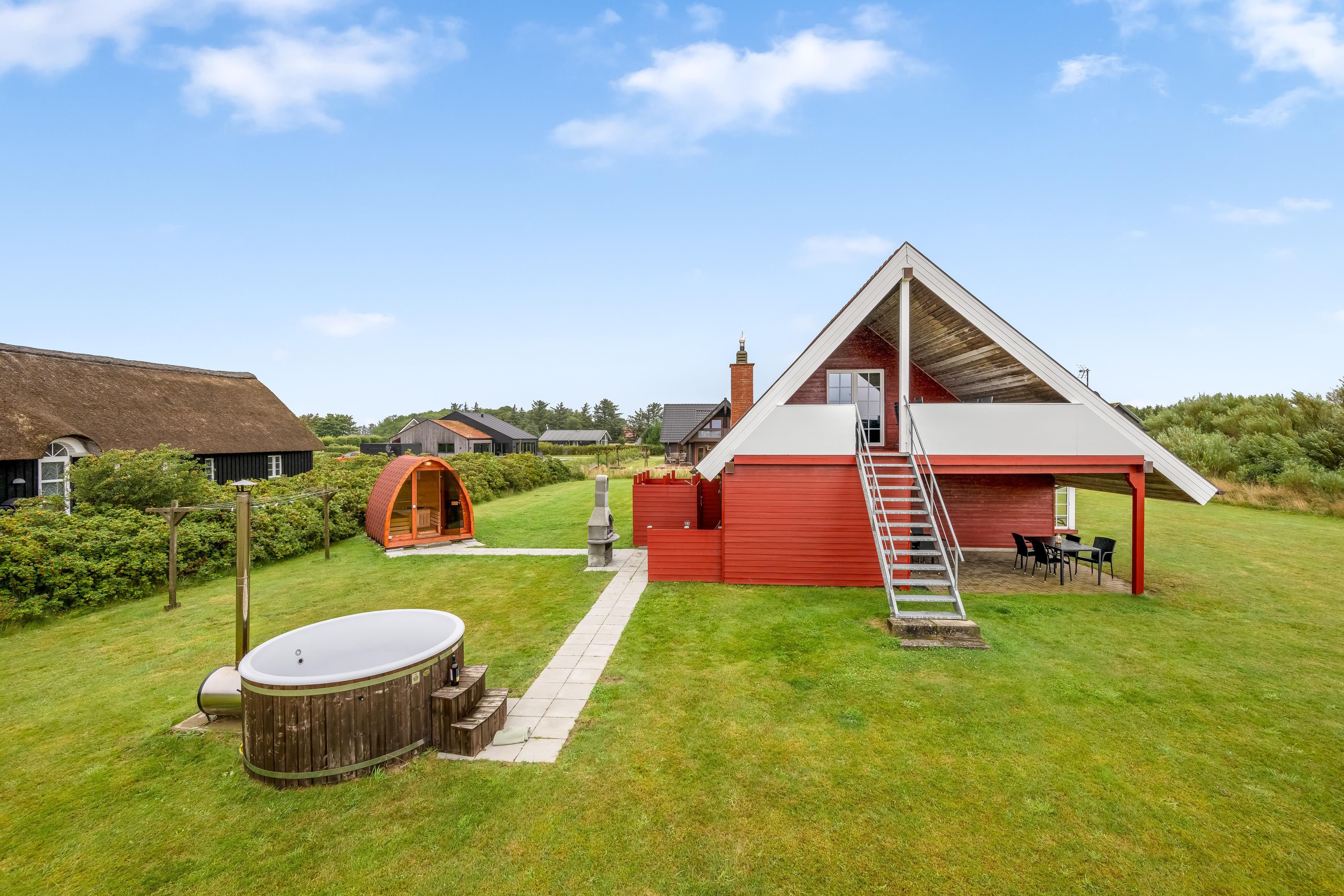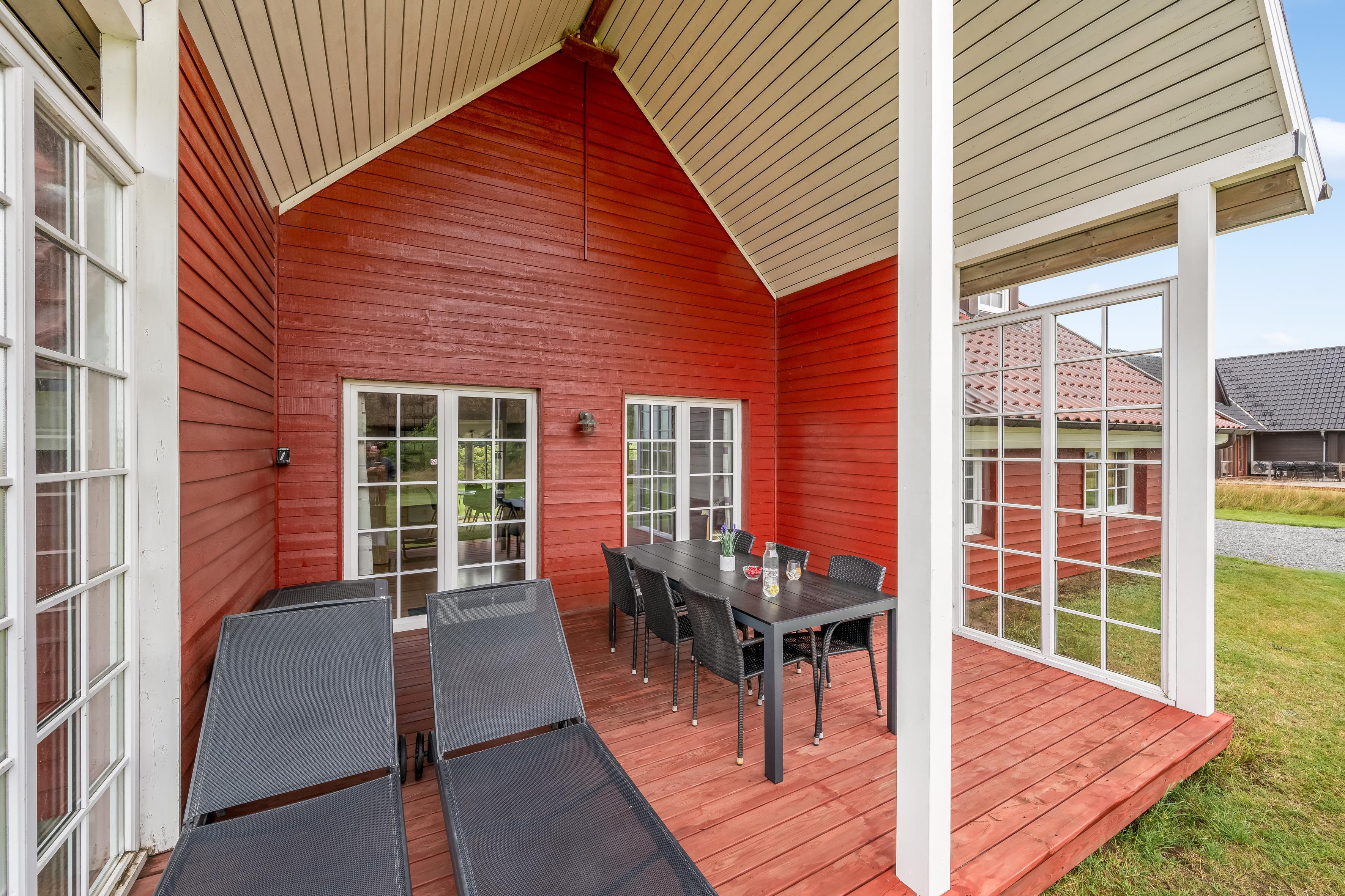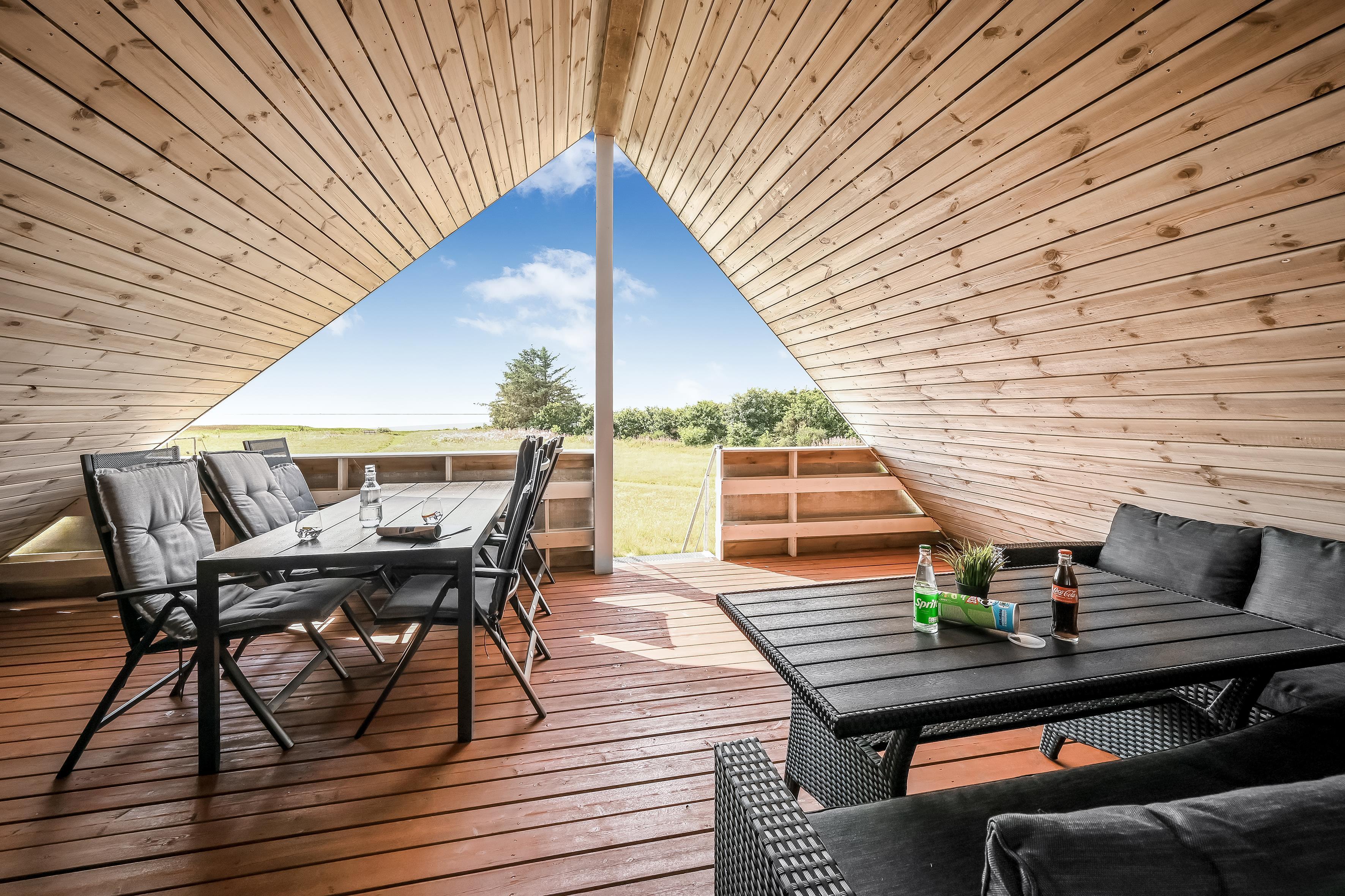 Udendørsområdet er lige så imponerende som indendørs. Den overdækkede balkon giver mulighed for at nyde de lange sommeraftener, mens du griller og beundrer udsigten. På grunden ud mod fjorden, finder du også en udesauna og et vildmarksbad, der kan rumme op til 6 personer – perfekt til afslapning efter en dag med aktiviteter. Udebruseren er en dejlig tilføjelse, når du kommer hjem fra en vandretur ved fjorden, som ligger blot 100 meter væk.