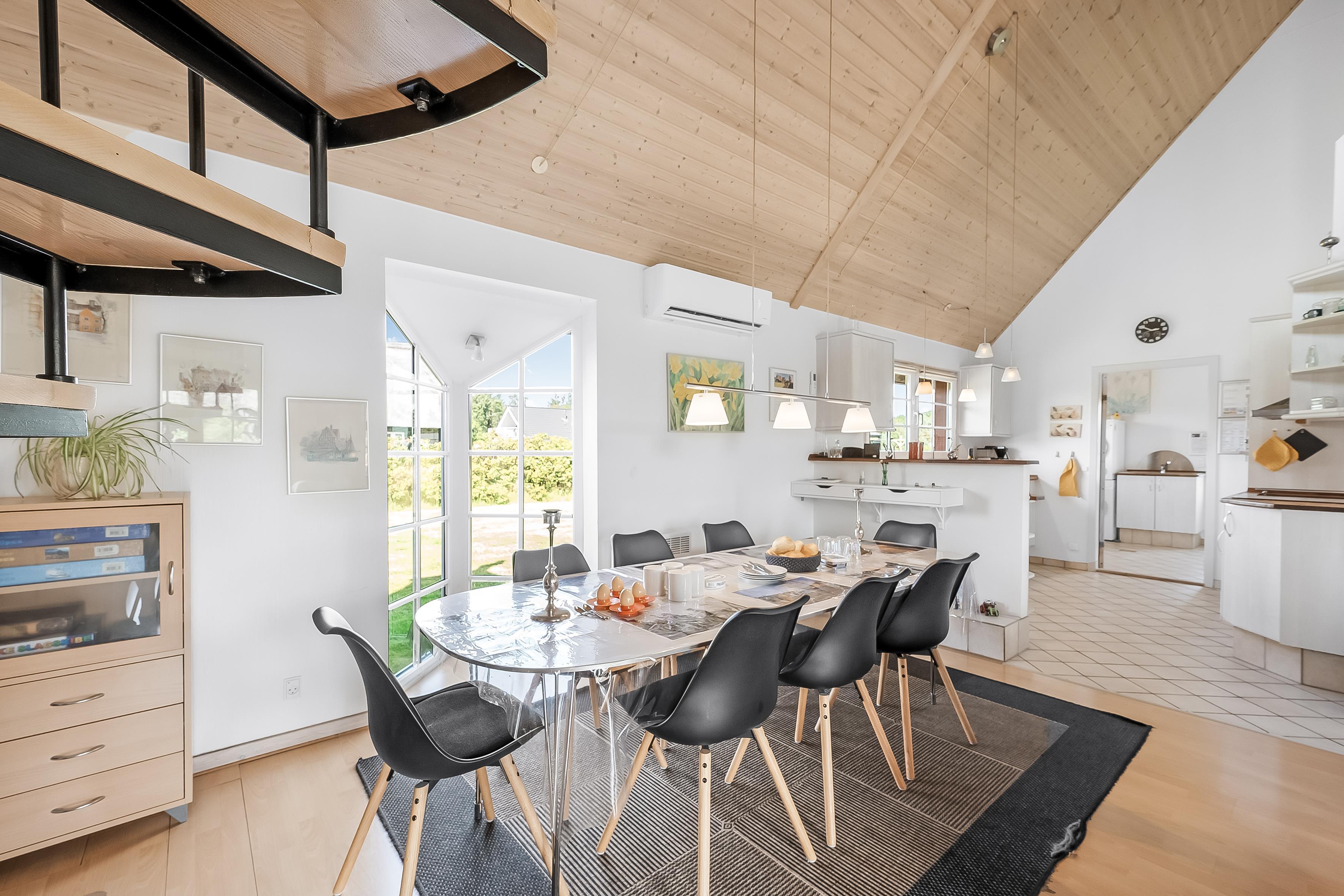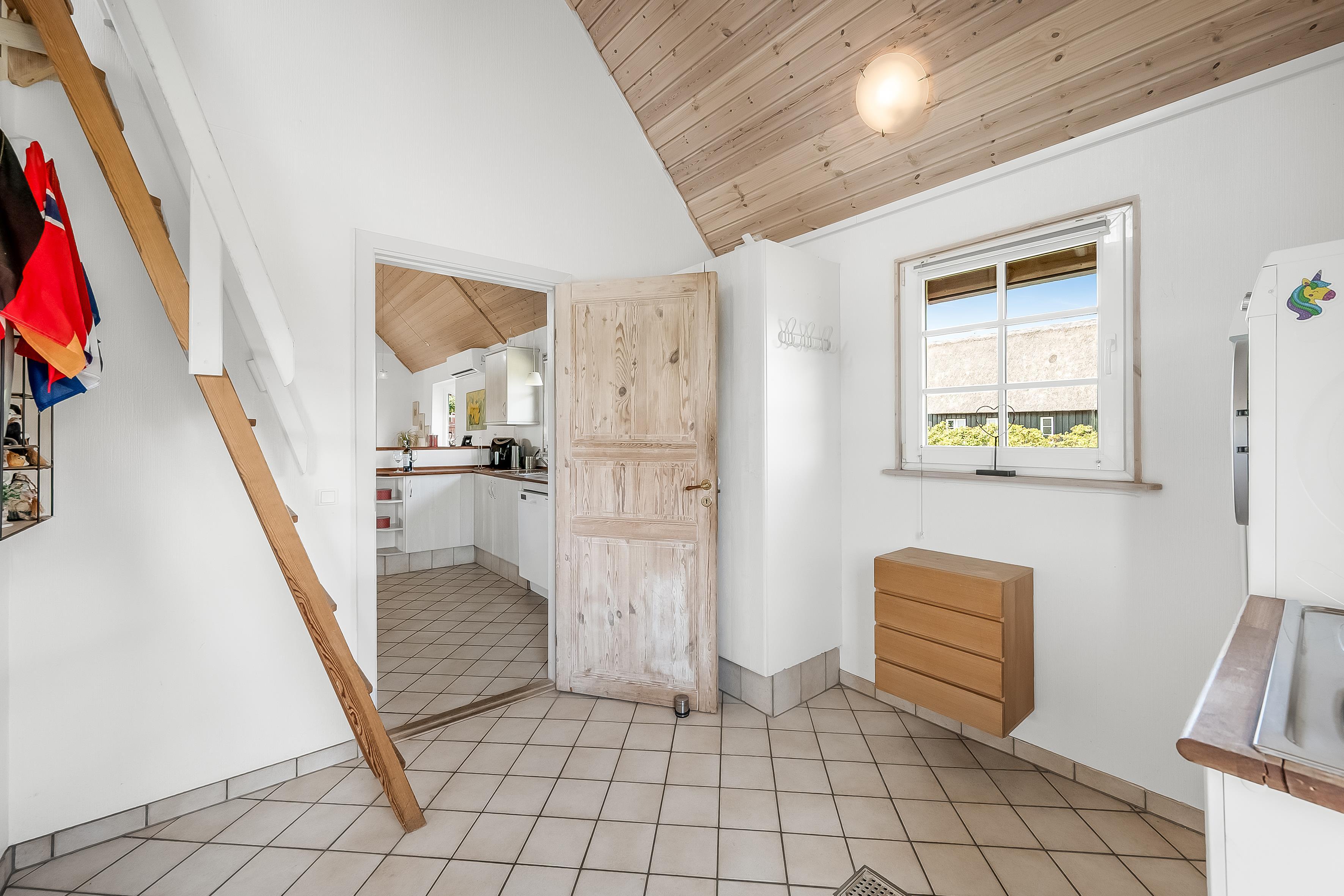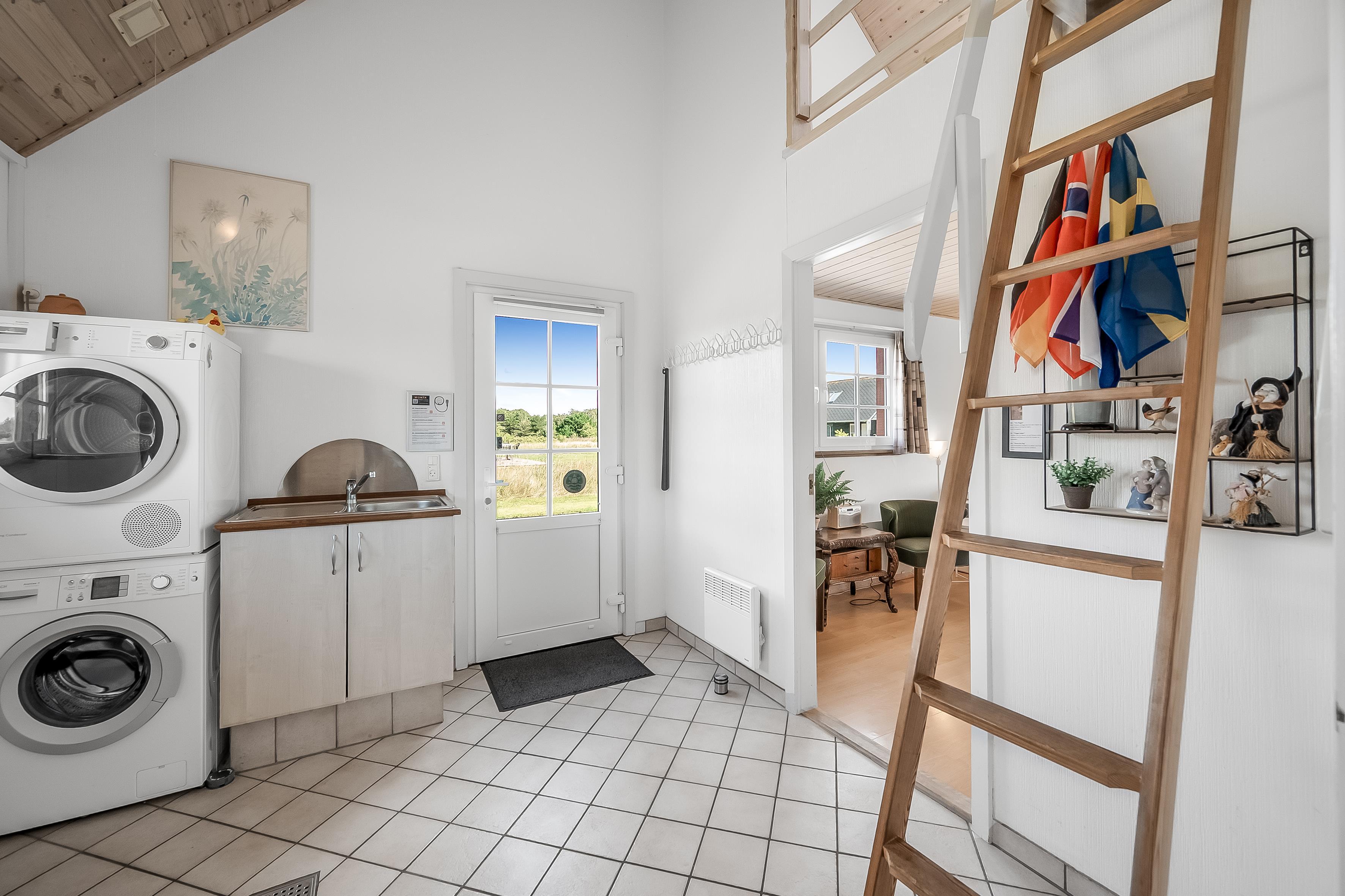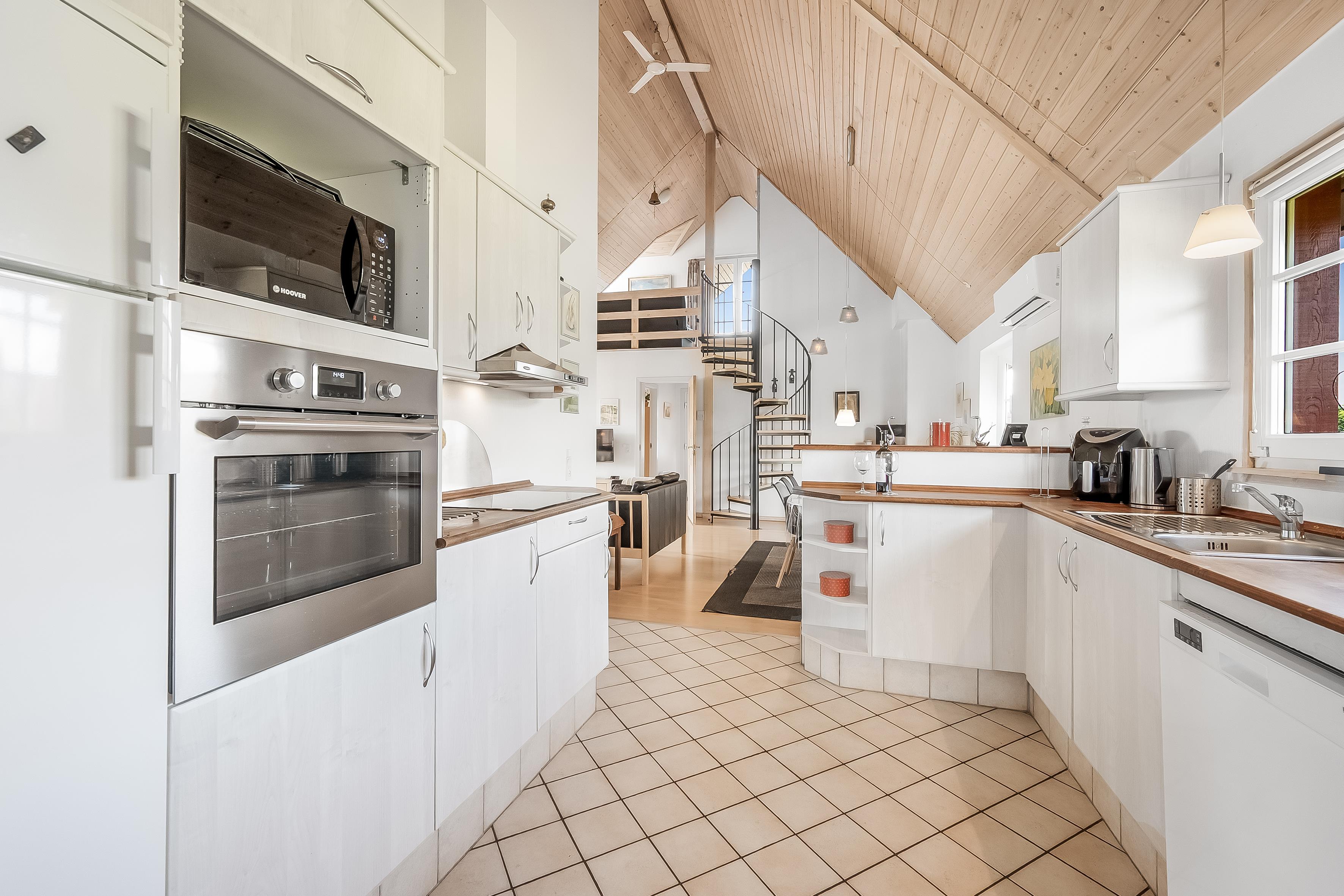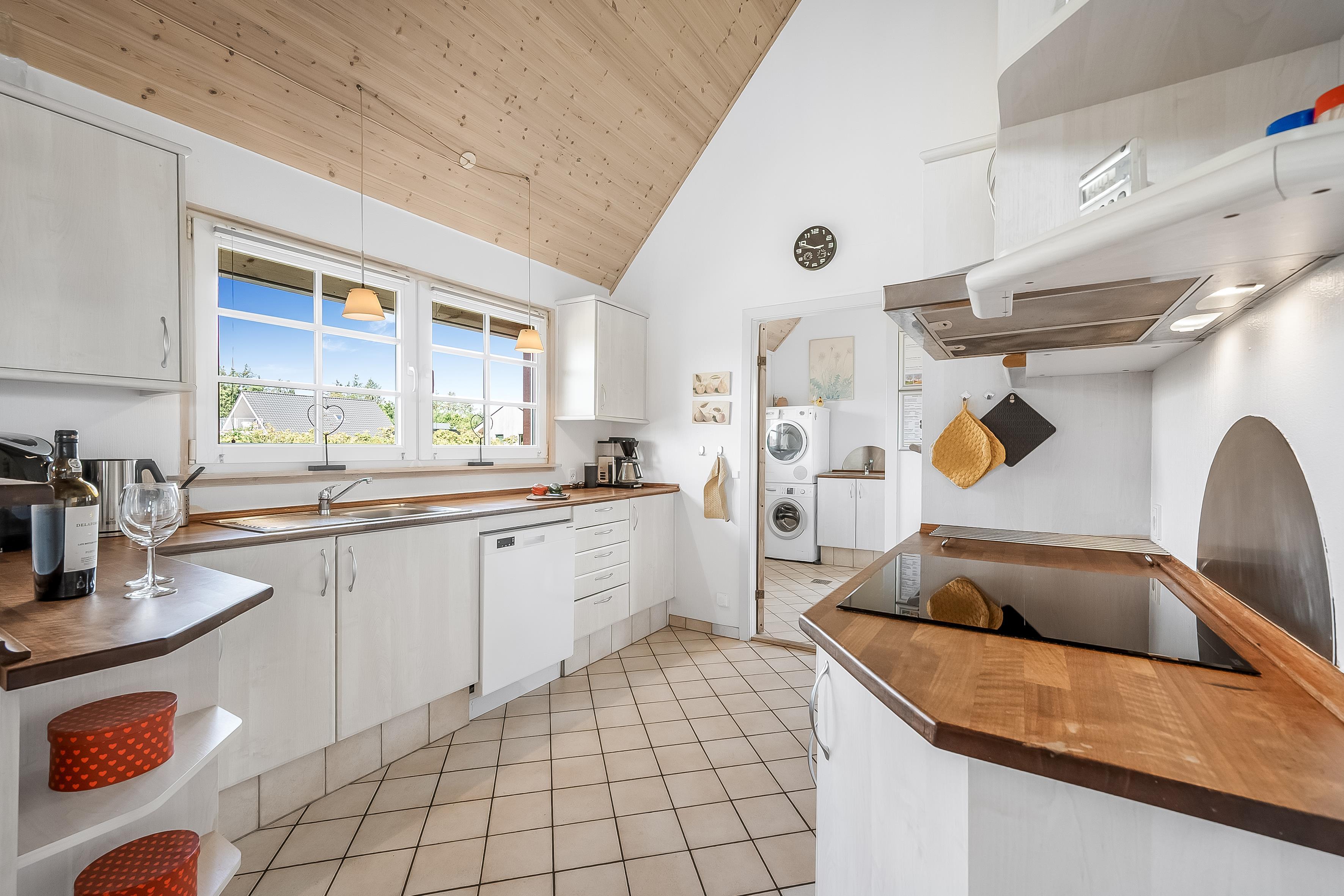 Køkkenet er moderne og veludstyret med et induktionskomfur, ovn, mikrobølgeovn, opvaskemaskine, køleskab og fryser med plads til 40 liter. Her er alt, hvad du behøver for at tilberede lækre måltider. Der er også en tørretumbler og vaskemaskine, så du nemt kan klare vasketøjet under dit ophold.