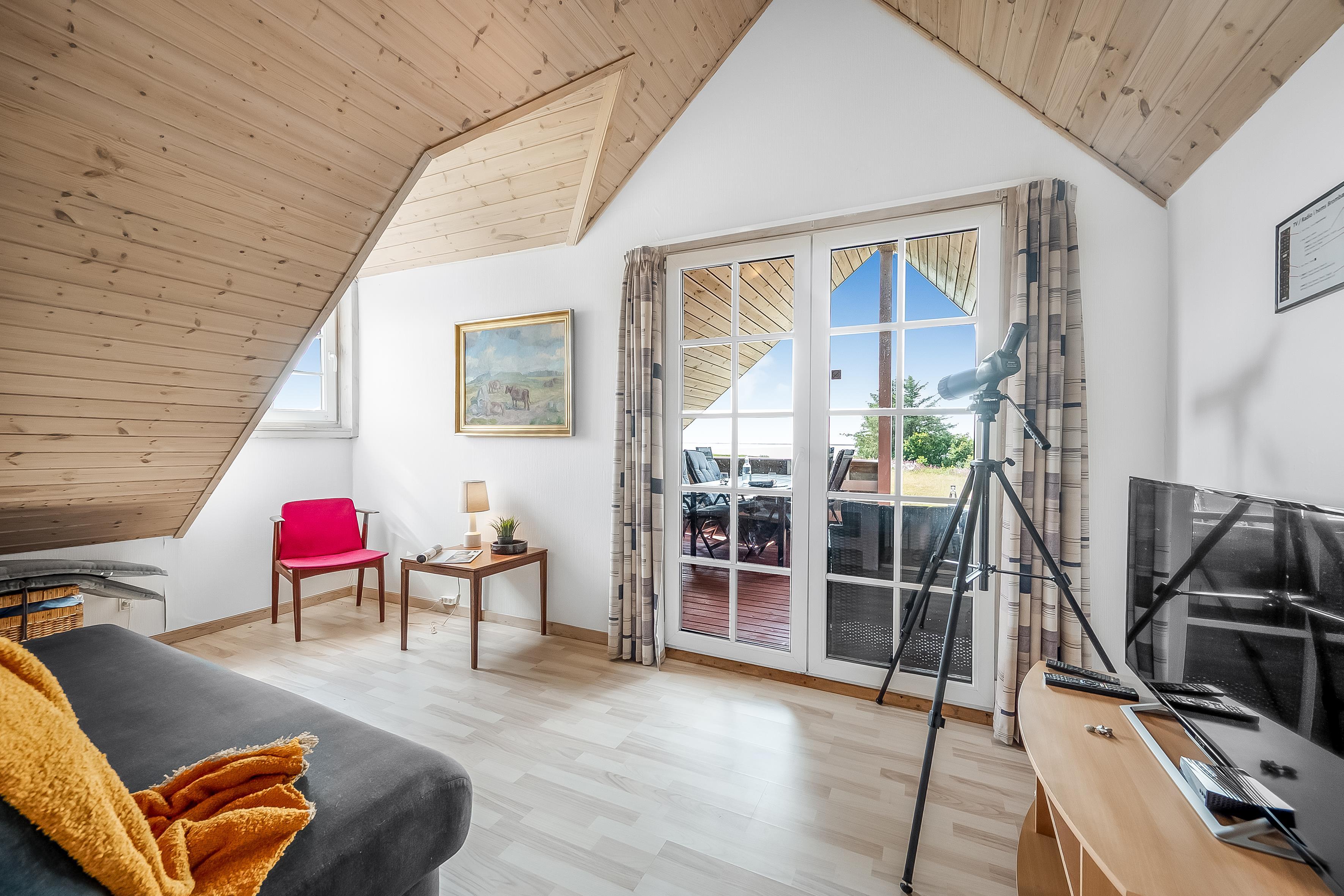 Når du træder ind i huset, vil du blive mødt af en lys og indbydende atmosfære. Stuen er udstyret med en brændeovn, som skaber en hyggelig stemning på kølige aftener. I feriehuset finder du også to fjernsyn, så du kan nyde både dansk og tysk tv, samt en DVD-afspiller og en Chromecast til underholdning. Det trådløse internet sikrer, at du altid kan være online, hvis du ønsker det.