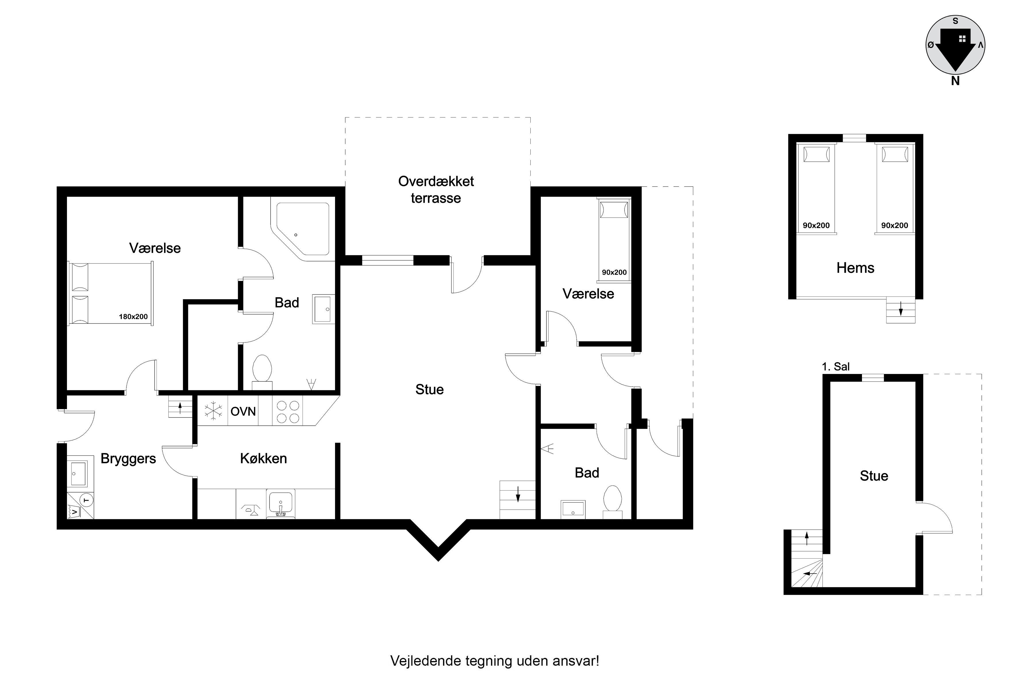 Boligen har tre soveværelser, hvoraf det første og andet har dobbeltsenge, mens det tredje har to enkeltsenge. Dette gør det ideelt for familier eller grupper, der ønsker at dele opholdet. Der er også en barneseng og barnestol til rådighed, så de mindste gæster er godt taget hånd om.
