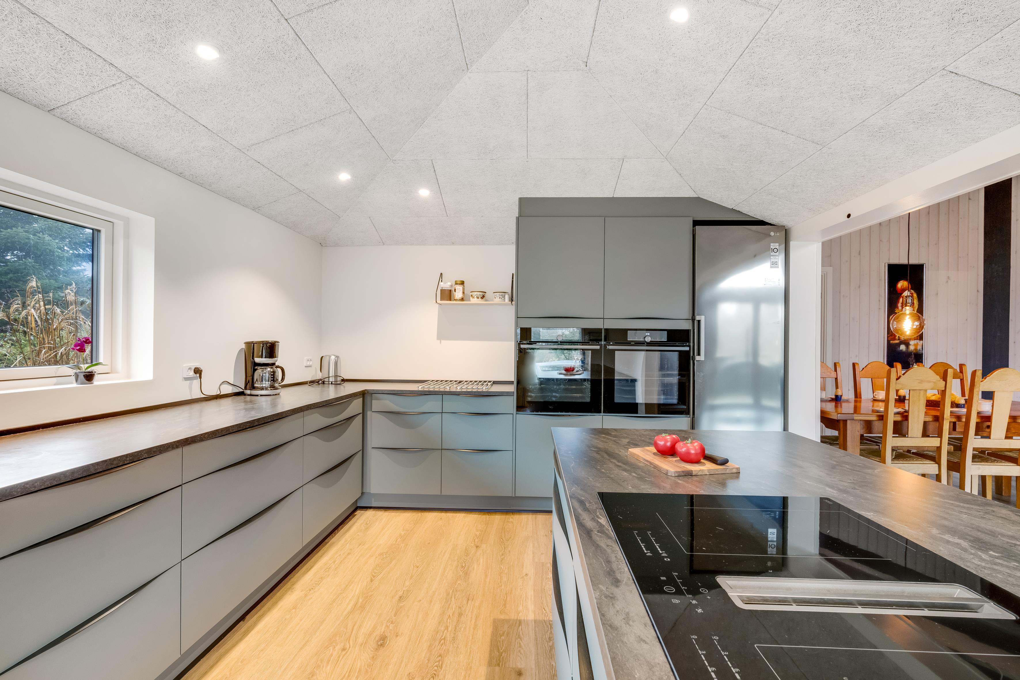 Det moderne køkken er udstyret med alle nødvendige apparater, herunder induktionskomfur, ovn, opvaskemaskine, mikrobølgeovn og en kaffemaskine, der gør det let at forberede lækre måltider. Der er også en fryser med en kapacitet på 100 liter, så der er rigeligt med plads til opbevaring. Det funktionelle badeværelse har toilet, bruser og gulvvarme, som sikrer en behagelig oplevelse, selv på de kolde dage.