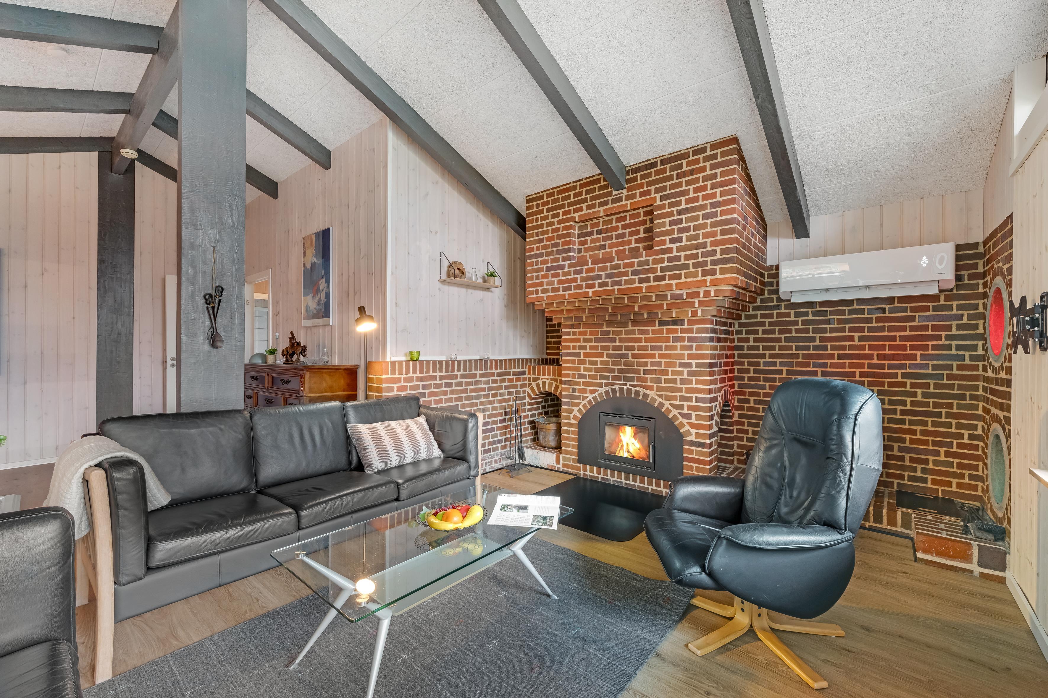 Husets areal på 122 kvadratmeter er optimalt indrettet til at rumme op til seks personer, med tre velindrettede soveværelser, hver med dobbeltsenge. Her er der plads til at slappe af efter en lang dag, og de komfortable senge sikrer en god nattesøvn. I stuen kan I nyde samværet, mens I ser tv eller nyder varmen fra brændeovnen, der skaber en hyggelig atmosfære på kolde aftener. Huset er udstyret med trådløst internet og har også en radio, så I kan lytte til jeres yndlingsmusik.