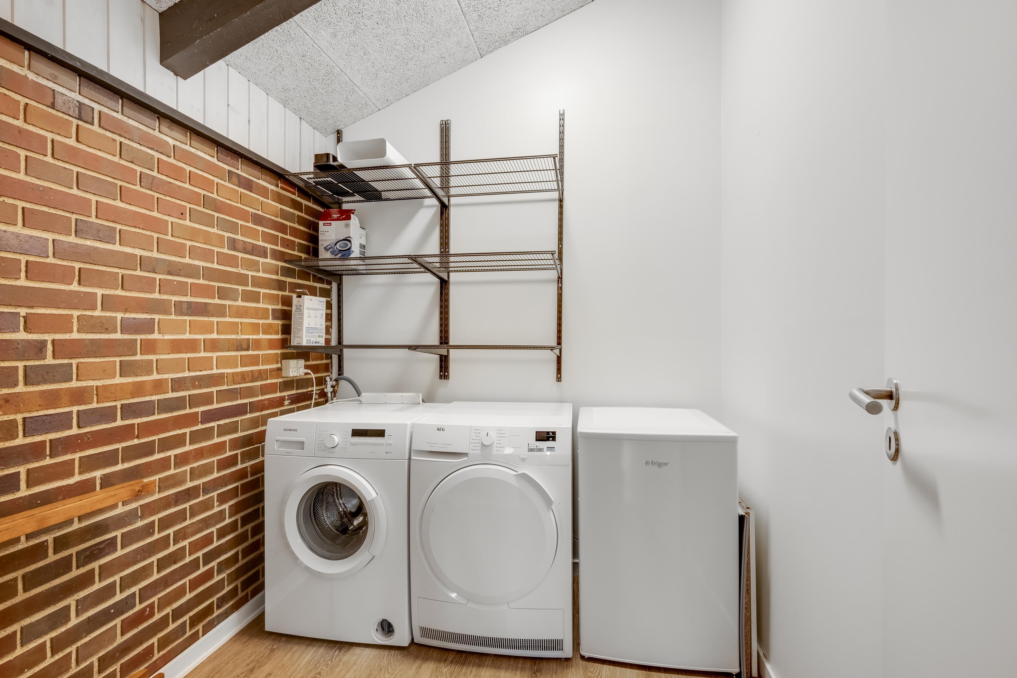 Huset er udstyret med en energibesparende varmepumpe, der også kan fungere som aircondition, hvilket sikrer et behageligt indeklima hele året rundt. Der er også en vaskemaskine og tørretumbler tilgængelig, hvilket gør det nemt at holde tøj og sengetøj friskt under opholdet. Med et fjernsyn, der tilbyder både dansk og tysk tv, kan I holde jer underholdt efter en lang dag med aktiviteter.