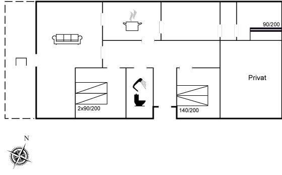 Der er i alt 3 soveværelser. Sovepladserne fordeler sig på: 2 sovepladser i dobbeltseng. 2 sovepladser i enkeltsenge. 2 sovepladser i køjeseng. Derudover er der 1 stk. barneseng.