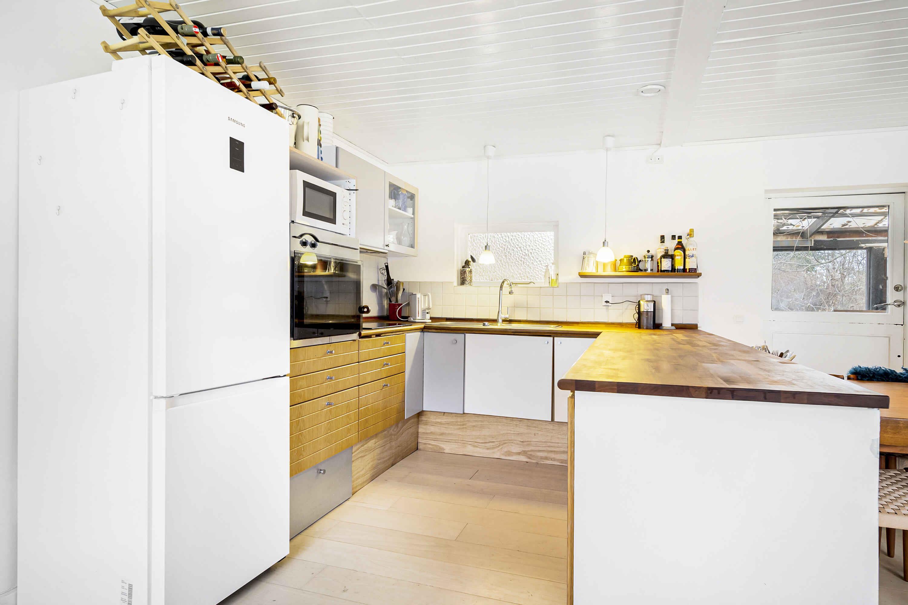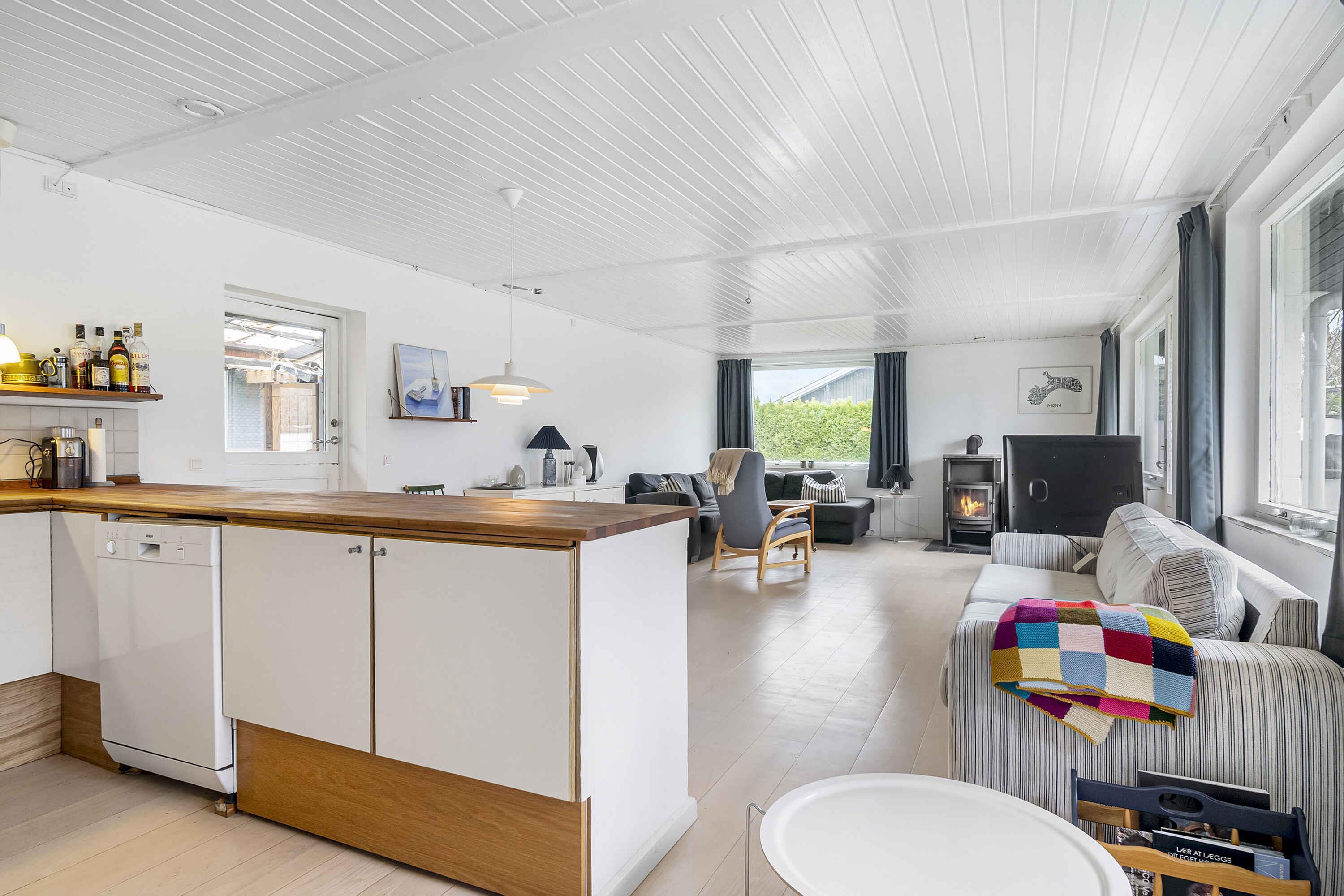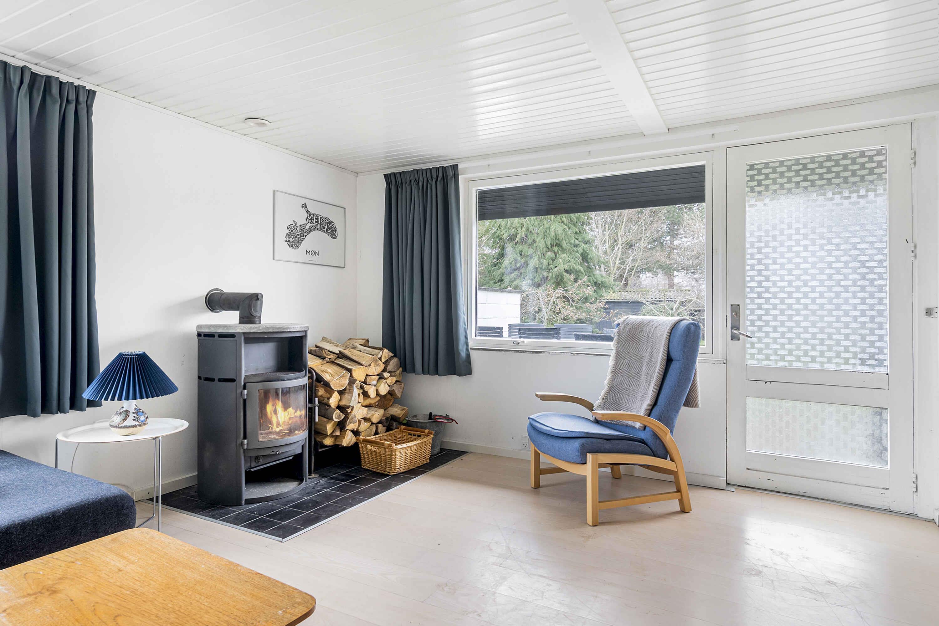 Rummeligt sommerhus beliggende for enden af blind vej med nærhed til badestrand, skov og Møns Klint. Huset rummer en stor kombineret spise og opholdsstue med velfungerende brændeovn og god plads til hele familien samlet.