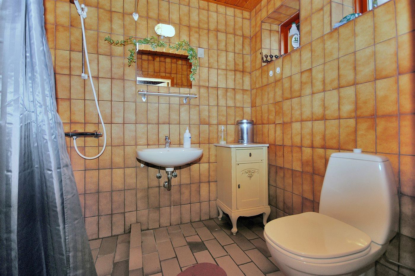 Der er 1 badeværelse med bruseniche og 1 toilet.. Der er gulvvarme på 1 badeværelse.