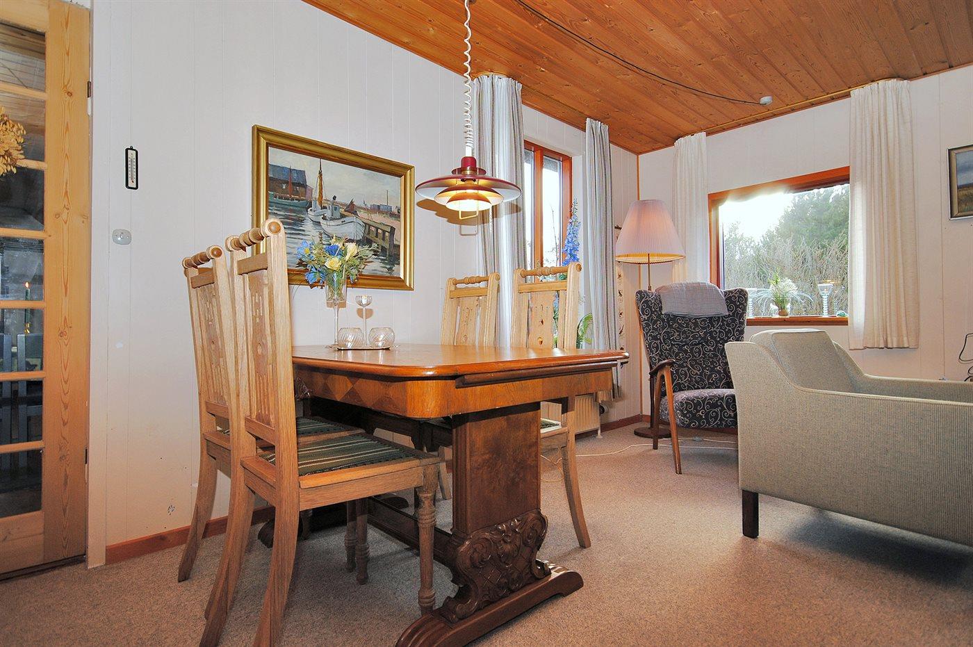 Sommerhuset egner sig til 6 personer. Ferieboligen er på 115 m² og er bygget i 1965. I 2004 gennemgik ferieboligen en delvis renovering. Det er tilladt at medbringe 1 husdyr. Ferieboligen har vaskemaskine. Frysekapacitet på 50 liter. Der er desuden brændeovn. Til de små er der 1 stk. barnestol.