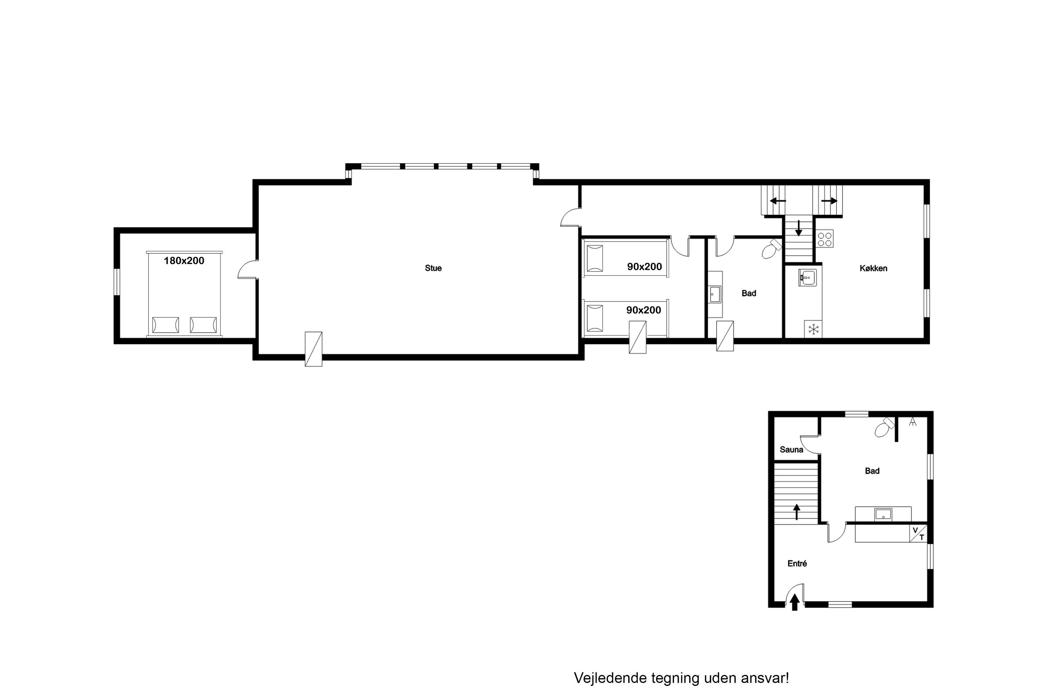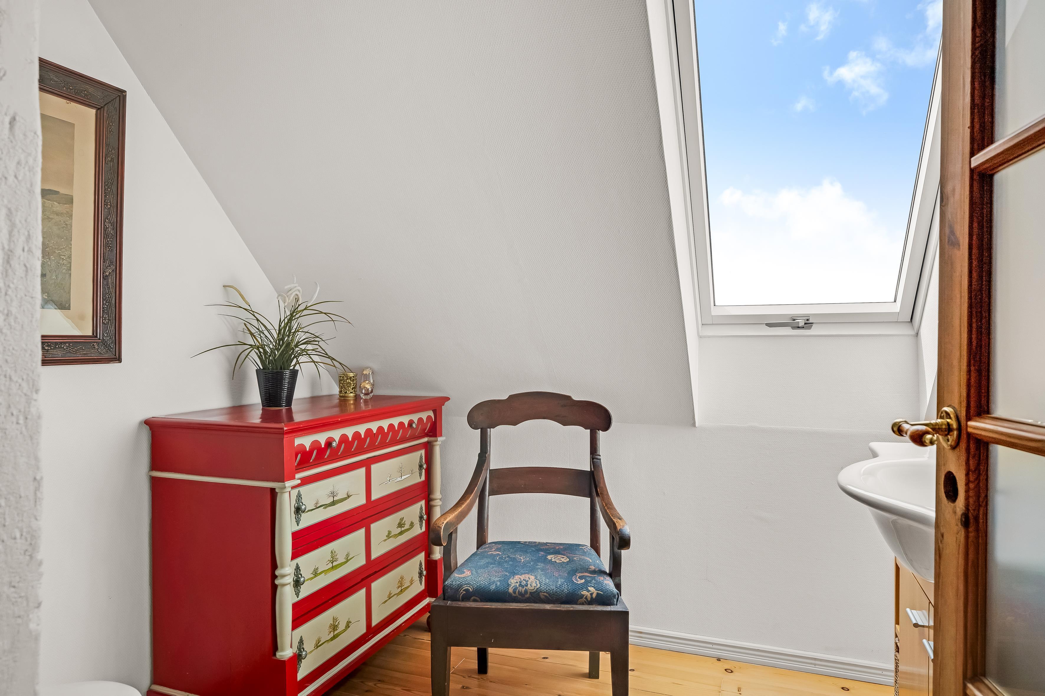 Badeværelset er udstyret med gulvvarme, hvilket giver en behagelig følelse, især på kolde dage. Her finder du også toilet og en bruser, der er perfekt til at friske sig op efter en lang dag. Derudover er der et gæstetoilet, hvilket gør det praktisk for flere gæster.