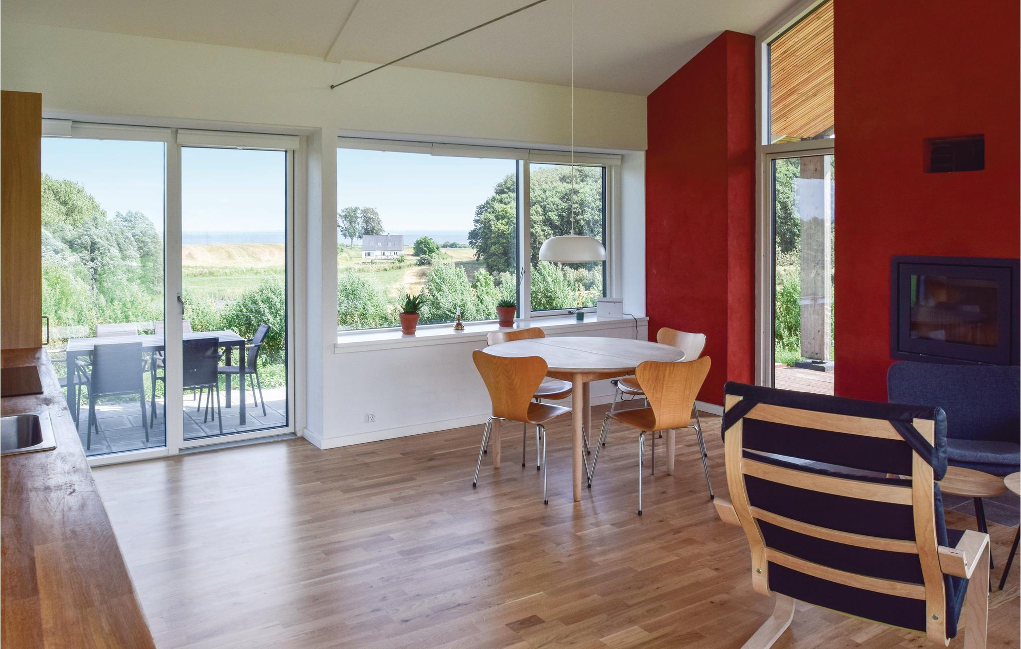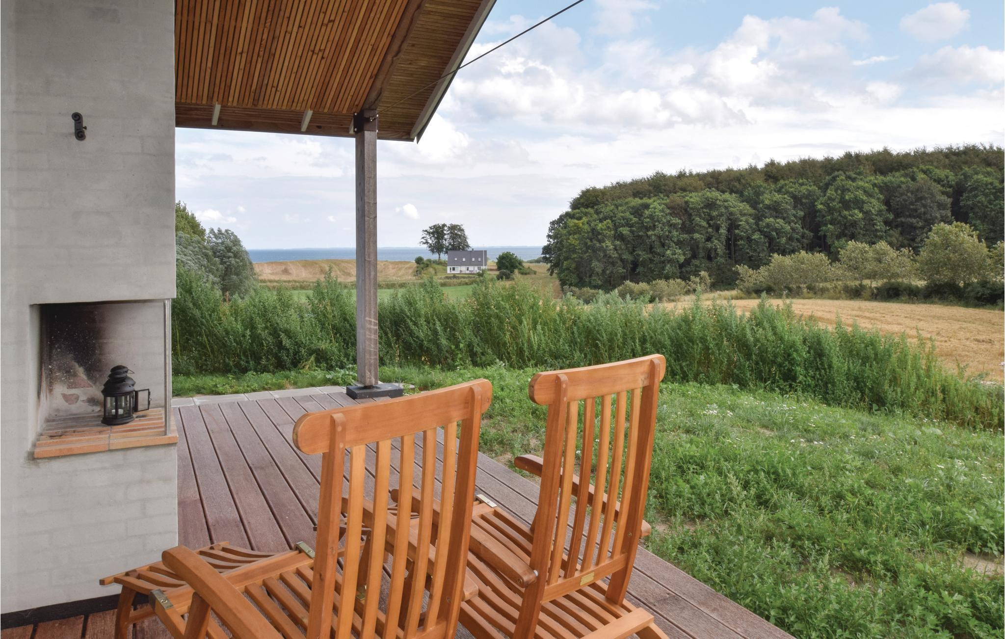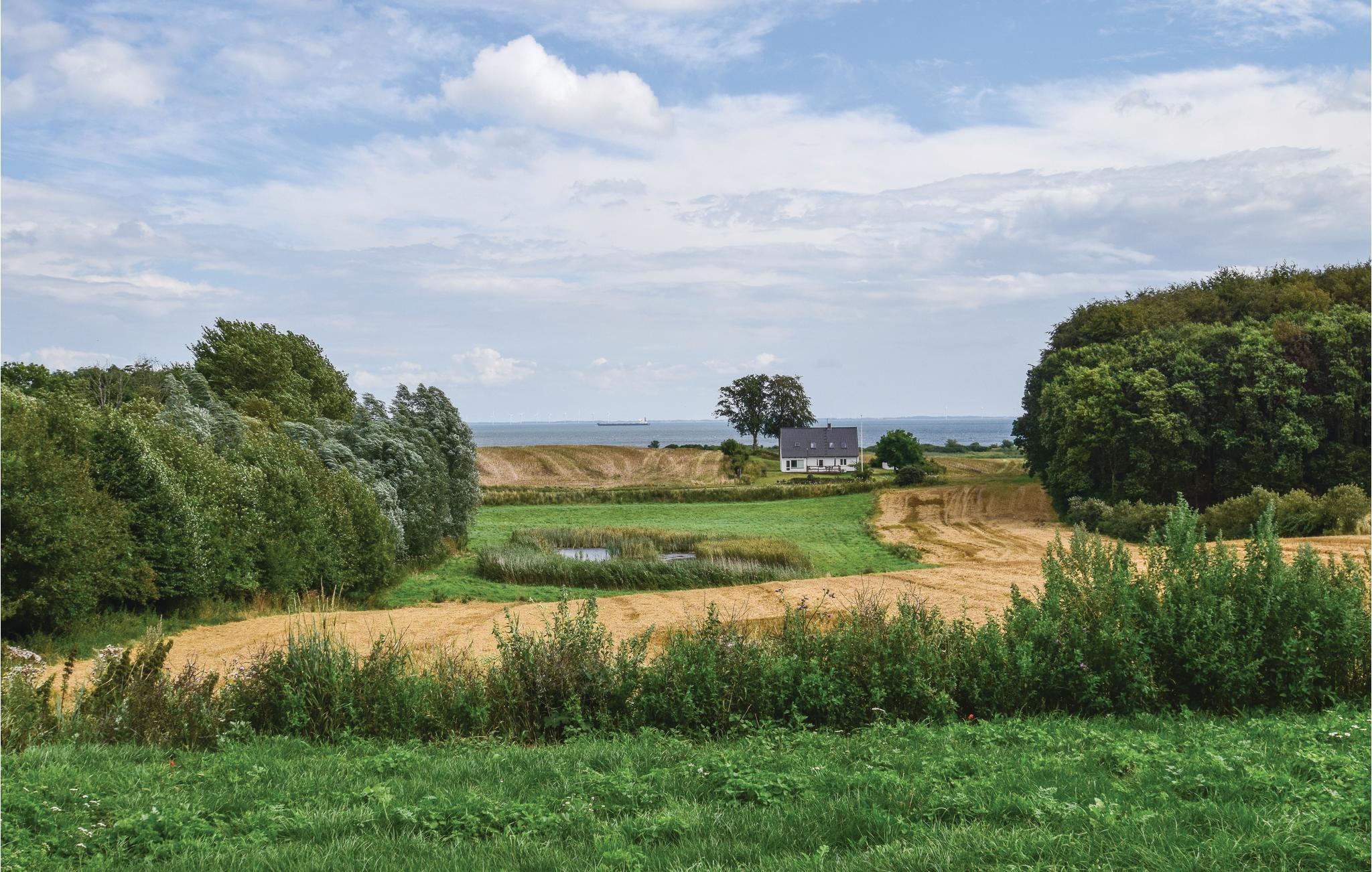 Dejligt feriehus ved Langelands østkyst, midt i naturskønne omgivelser og kun 5 minutters kørsel fra den hyggelige slotsby Tranekær. Huset har sedum på taget og er beklædt med thujatræ. Fra alle rum i huset, terrasserne og grunden er der en skøn udsigt til Langelandsbæltet. Naturen er tæt på - og således seerman tit dådyr, rådyr, harer og et rigt fugleliv. Ikke sjældent kan man i sæsonen se traner. "Husk kikkert". Der er rige muligheder for gode vandreture i den nærliggende skov til Oeghenschlägers bøg og til stranden hvorigennem Øhavsstien løber. Huset er indrettet med trægulve i opholds- og soverum samt klinker i de resterende rum. Anden ejendom ligger tæt ved dette feriehus, der er ca. 5 meter imellem husene. Der er opsat læhegn mellem husene, så de fungerer som to selvstændige huse med privatliv. I den anden ejendom bor fast lejer. Til ejendommen hører 350 meter privat strand, som I har let adgang til ad en sti fra huset. Der er rige muligheder for kystfiskeri og for at fange havørred, fladfik og torsk. I Spodsbjerg findes der flere lystfiskerforretninger og mulighed for at leje både. I Tranekær by findes blandt andet Tranekær Slot og slotsparken som måske nok især er kendt for sine forskellige landart-skulpturer, der er lavet af både danske og udenlandske kunstnere. Ca. 3 minutters kørsel fra ejendommen ligger desuden seværdigheden Tobaksladen samt vandområdet Botofte Skovmose, der efter sin genskabelse kan byde på et rigt dyre- og planteliv.